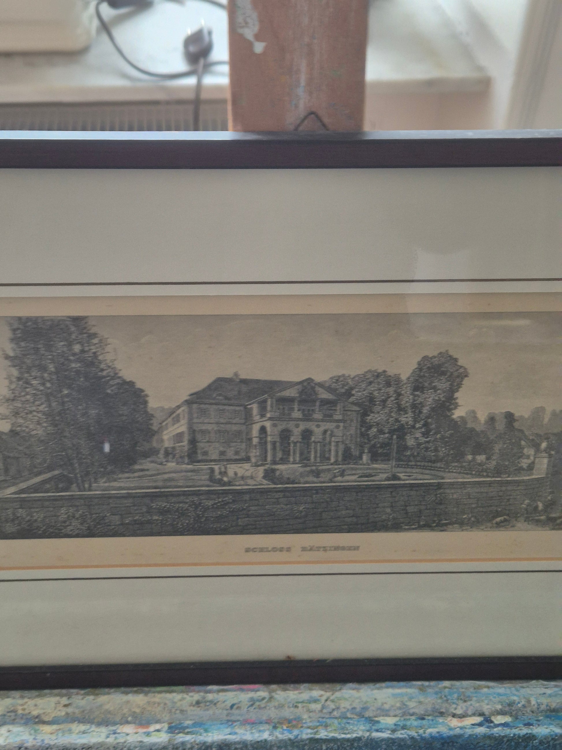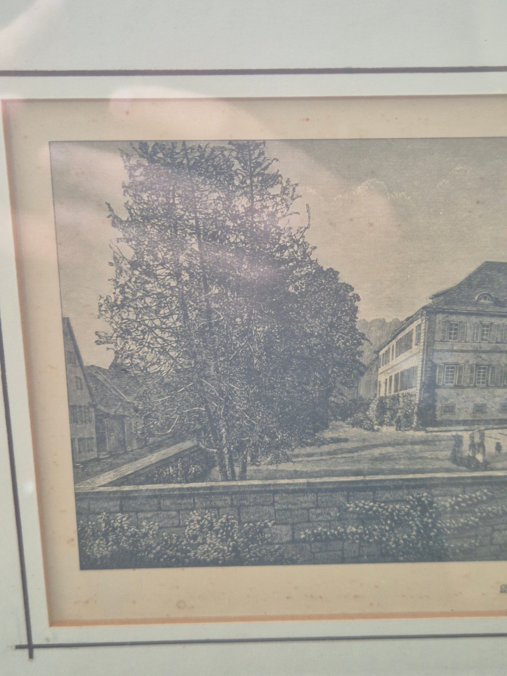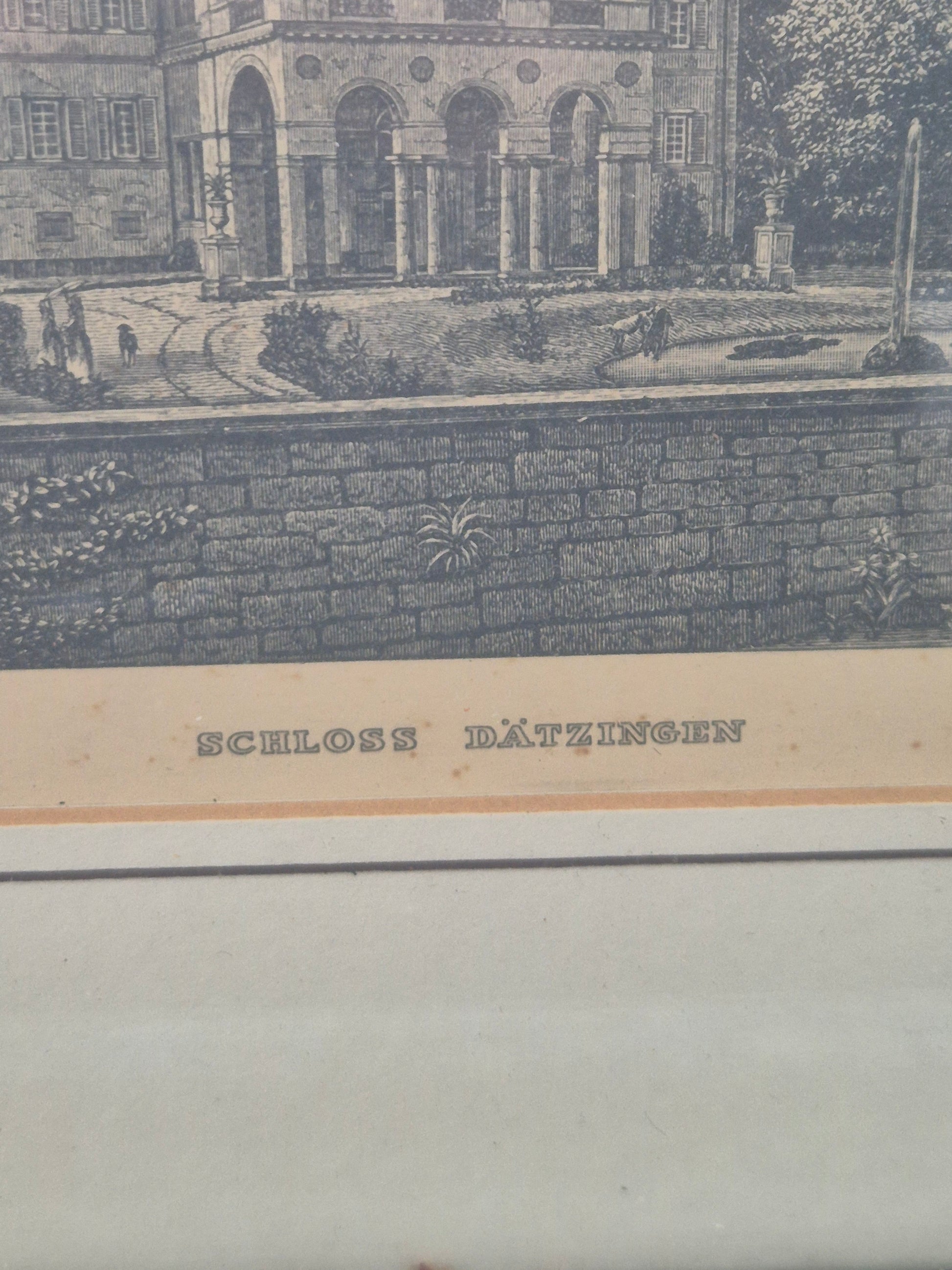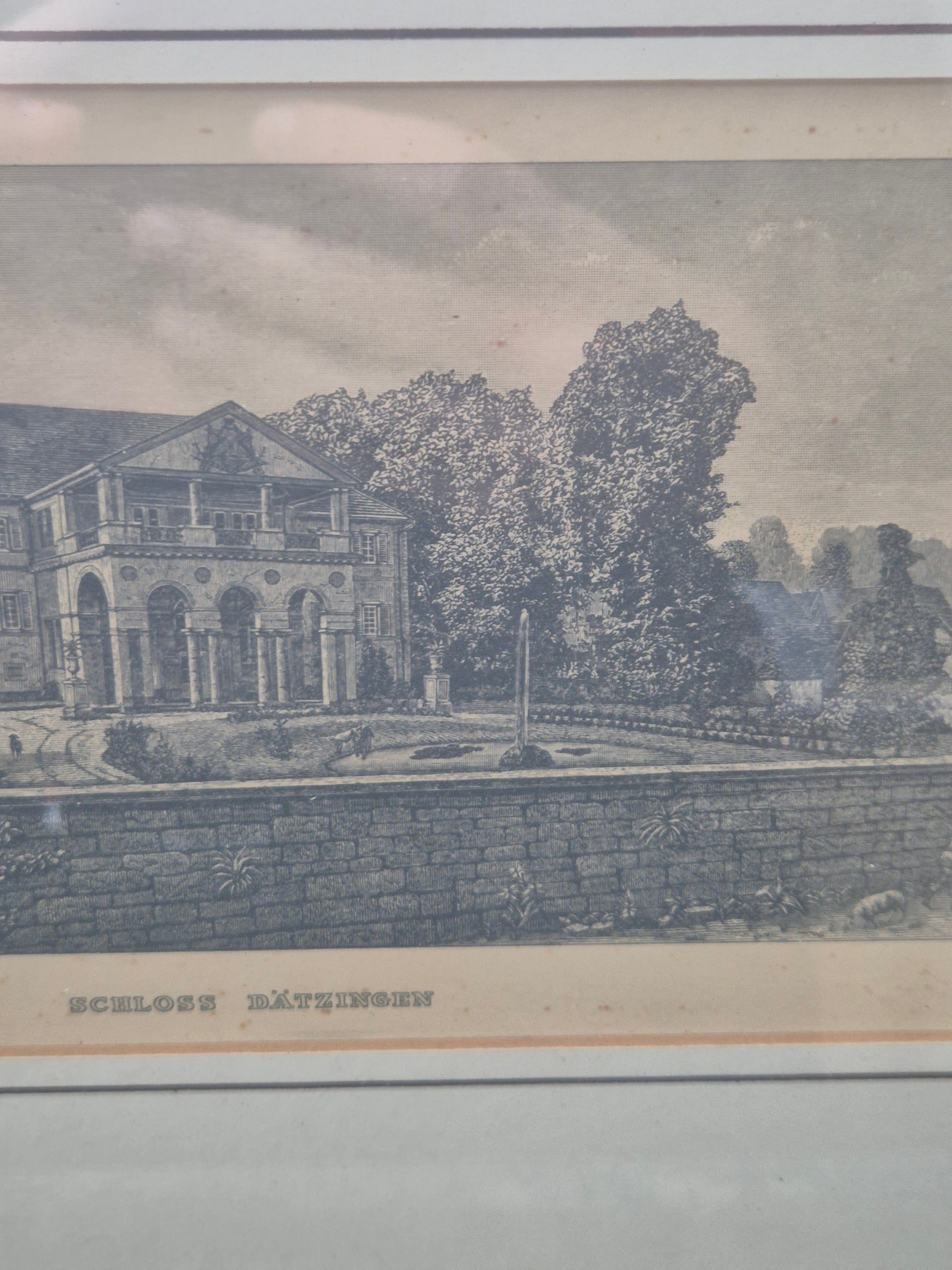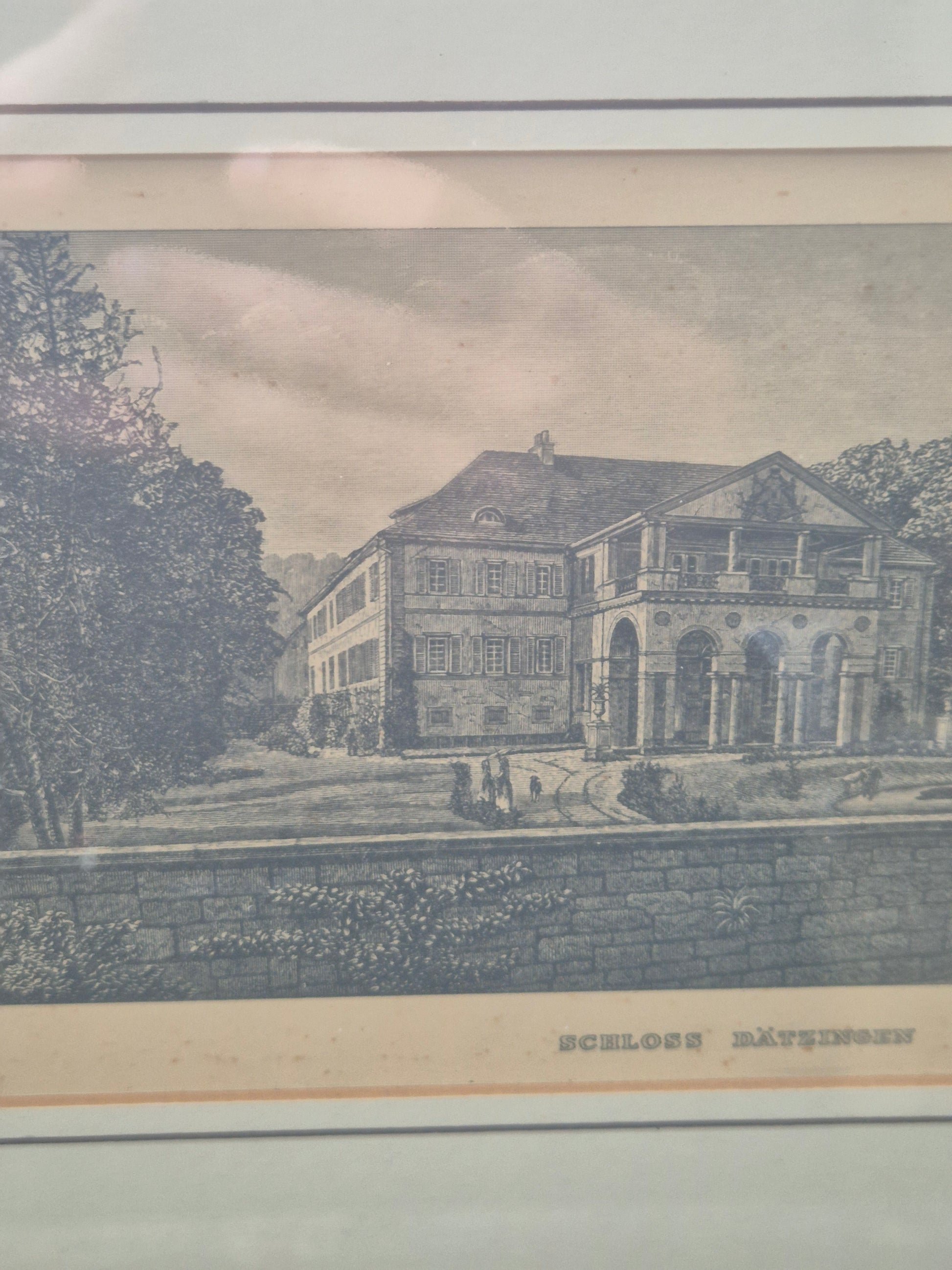 Schloss Dätzingen Druckgrafik Lithographie Landschaftsidylle Gerahmt