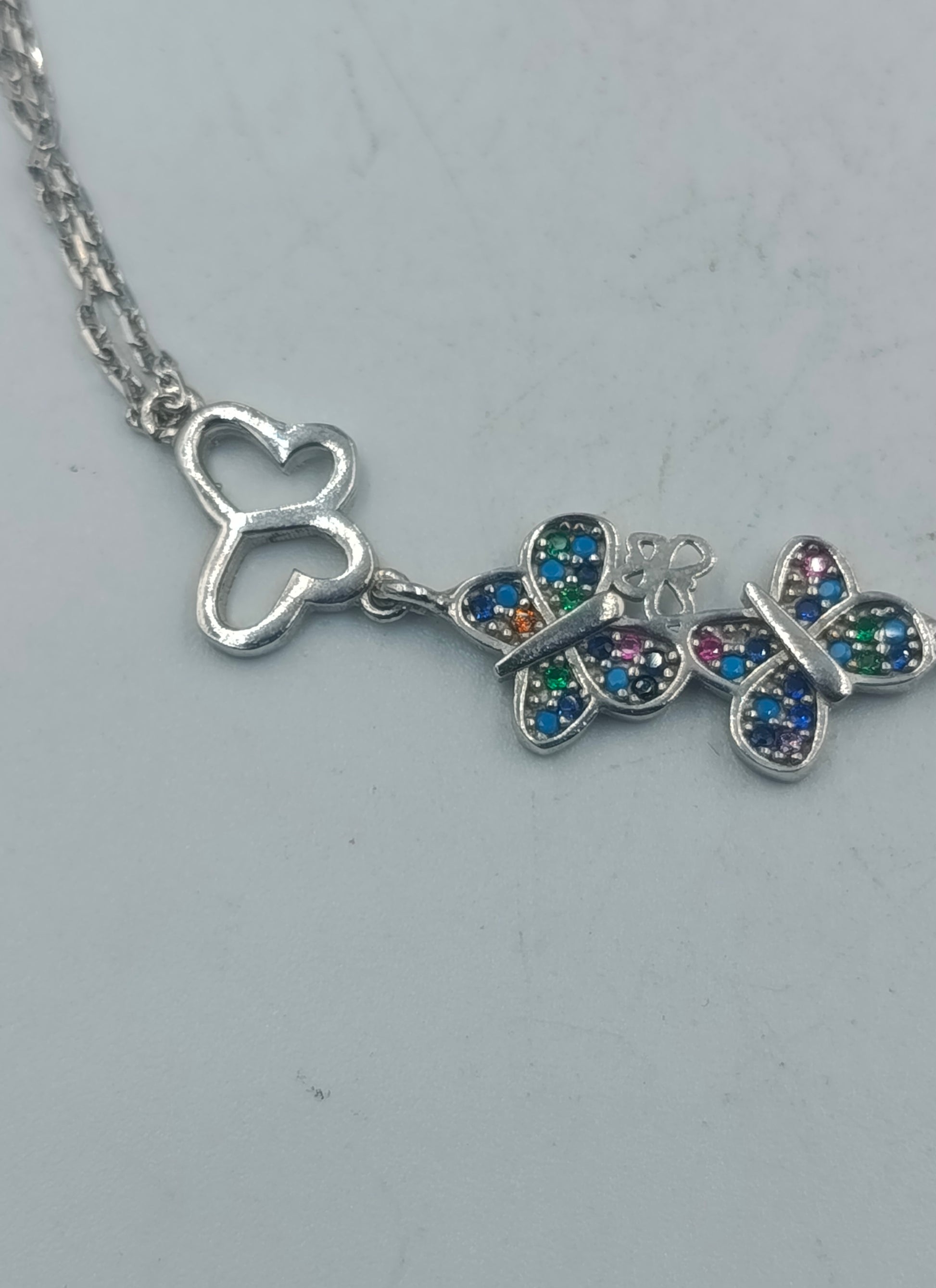 Elegantes und verspieltes Armband aus echtem 925 Silber mit farbenfrohen Schmetterlings Elementen. Die funkelnden Steine in verschiedenen Farben verleihen dem Schmuckstück einen lebendigen und modernen Look. Perfekt für den Alltag oder als zarter Hingucker zu besonderen Anlässen.