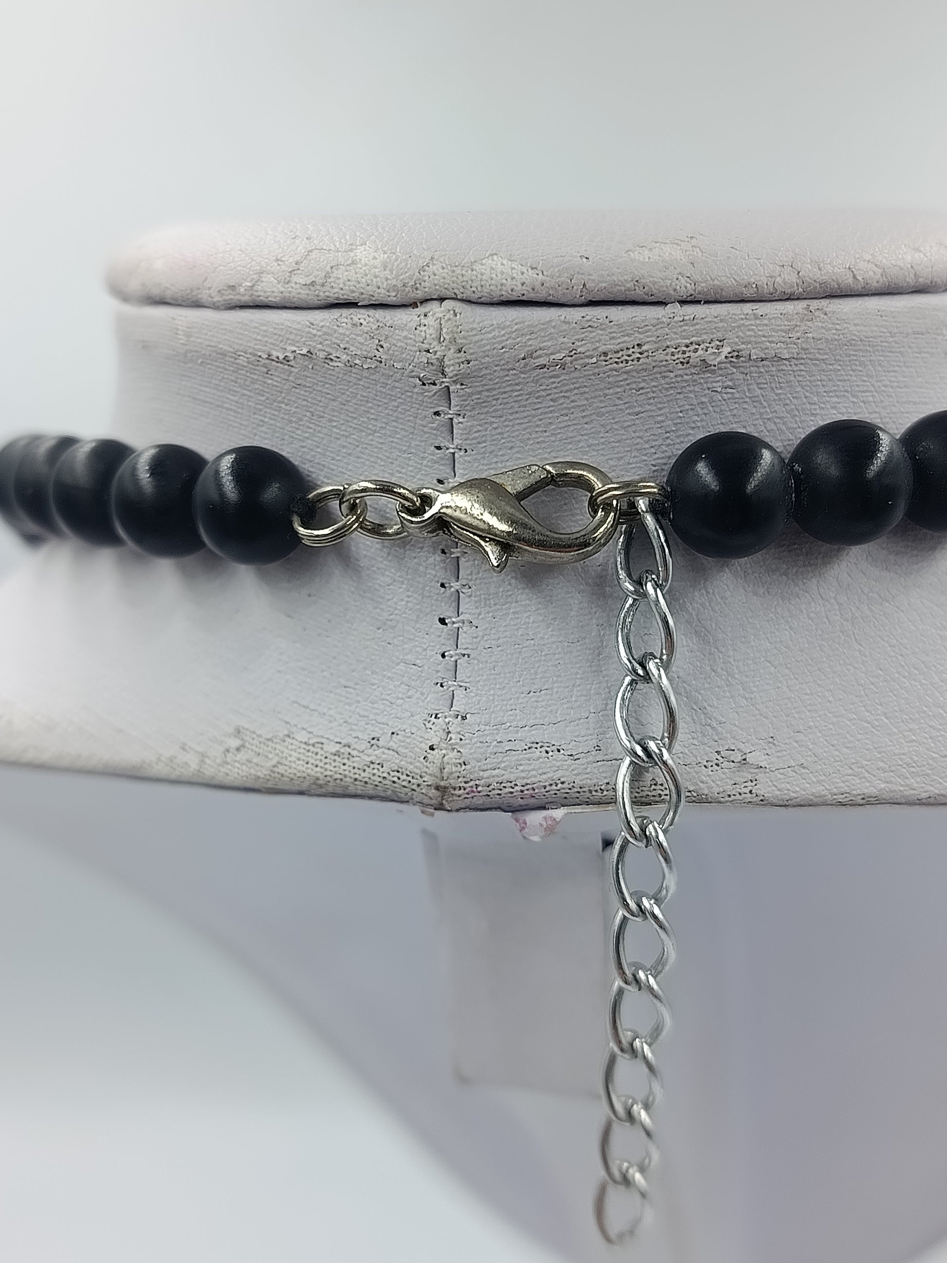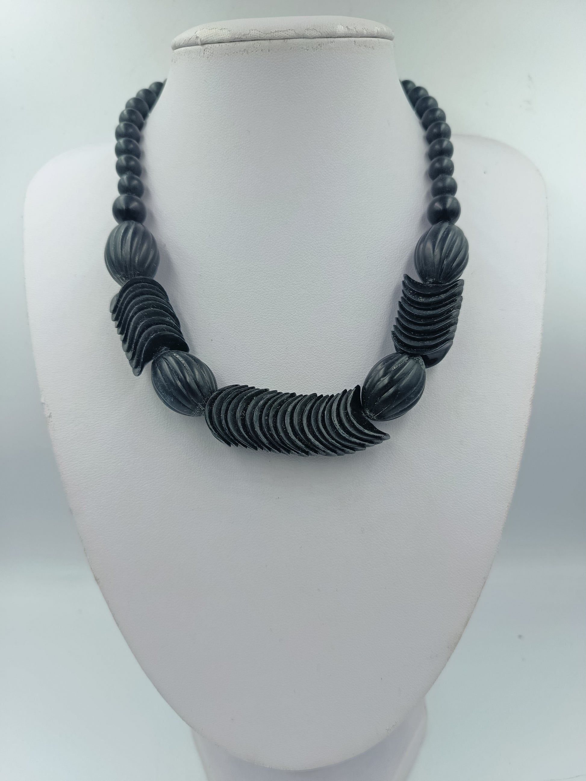 Schwarze Designer Halskette mit runden und gedrehten Perlen im modernen Statement Look