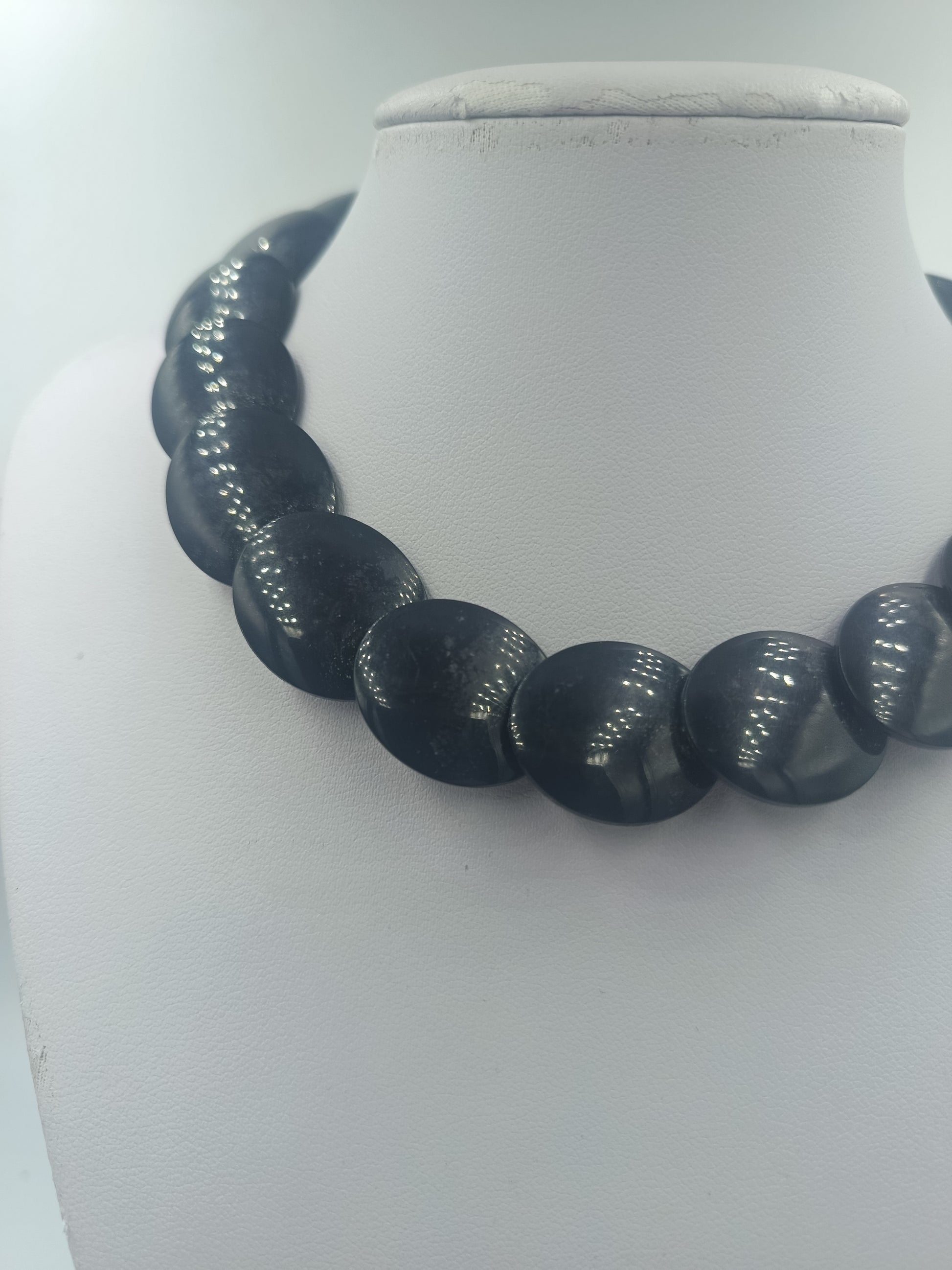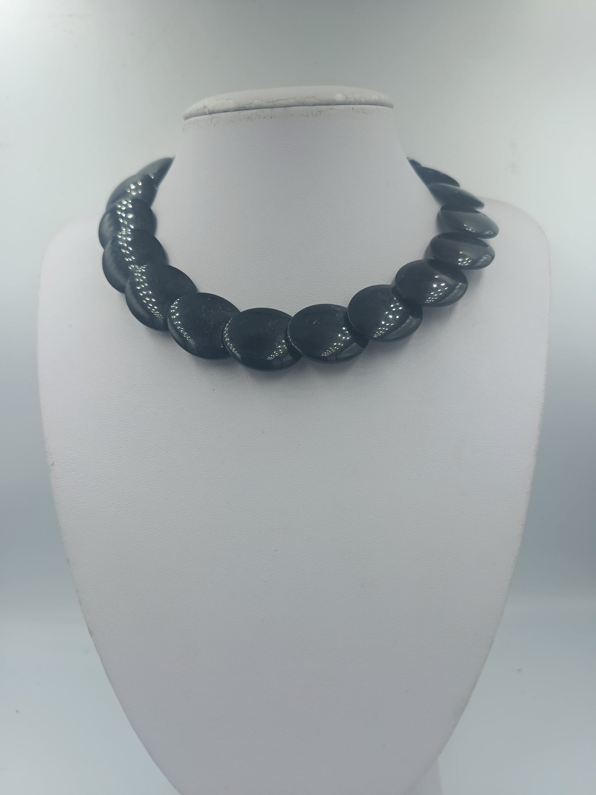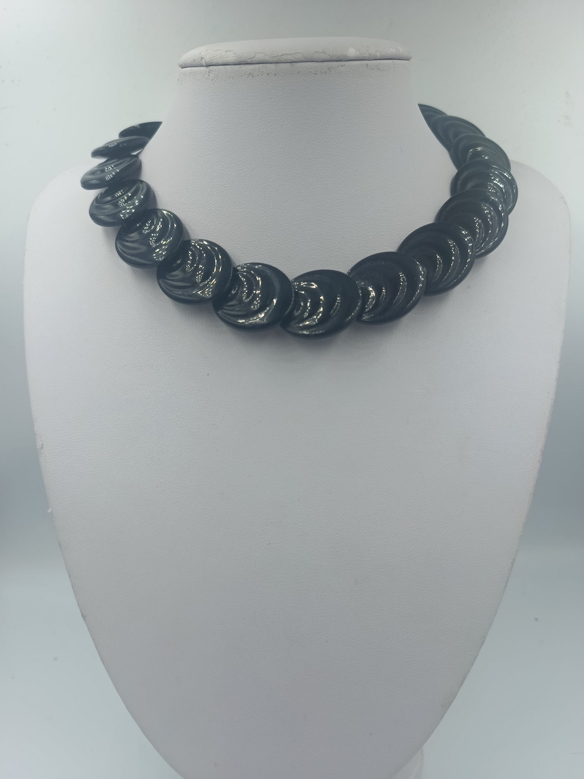 Schwarze Statementkette mit großen runden Perlen im Retro Stil