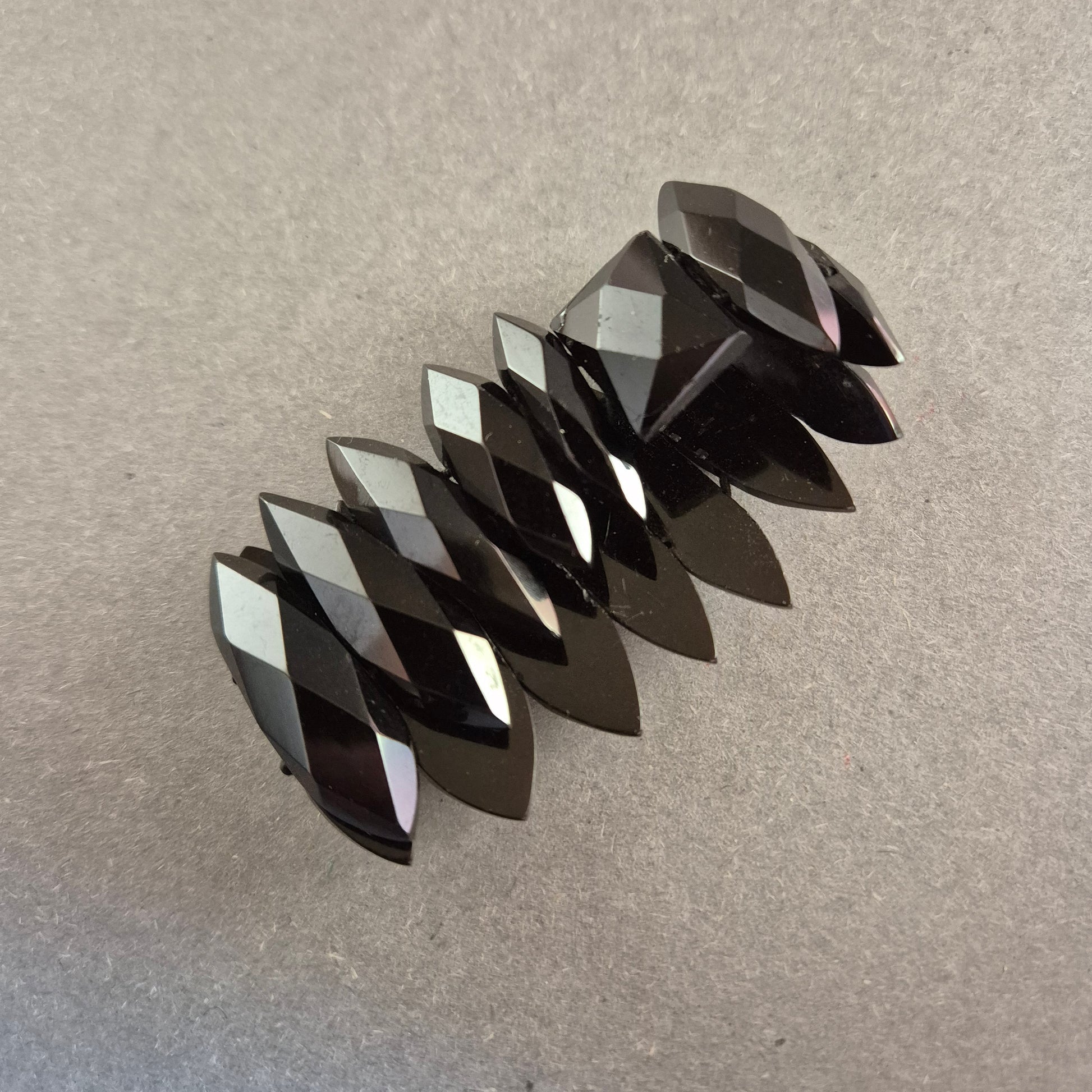 Dieses markante schwarze Armband besticht durch seine facettierten, rautenförmigen Elemente, die für einen auffälligen und modernen Look sorgen. Das elastische Design ermöglicht eine flexible Passform und hohen Tragekomfort. Ein stilvolles Accessoire für modebewusste Trägerinnen, das sowohl im Alltag als auch zu besonderen Anlässen ein elegantes Statement setzt.
