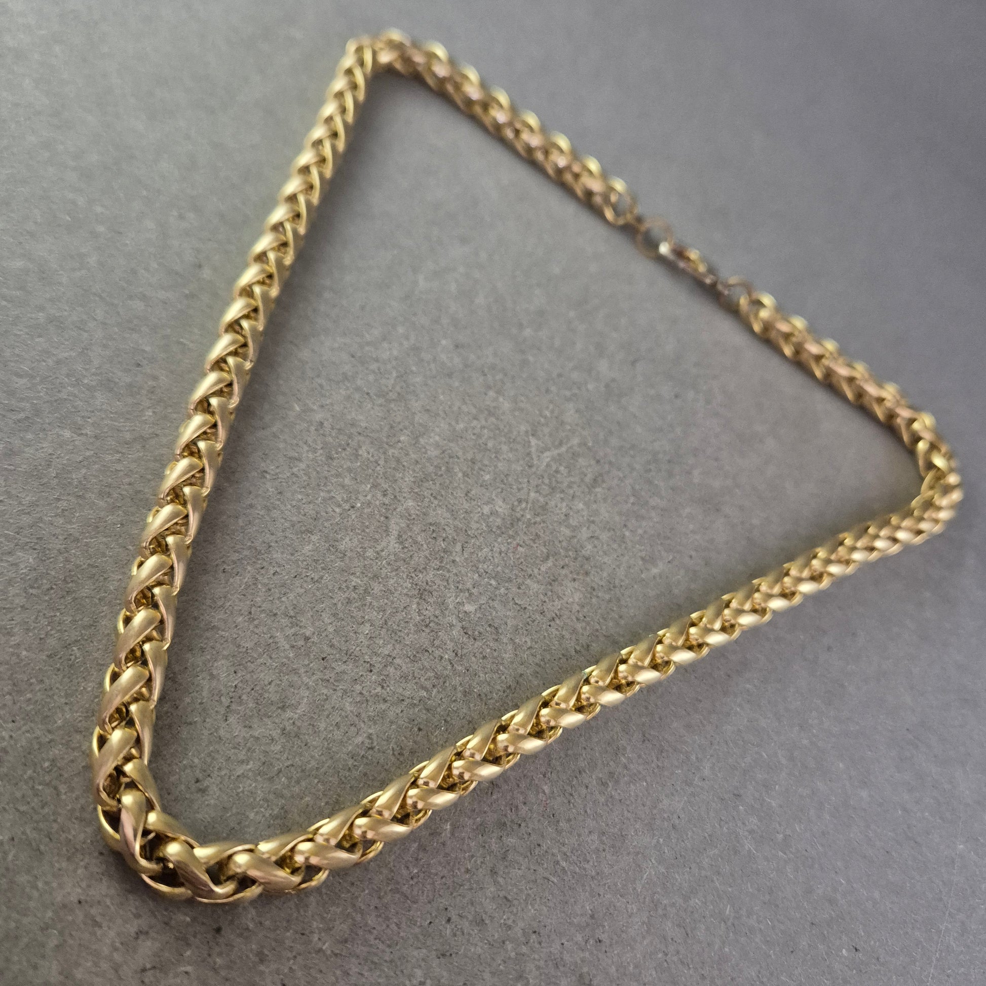 Diese massive Halskette überzeugt mit ihrem klassischen, dichten Gliederdesign in glänzender Goldoptik. Die eng ineinandergreifenden Glieder sorgen für ein hochwertiges Tragegefühl und einen kraftvollen Look. Der runde Federringverschluss sorgt für sicheren Halt. Ideal als stilvolles Statement oder eleganter Akzent im Alltag.