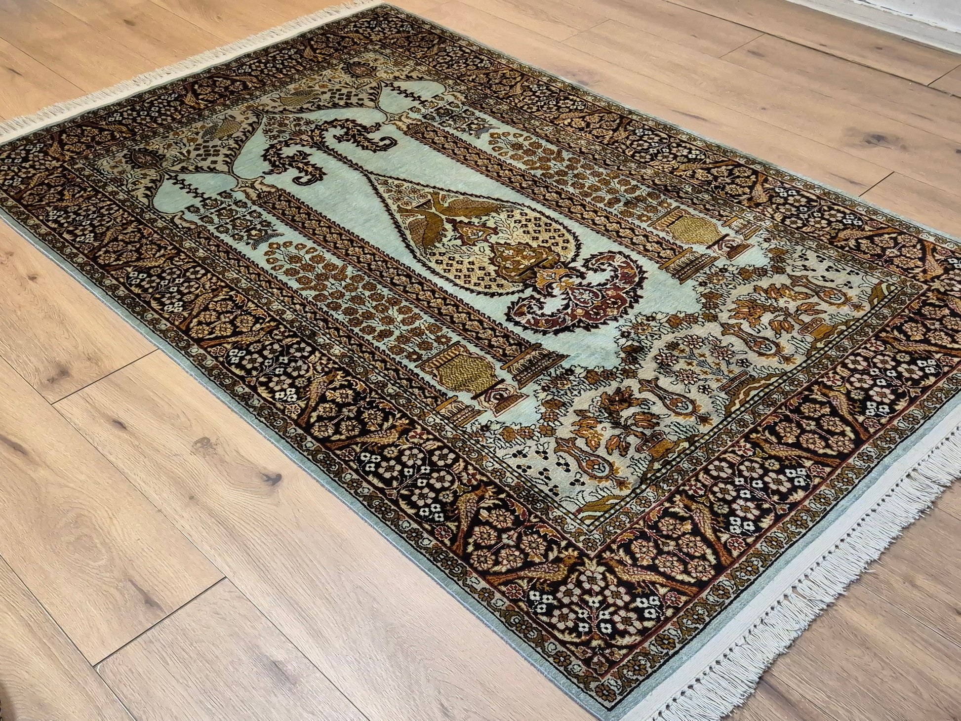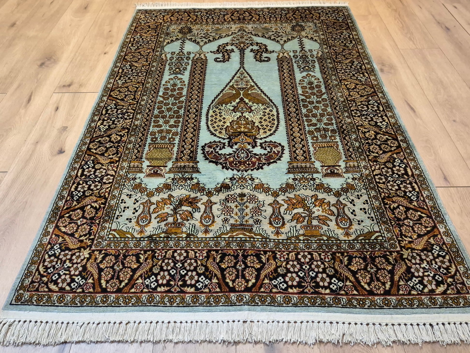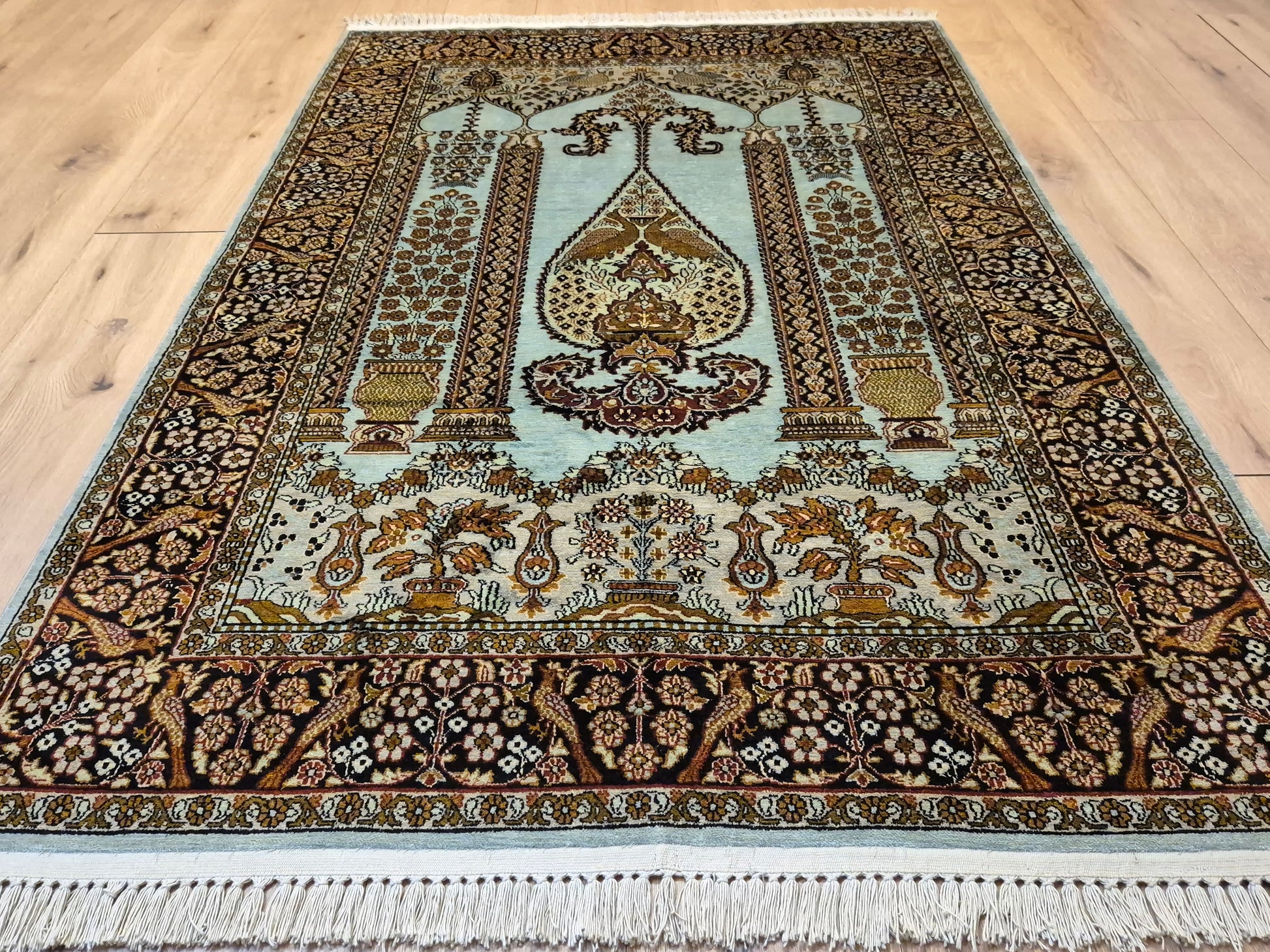Seidenteppich Kashmir Lebensbaum feine Knüpfung edles Design