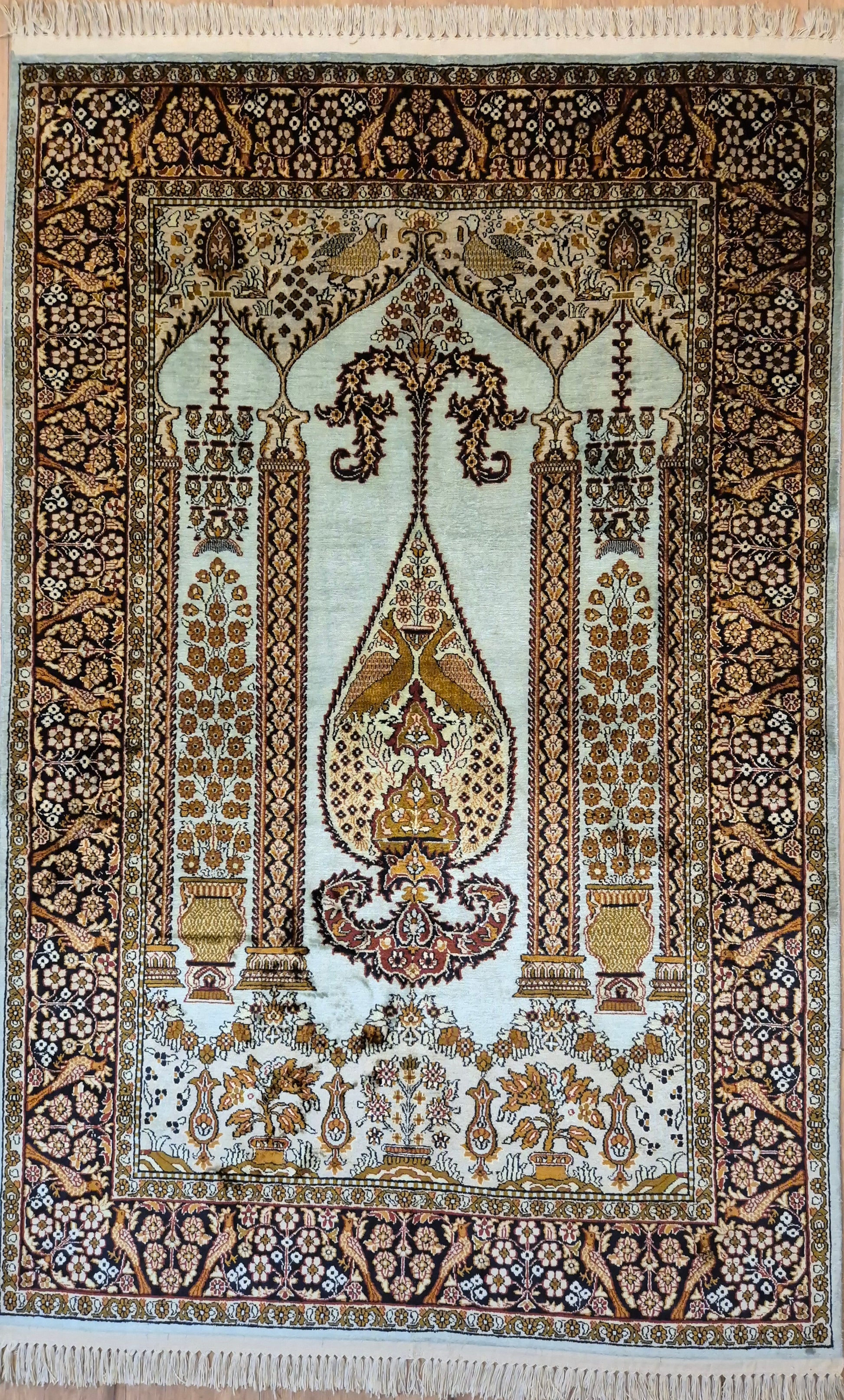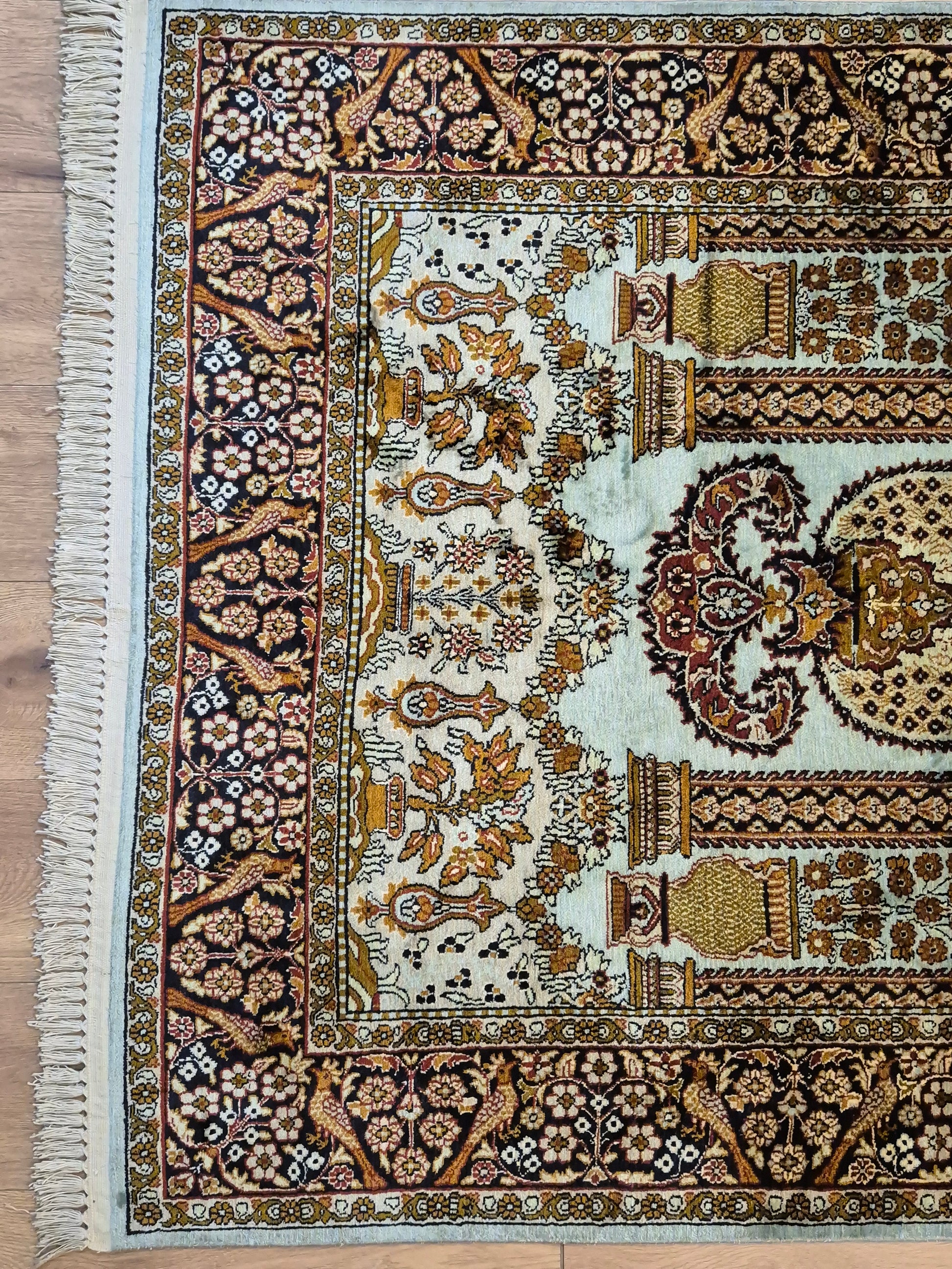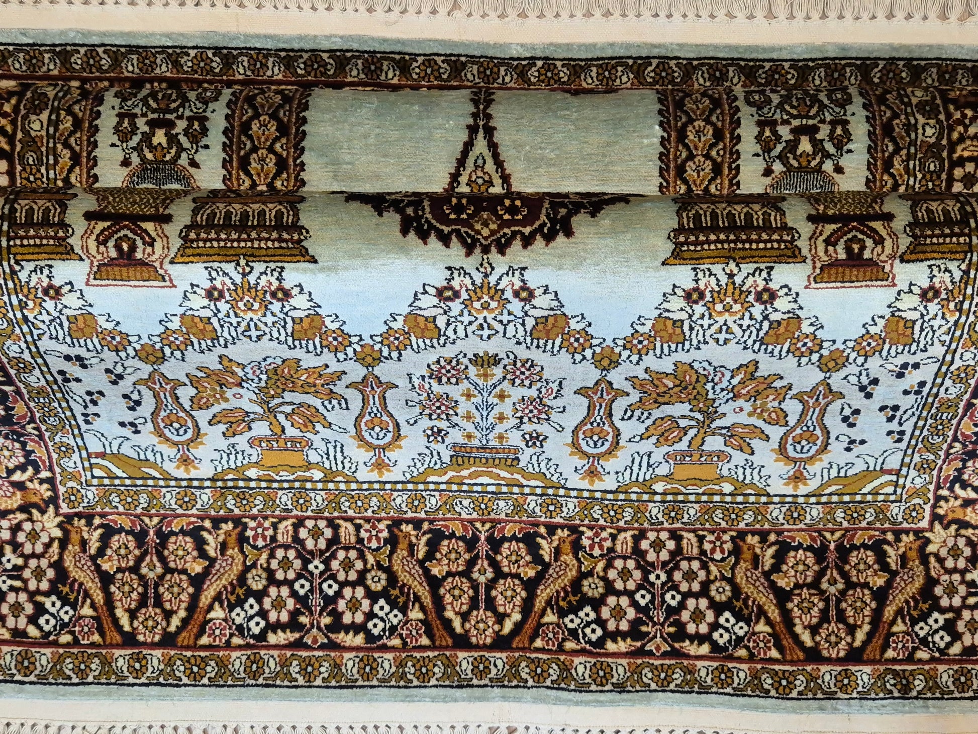 Seidenteppich Kashmir Lebensbaum feine Knüpfung edles Design