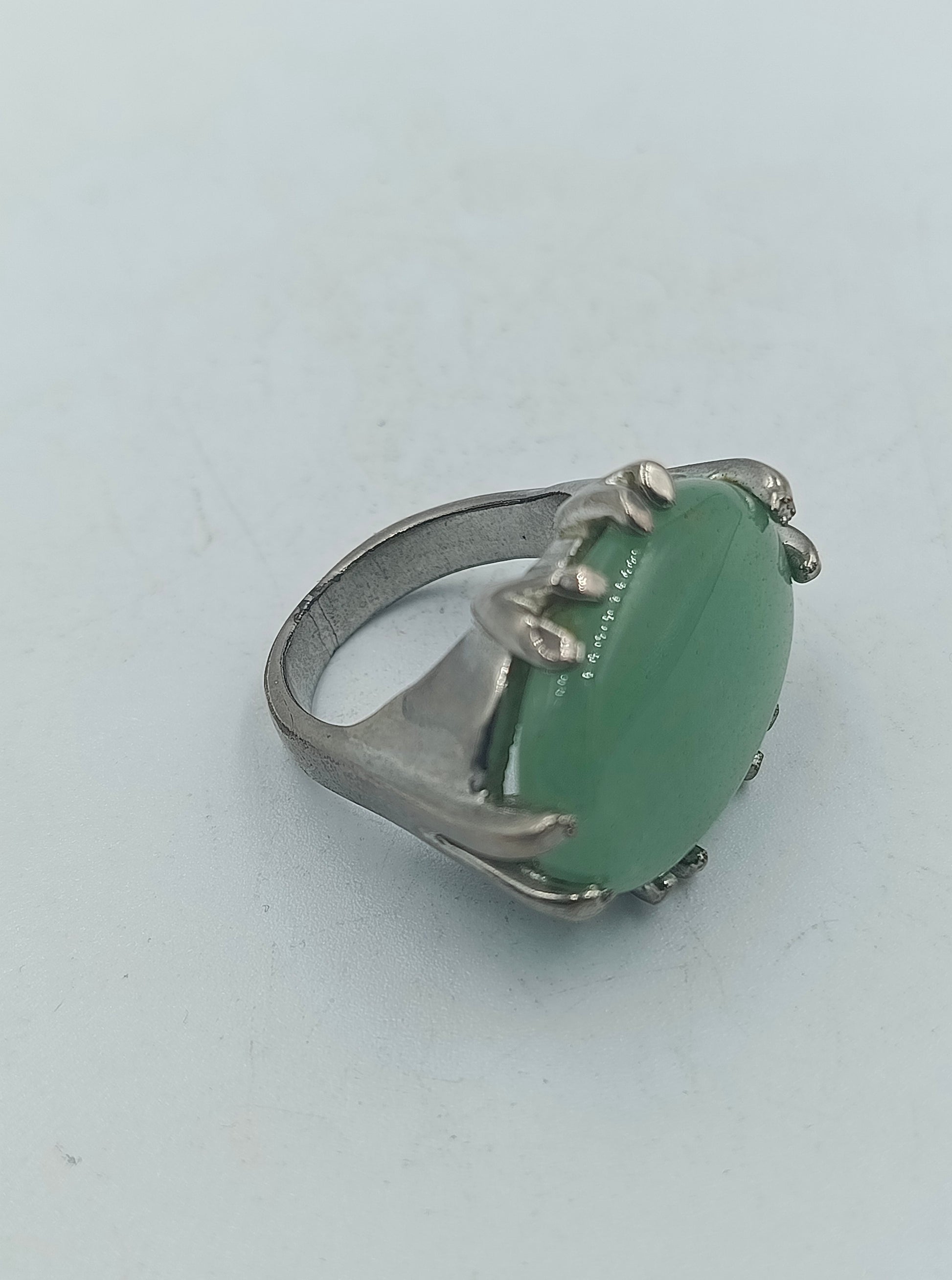 Der auffällige Schmuckstein wird von dekorativen Krallenfassungen gehalten und verleiht dem Ring einen markanten, hochwertigen Look.