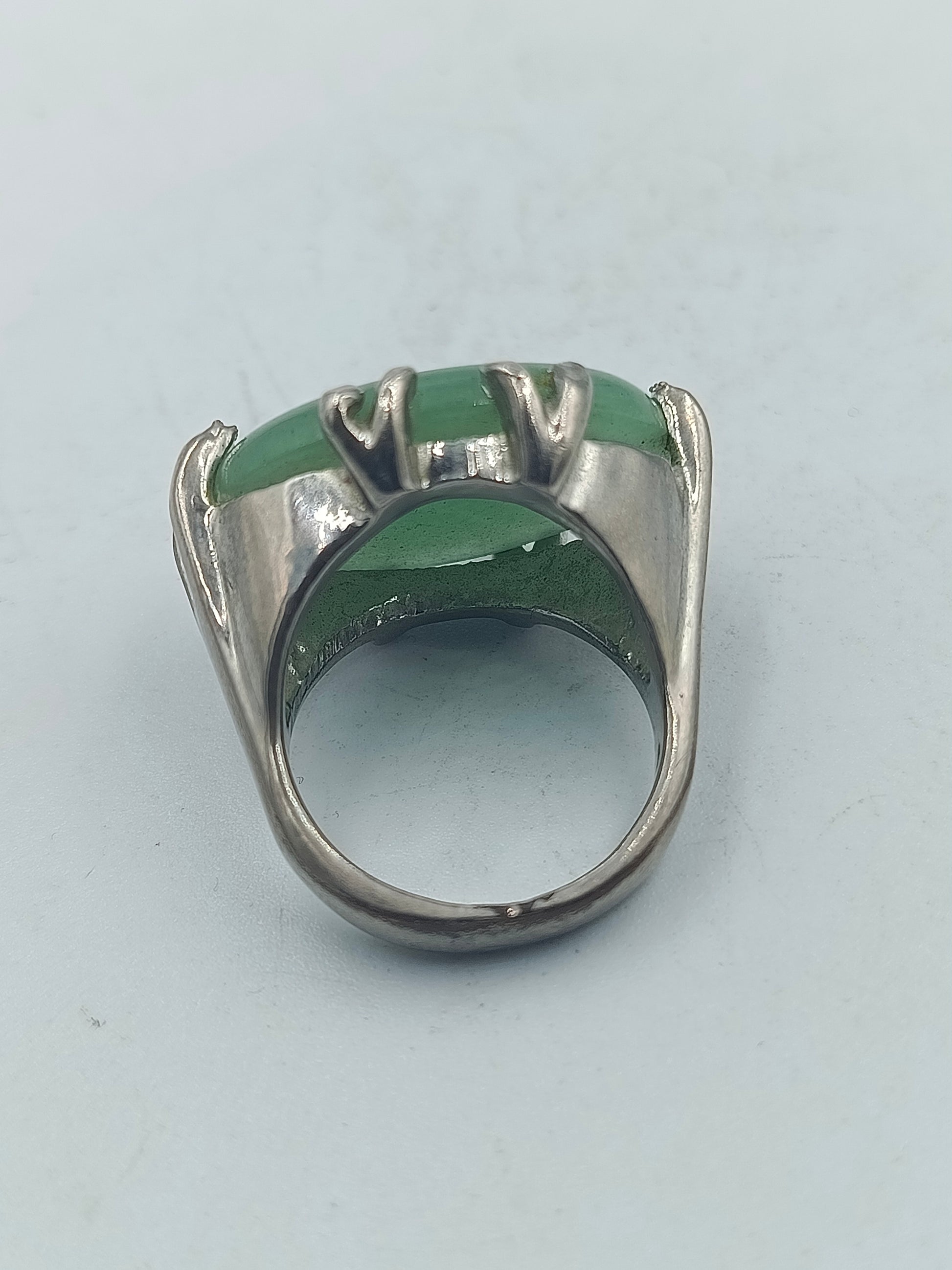 Eleganter Silberring mit großem ovalen grünem Stein.