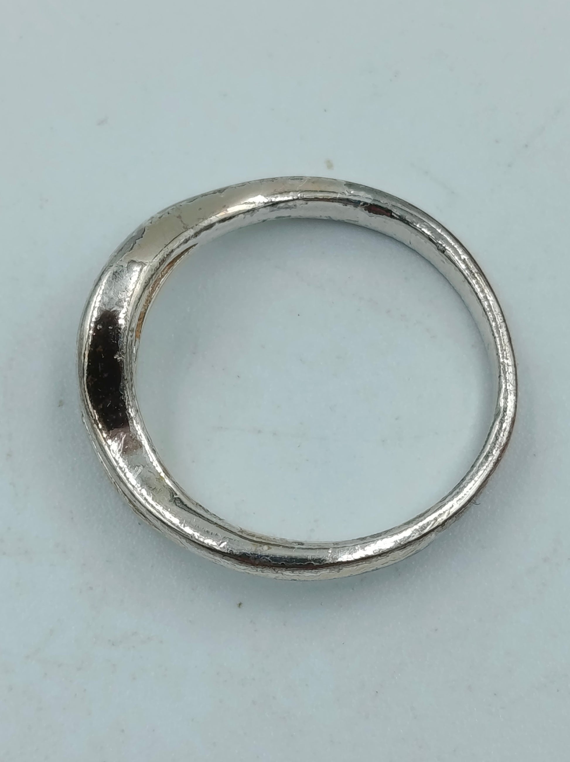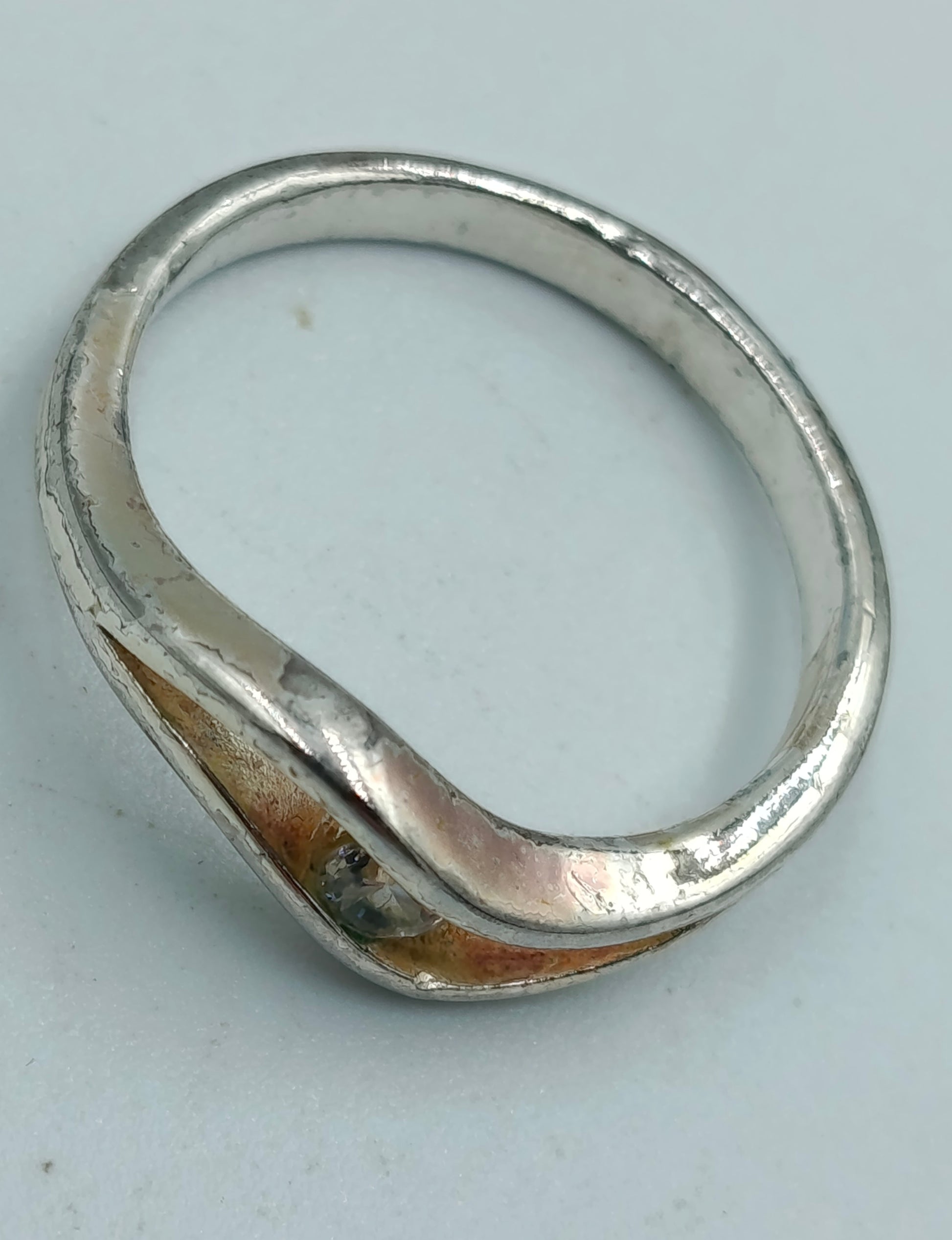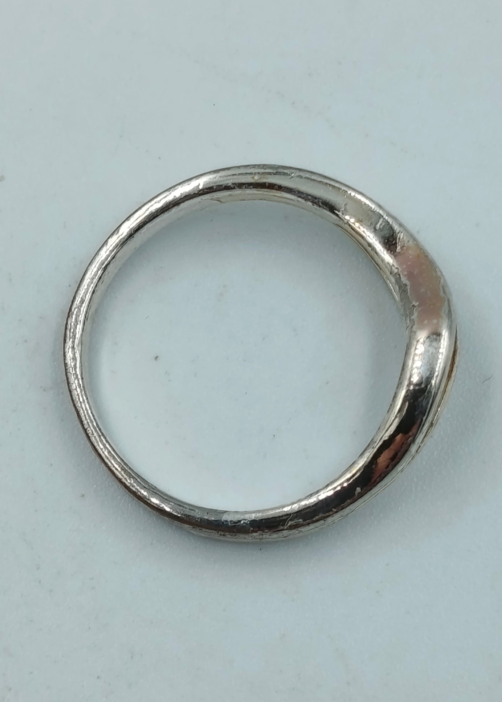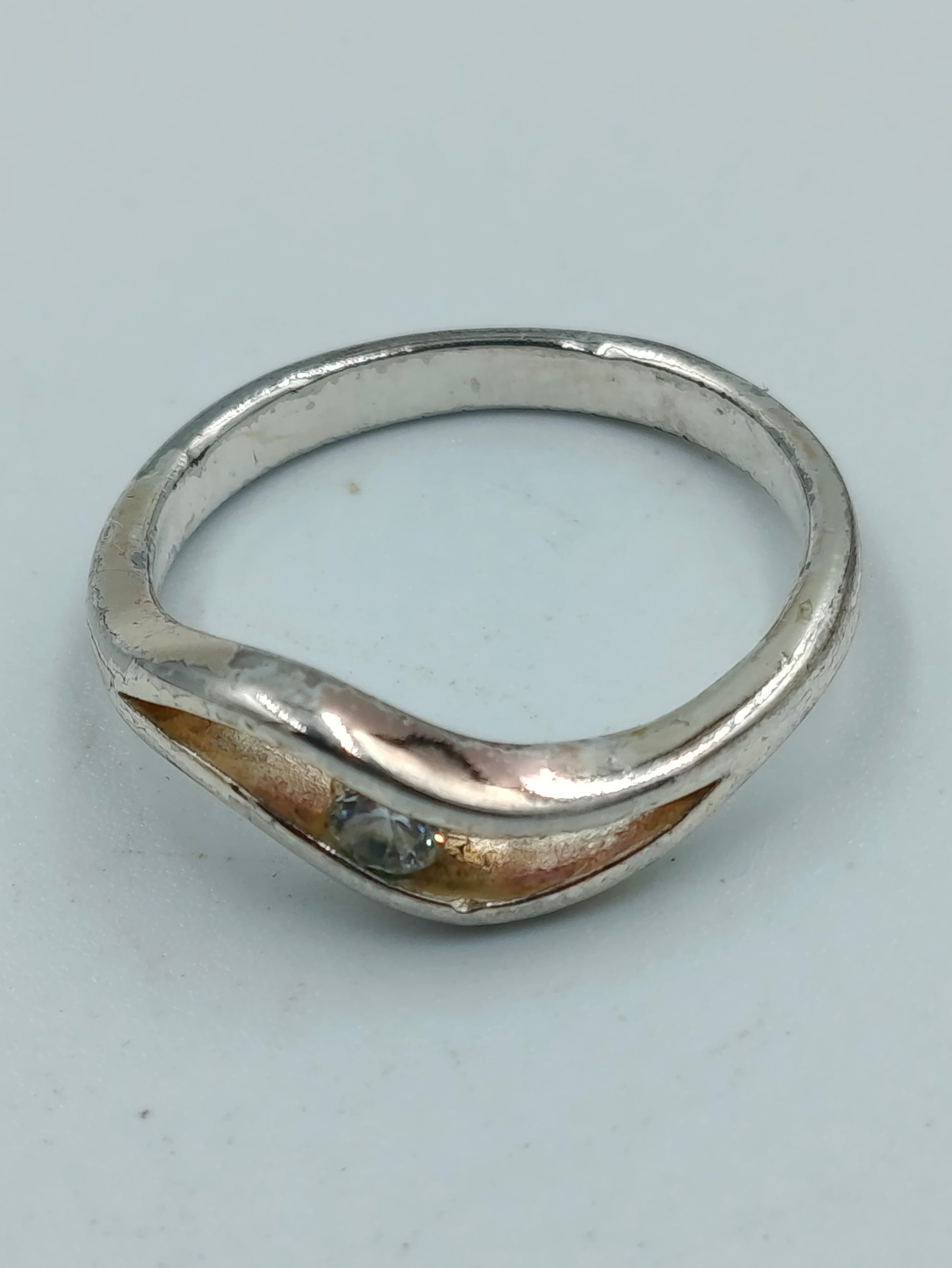 Schlichter, eleganter Ring aus Silber mit sanft geschwungener Form. In der Mitte sitzt ein kleiner klarer Stein, der dezent funkelt und dem Design eine feine Note verleiht. Ideal für den Alltag oder als schlichter Begleiter zu anderen Schmuckstücken.