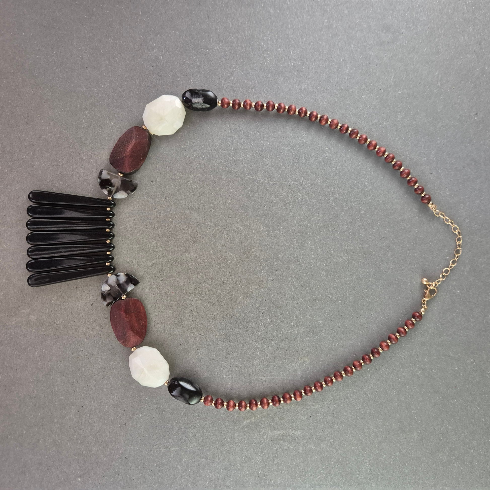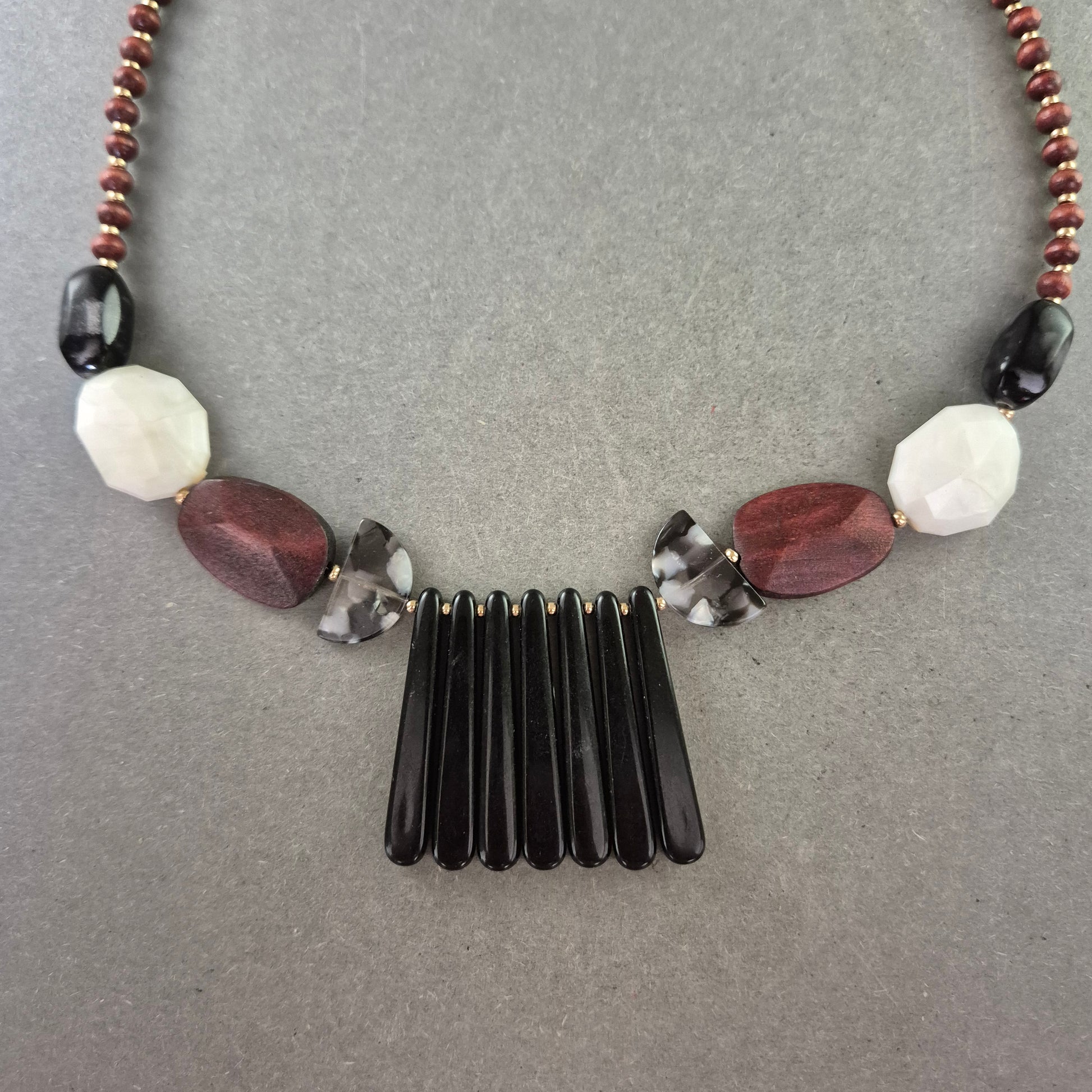 Statement-Halskette mit Holz-, Acryl- und Perlenelementen – Boho-Style