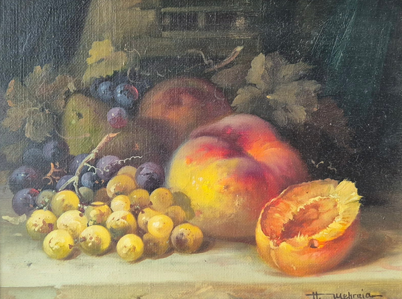 Hamid Mehrnia (geb.1942) Ölgemälde Stillleben Pfirsichen und Weintrauben