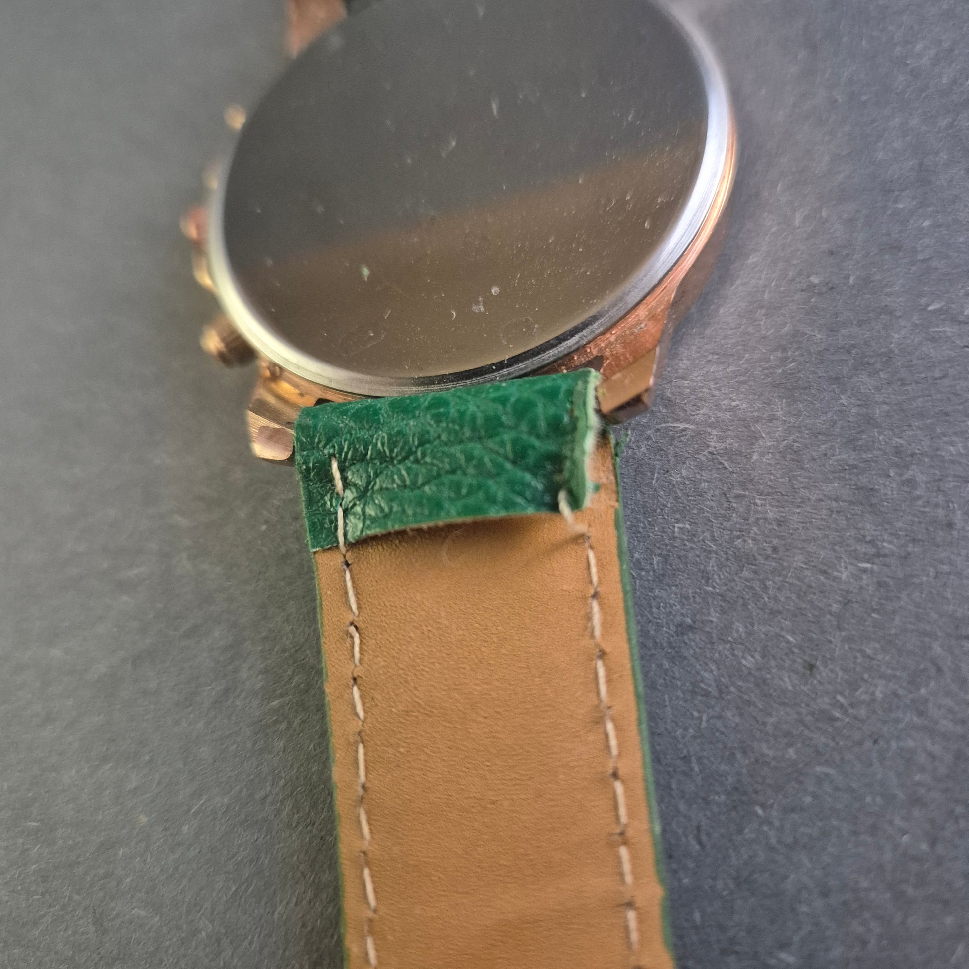 Diese Geneva Damenarmbanduhr kombiniert ein modernes Design mit klassischer Eleganz. Das grüne Zifferblatt und die roségoldene Umrandung verleihen der Uhr einen einzigartigen und luxuriösen Look. Perfekt ergänzt durch das grüne Kunstlederarmband, ist diese Uhr ein stilvolles Accessoire für jeden Anlass.