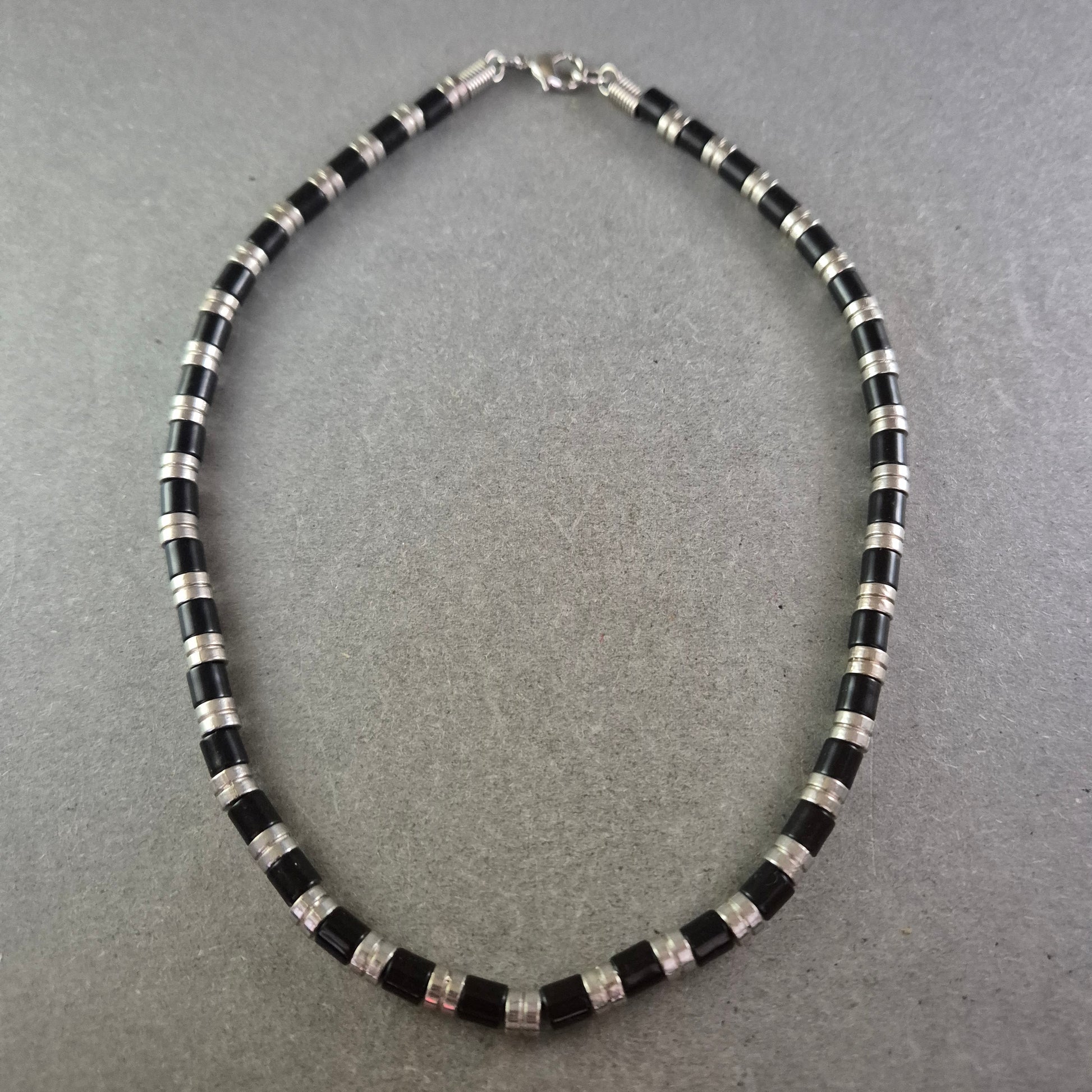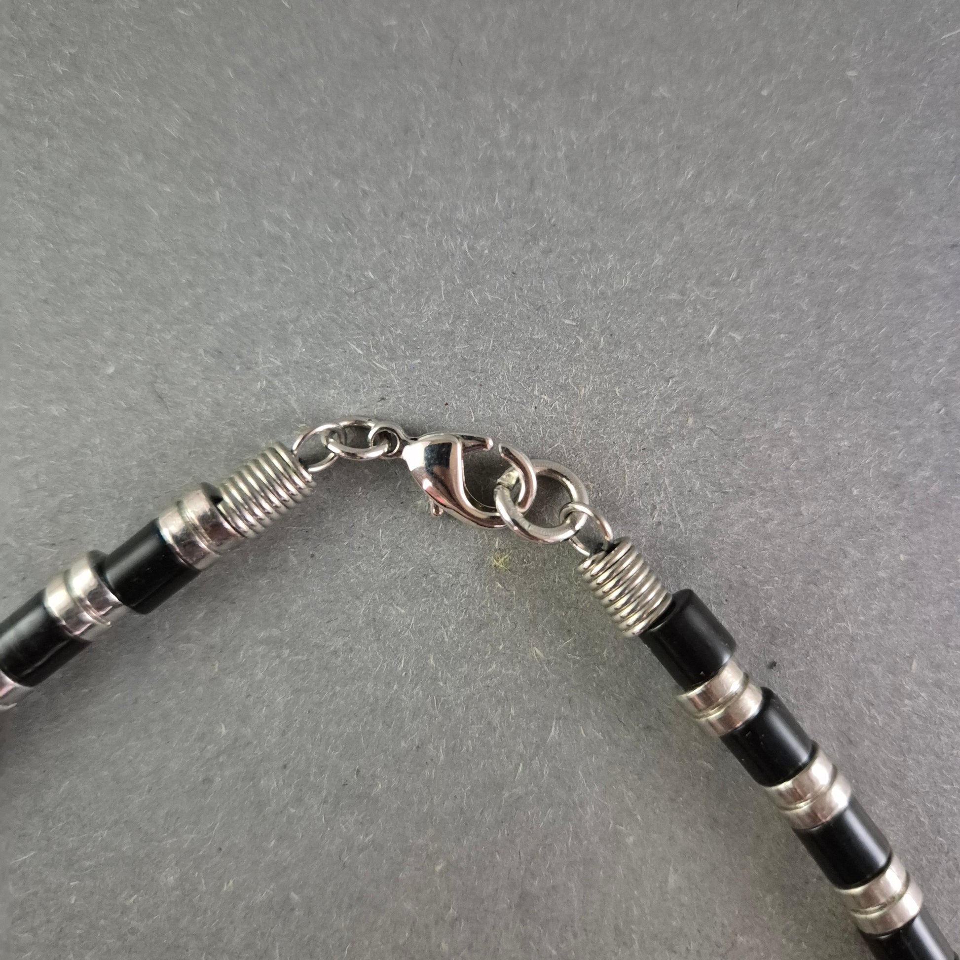 Diese moderne Damen Kette überzeugt durch ihr auffälliges Schwarz-Silber-Design. Die Kombination aus schwarzen Röhrenelementen und silberfarbenen Zwischenstücken verleiht ihr eine markante Optik. Ideal geeignet für Frauen, die ein individuelles Schmuckstück suchen, das sowohl im Alltag als auch zu besonderen Anlässen getragen werden kann.