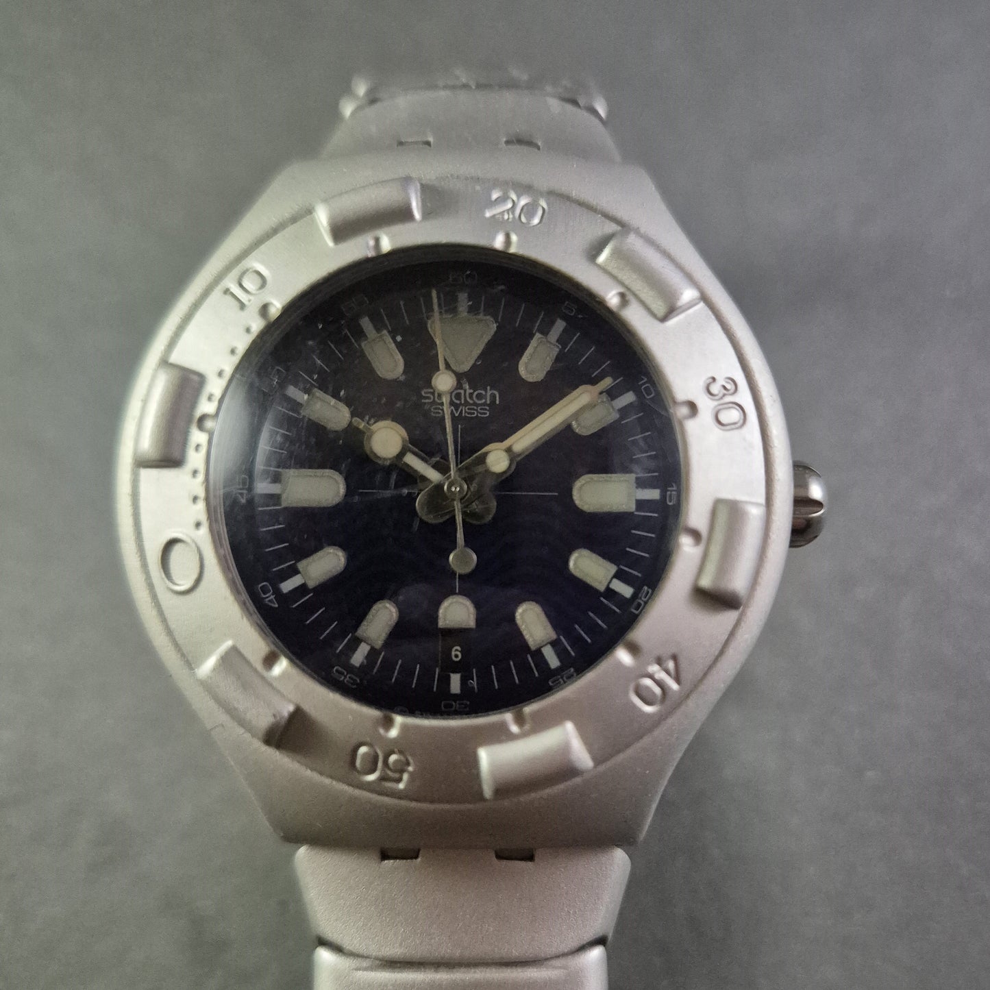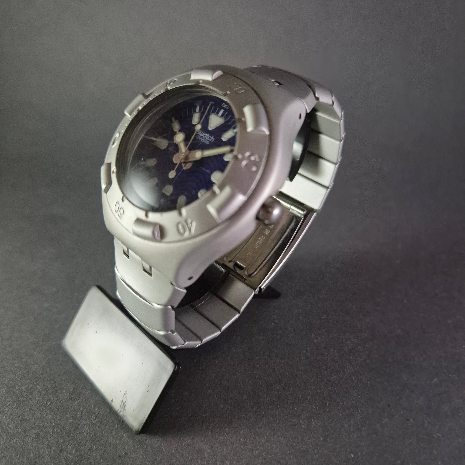 Diese Swatch Herrenarmbanduhr überzeugt durch ihr robustes sportliches Design, ideal für den aktiven Mann. Das mattsilberne Gehäuse aus Aluminium sorgt für ein leichtes Tragegefühl, während das Zifferblatt mit Chronographen-Funktion und klaren Indizes maximale Funktionalität bietet. Die drehbare Lünette und die 200 Meter Wasserdichtigkeit machen diese Uhr zu einem perfekten Begleiter für Outdoor-Aktivitäten.