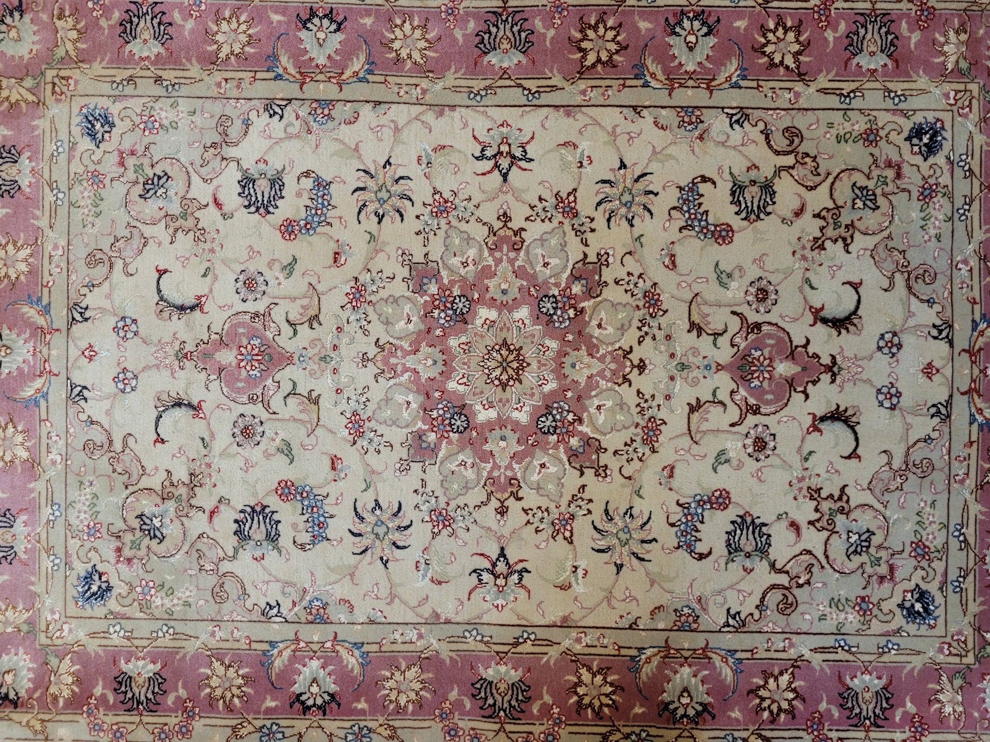 Täbriz Teppich Korkwolle mit Seide florales Medaillon feine Knüpfkunst