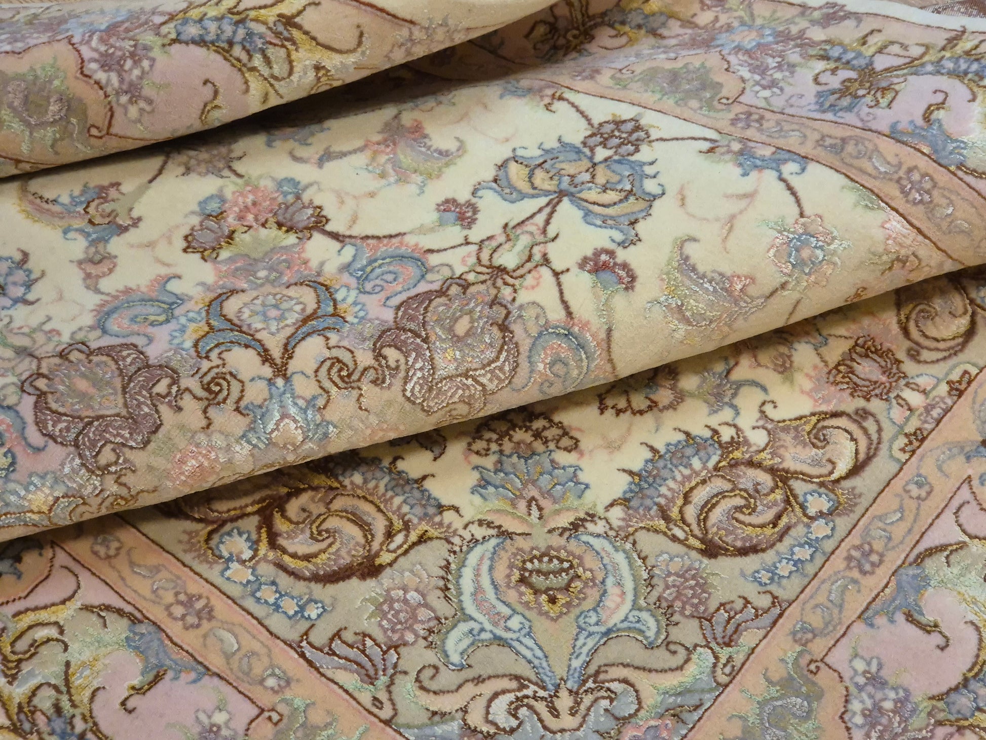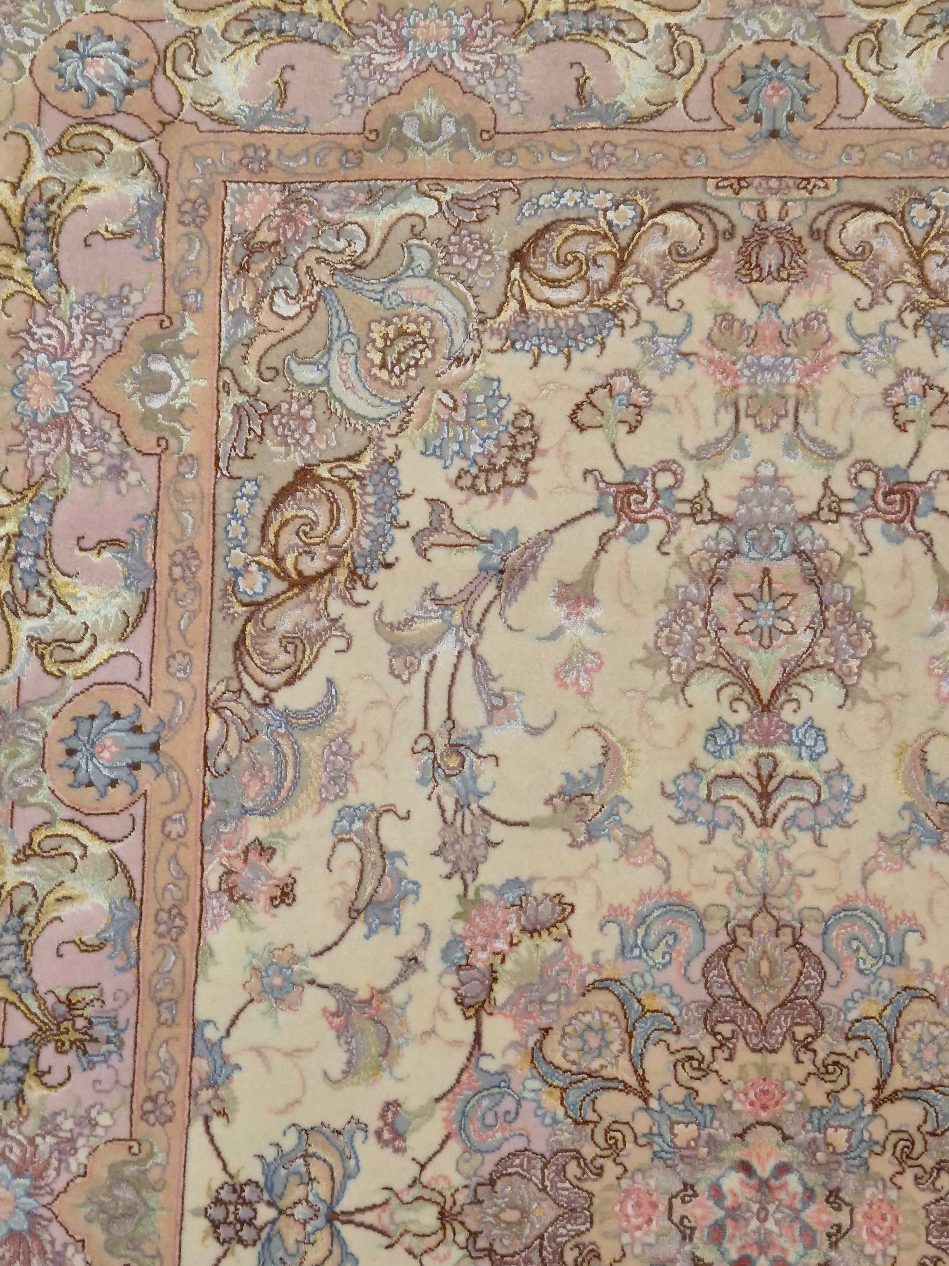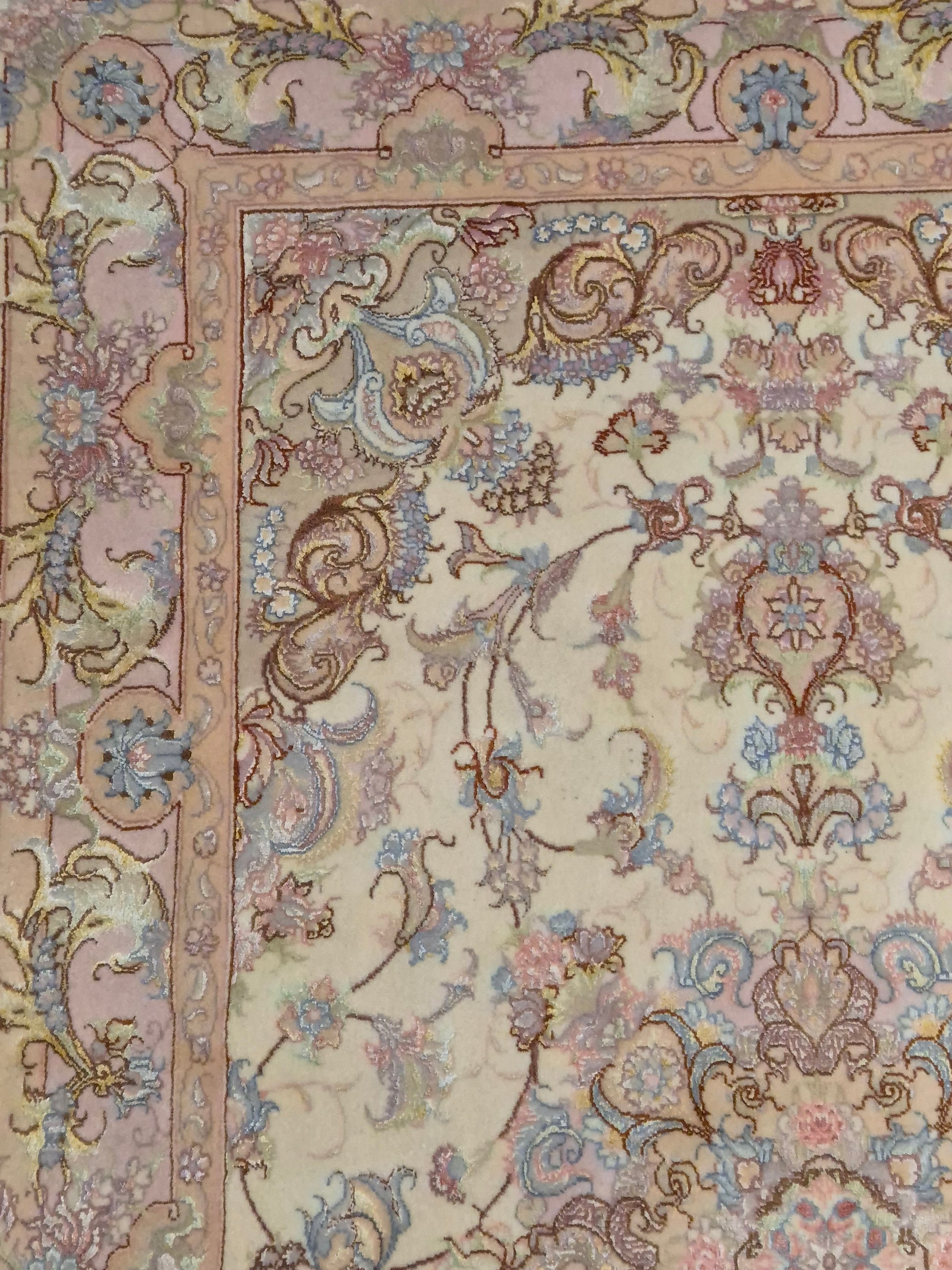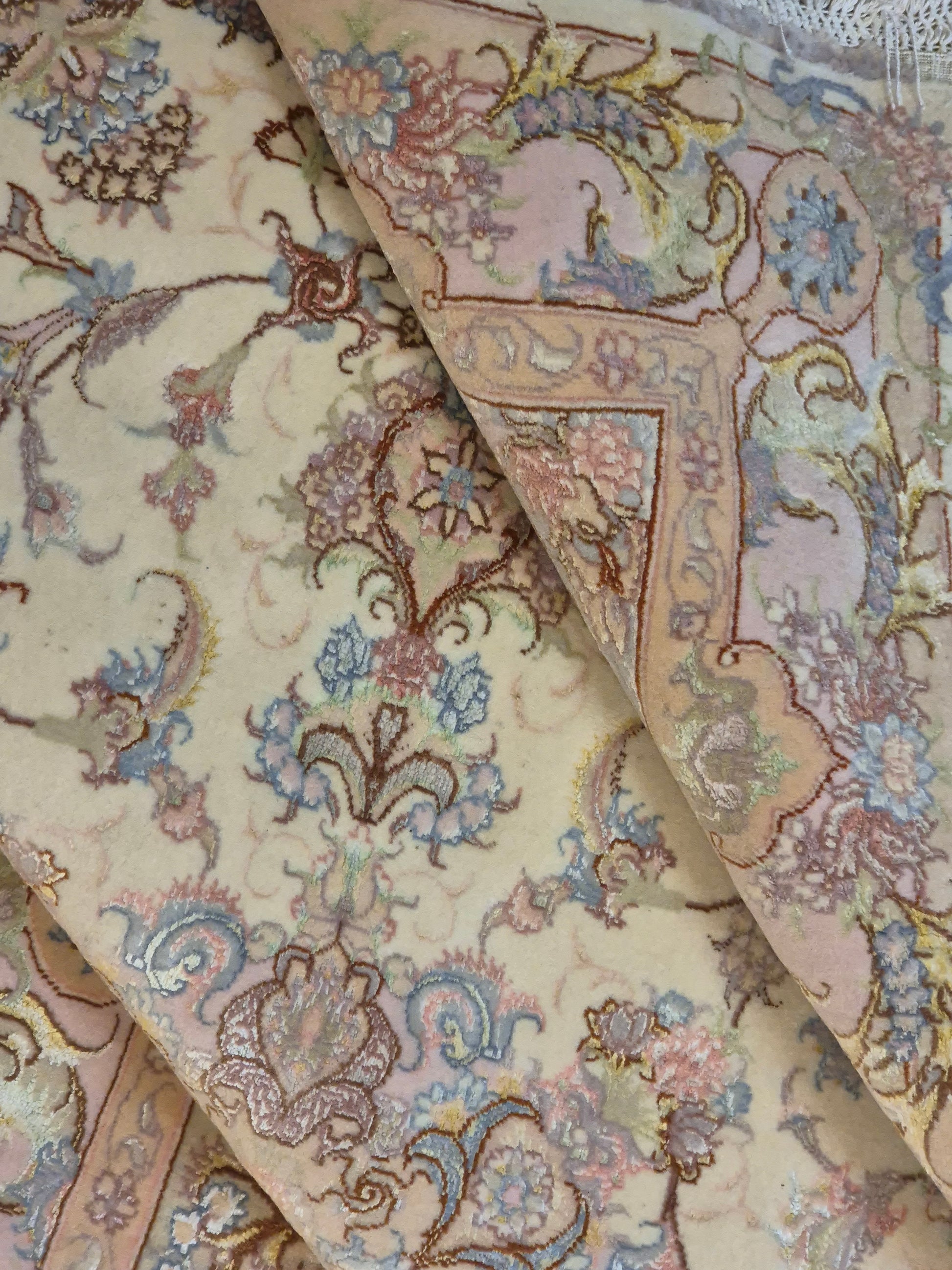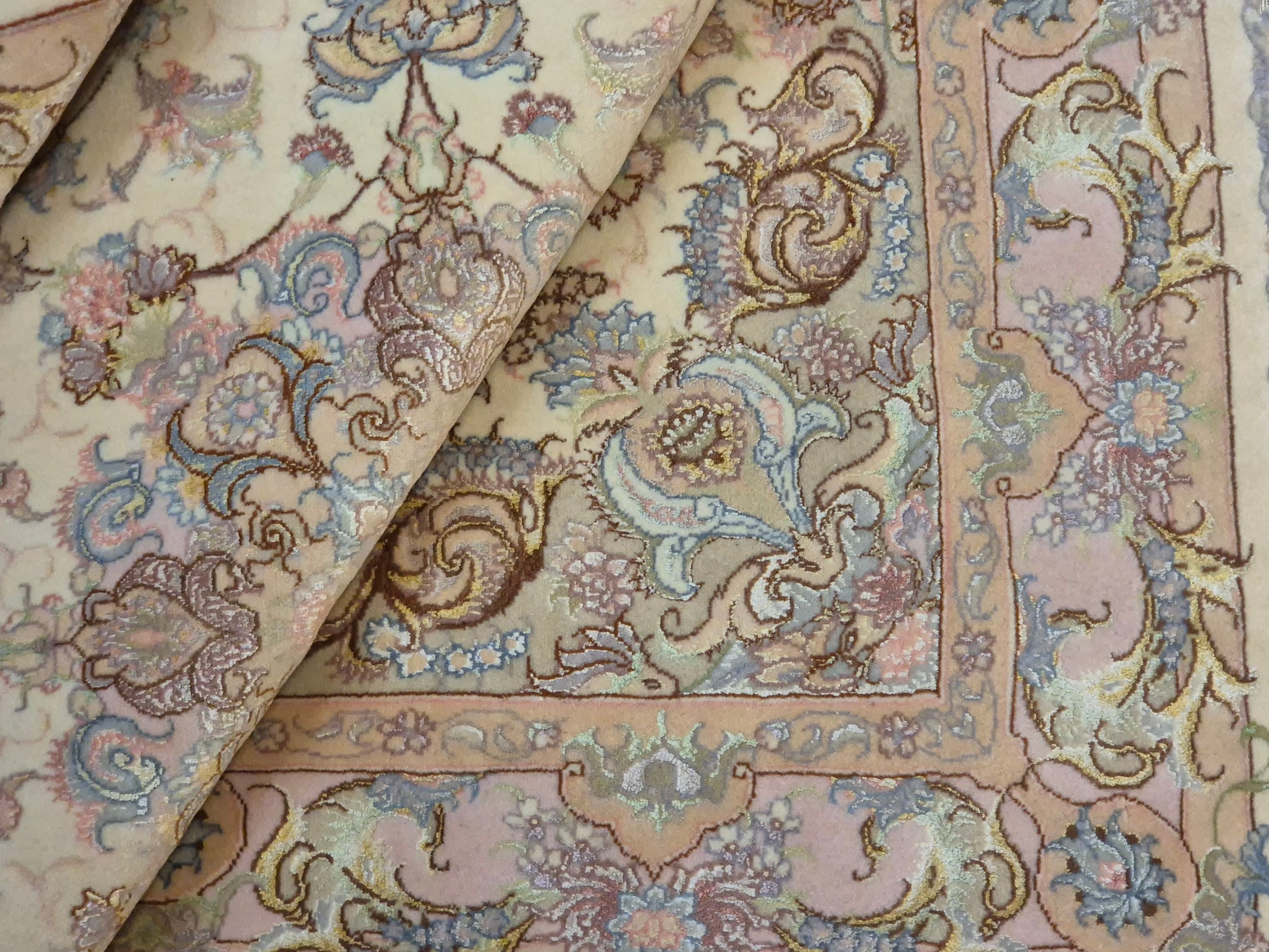 Täbriz Teppich Korkwolle Seide auf Seide feine Pastellfarben