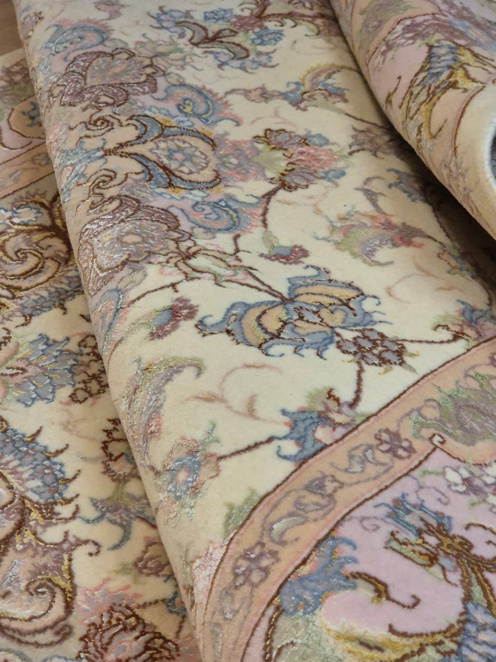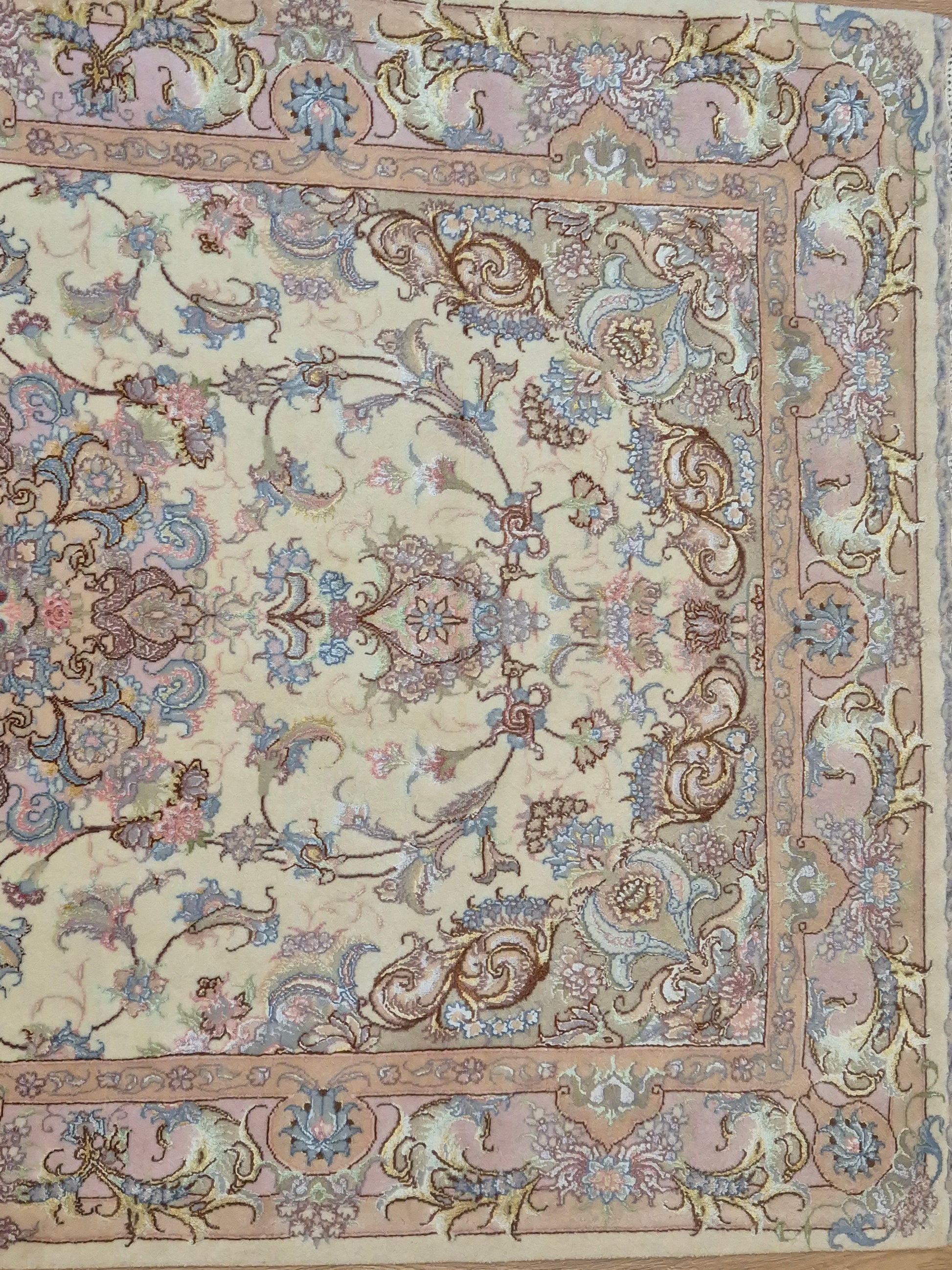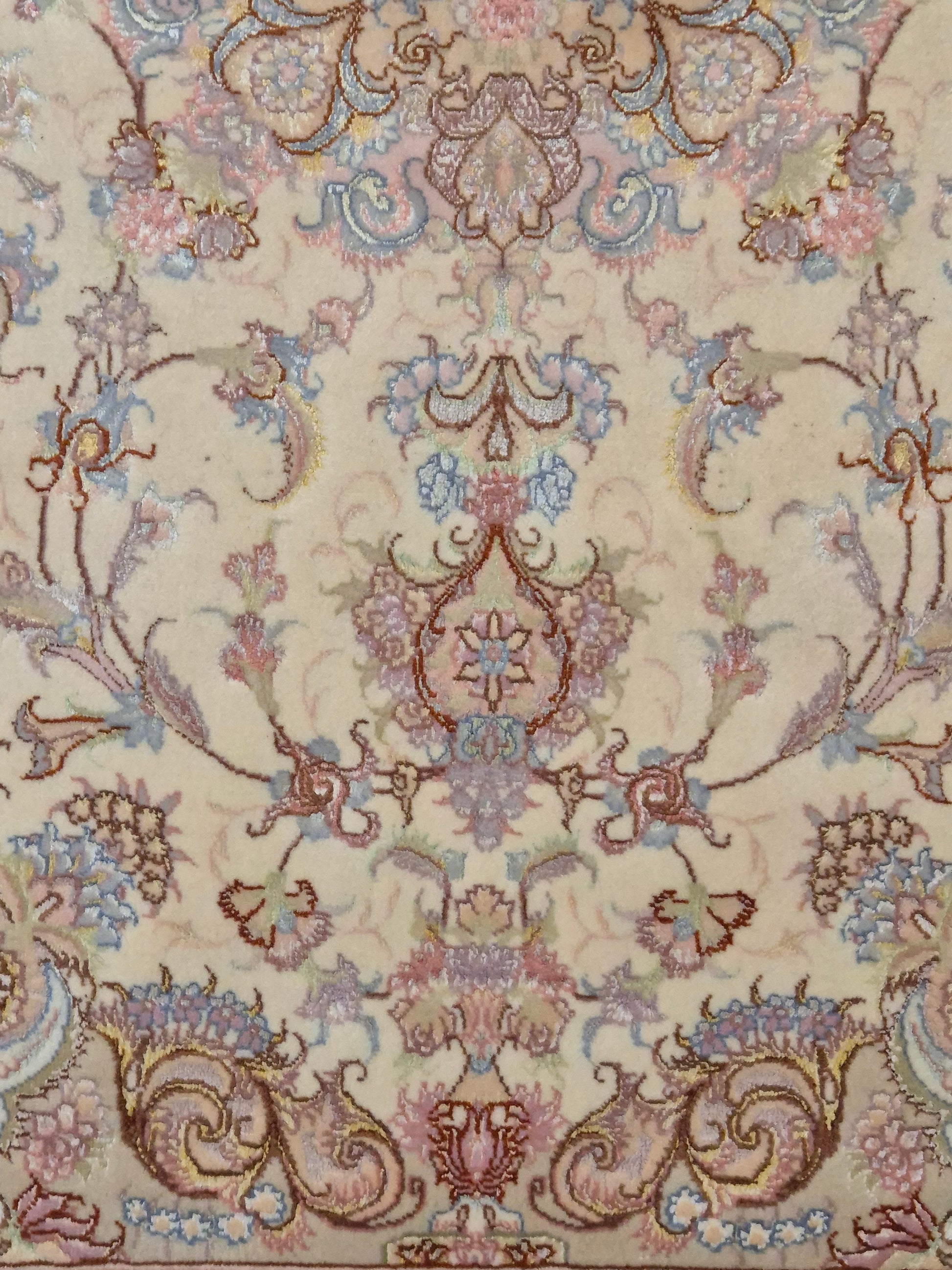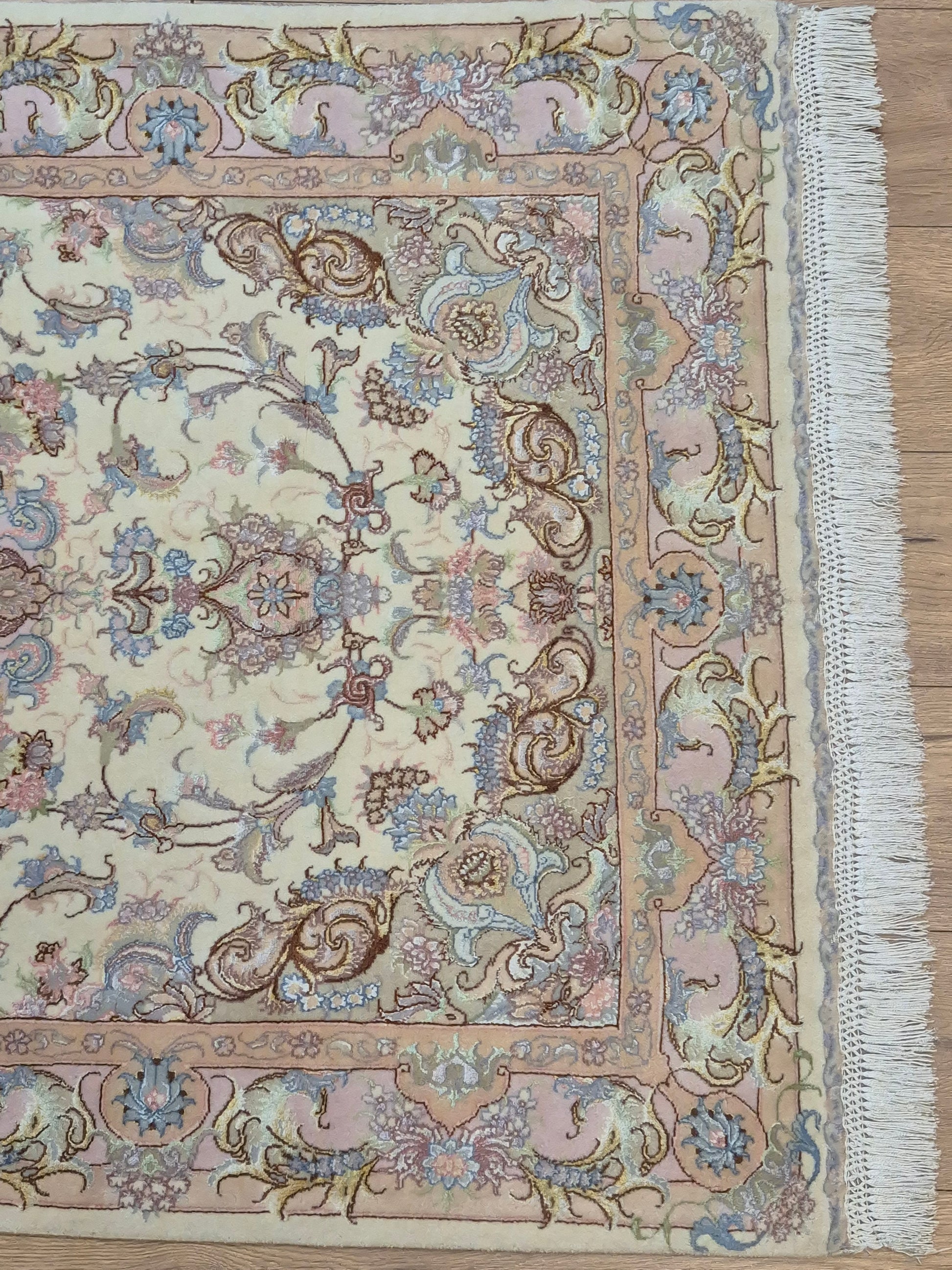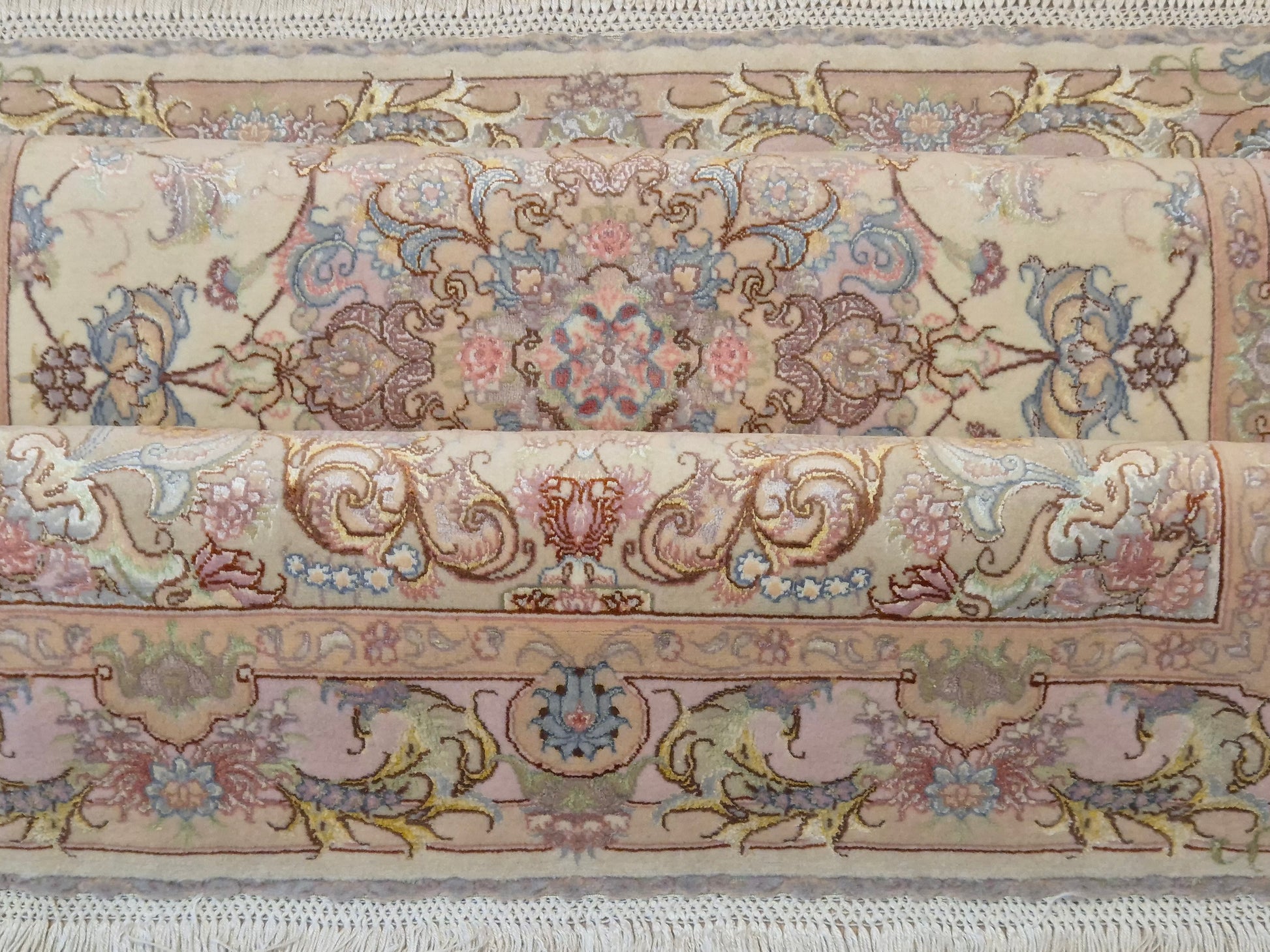Täbriz Teppich Korkwolle Seide auf Seide feine Pastellfarben
