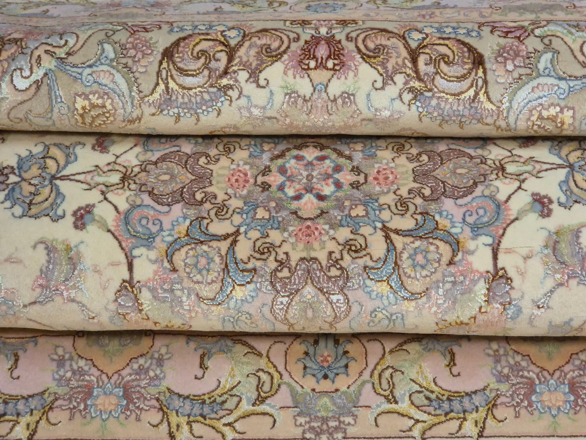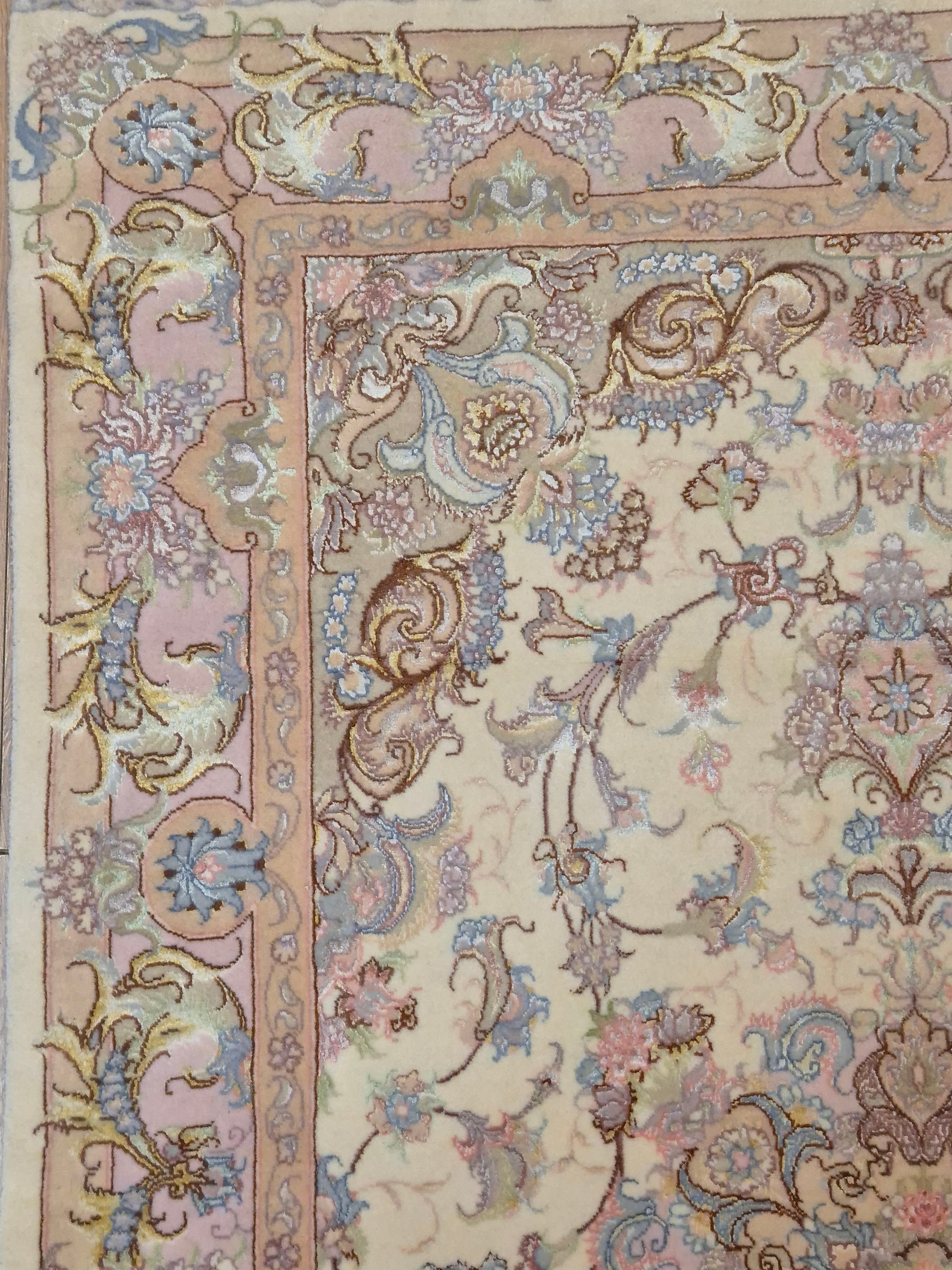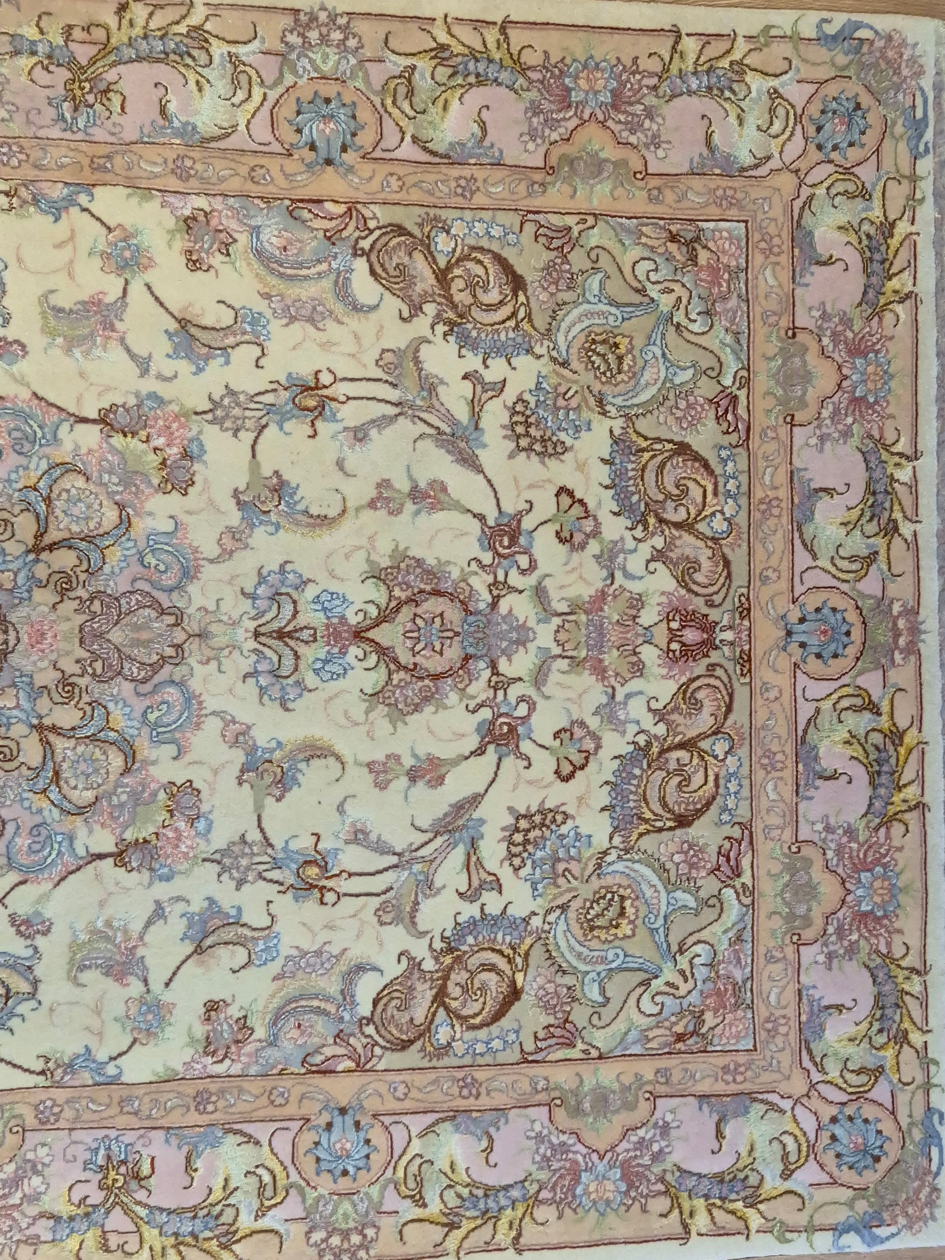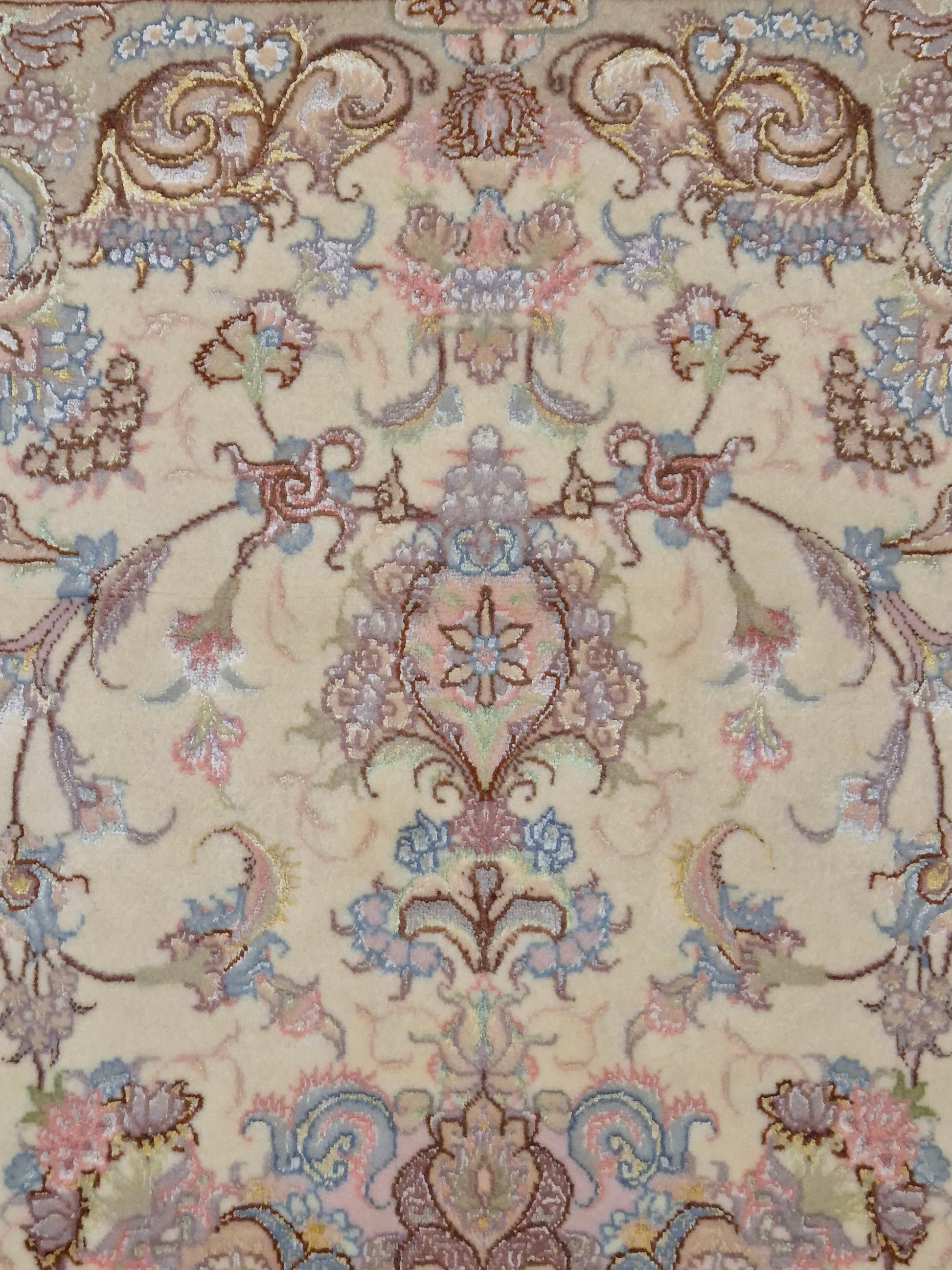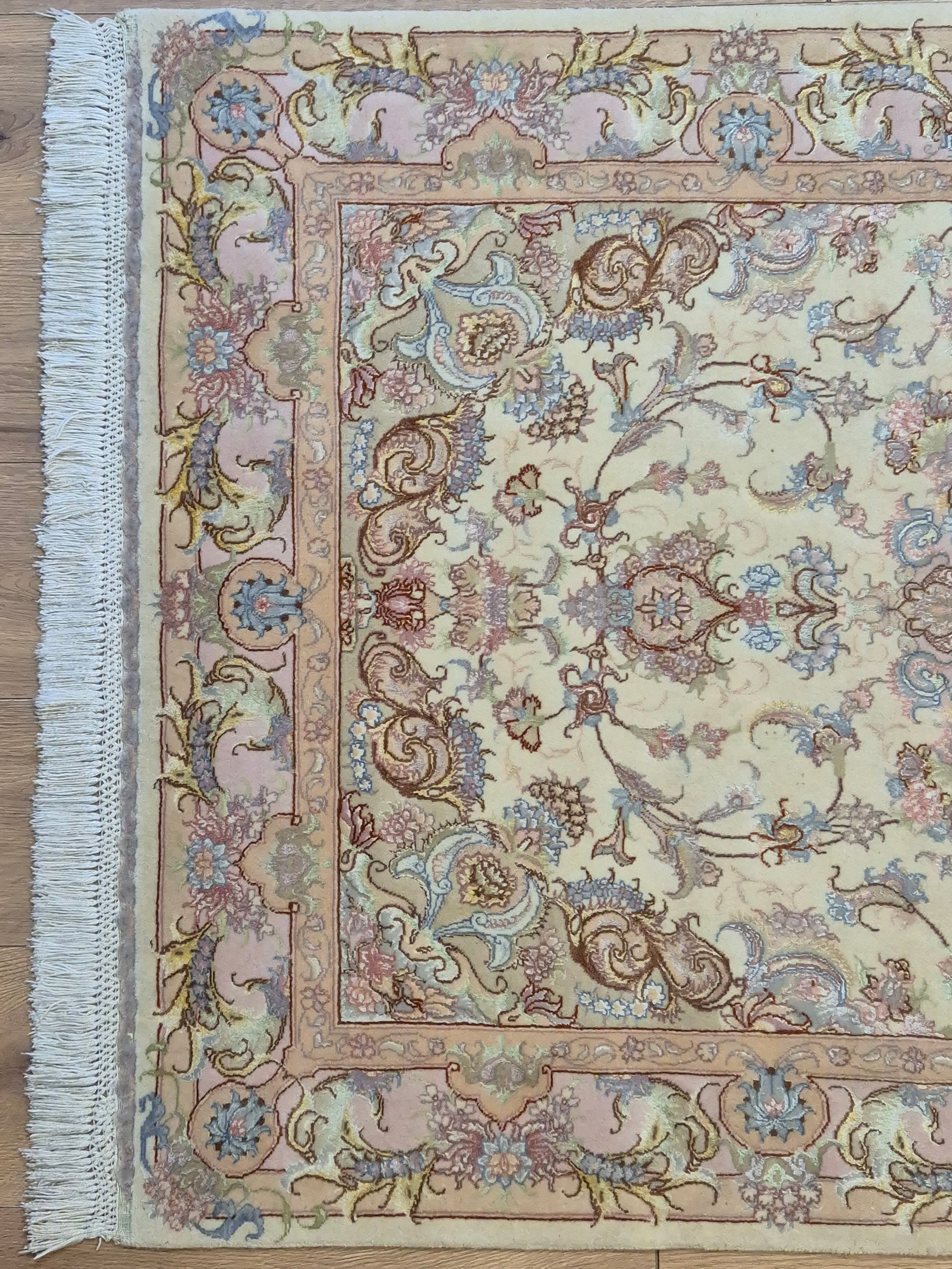 Täbriz Teppich Korkwolle Seide auf Seide feine Pastellfarben