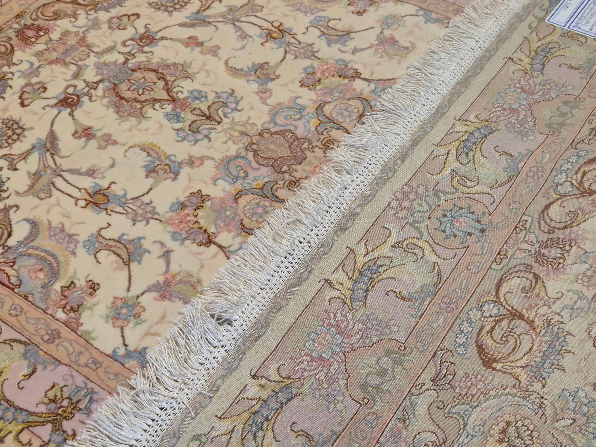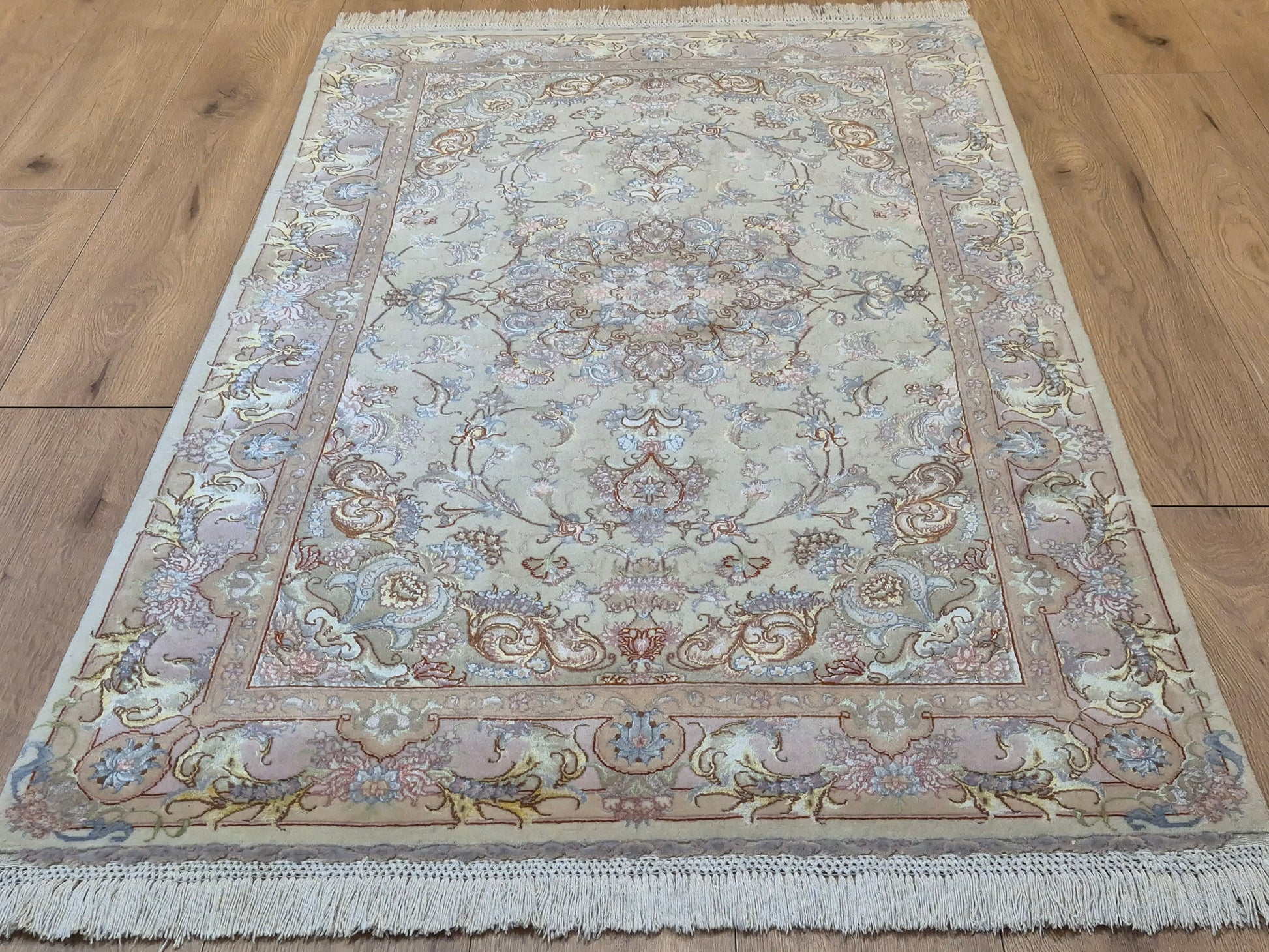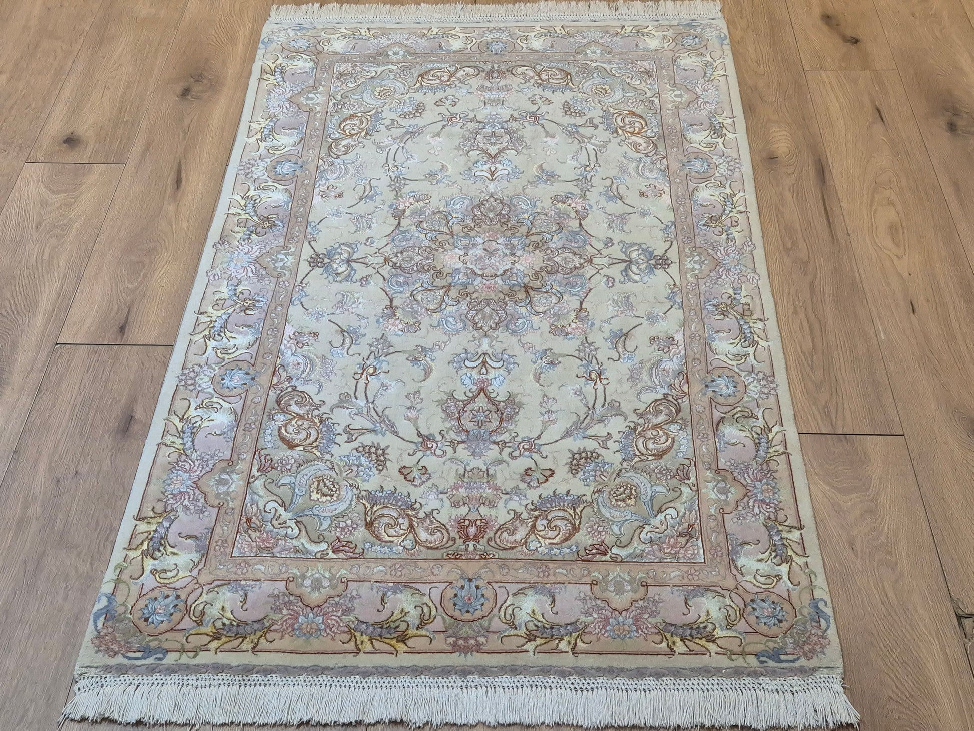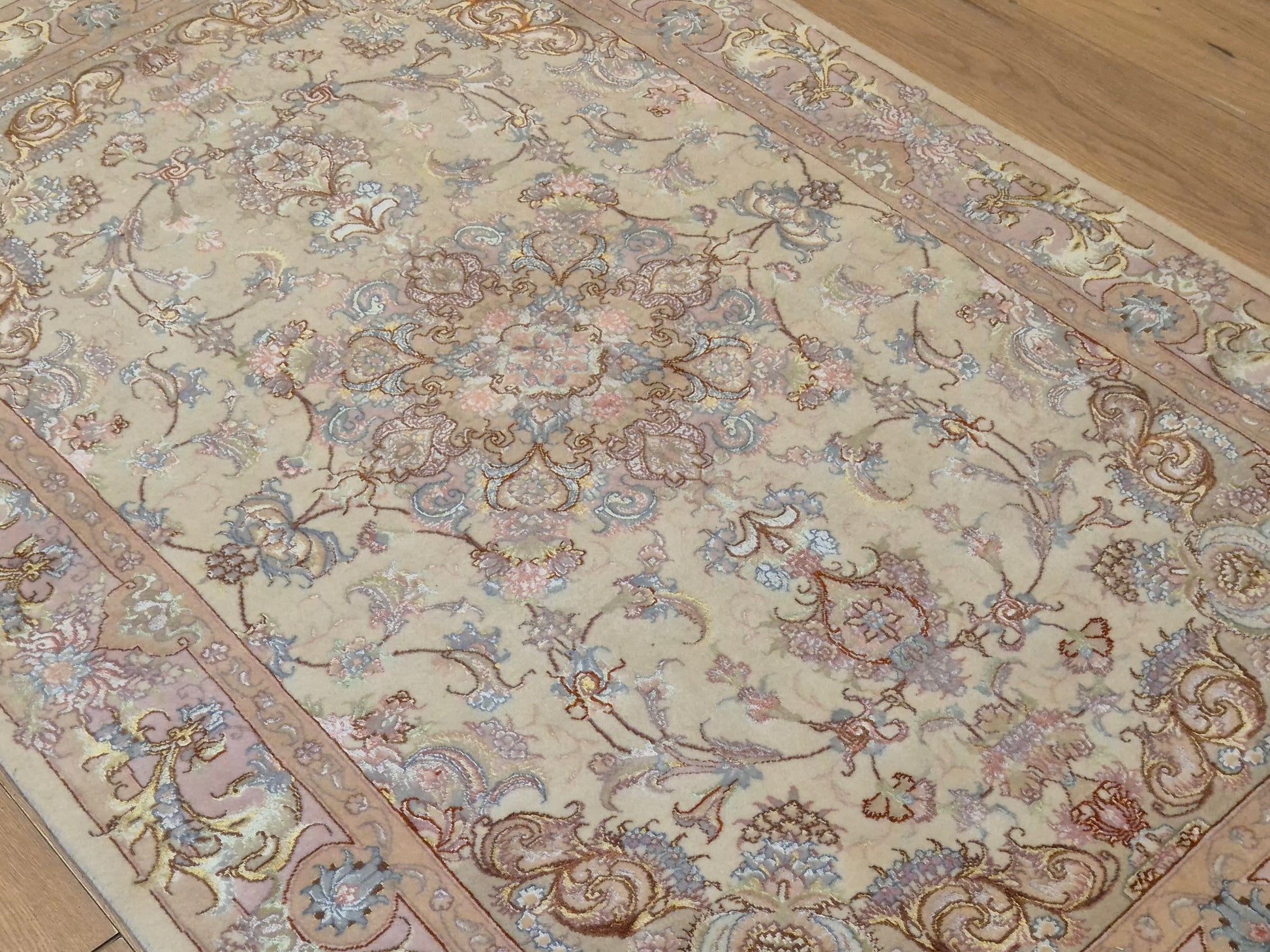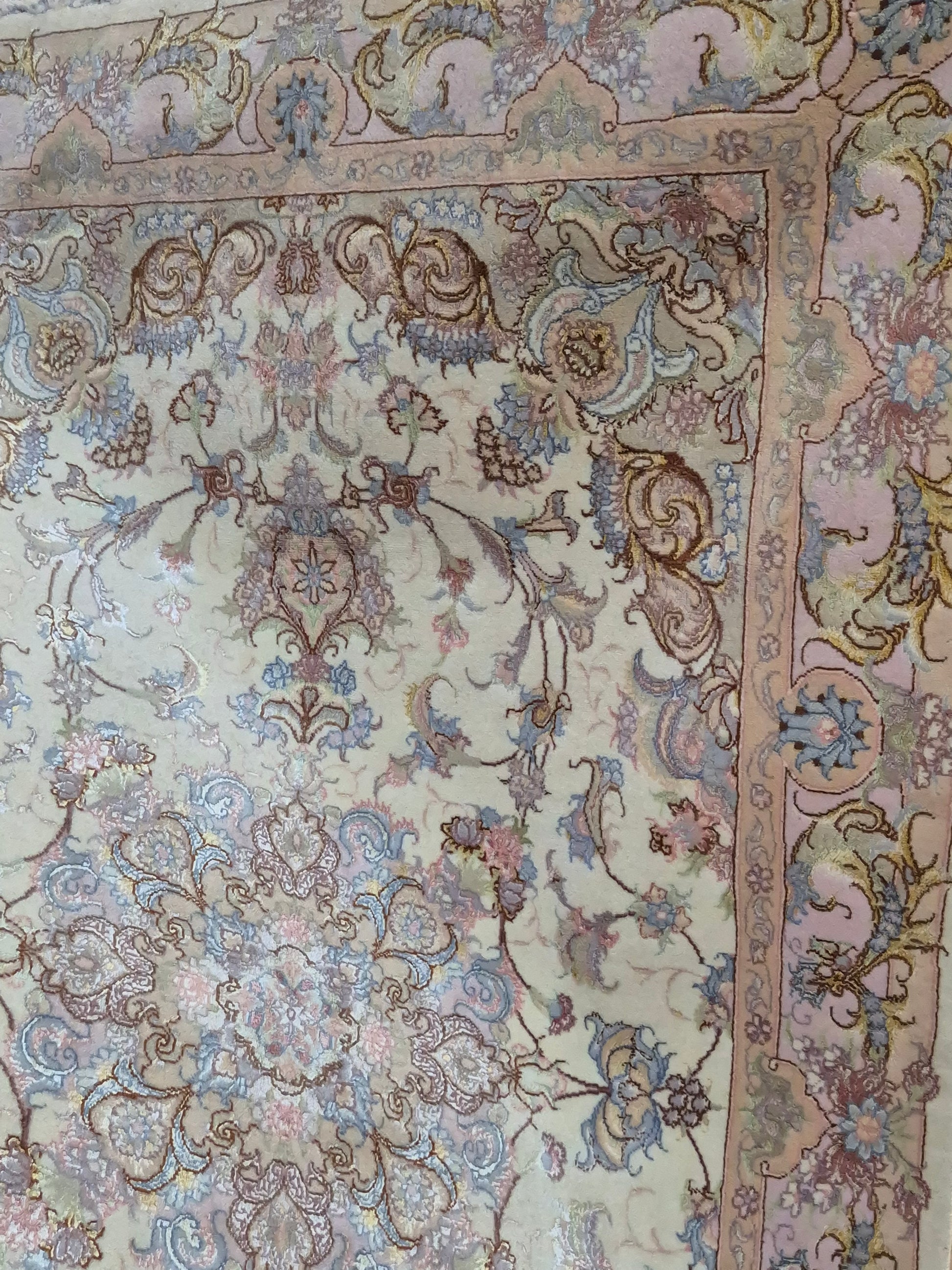 Täbriz Teppich Korkwolle Seide auf Seide feine Pastellfarben