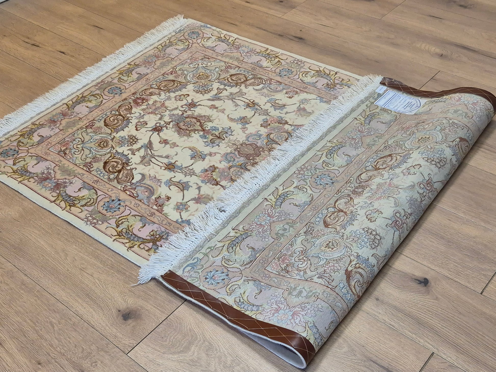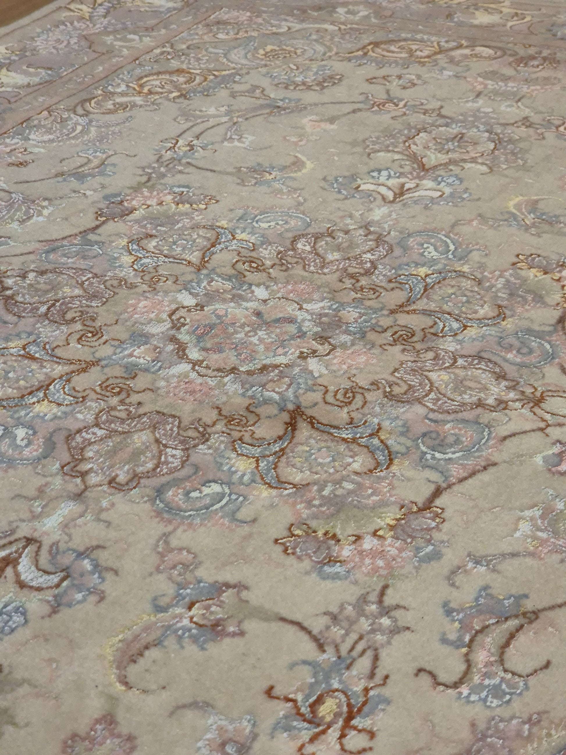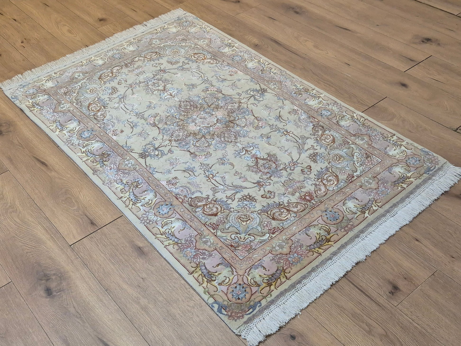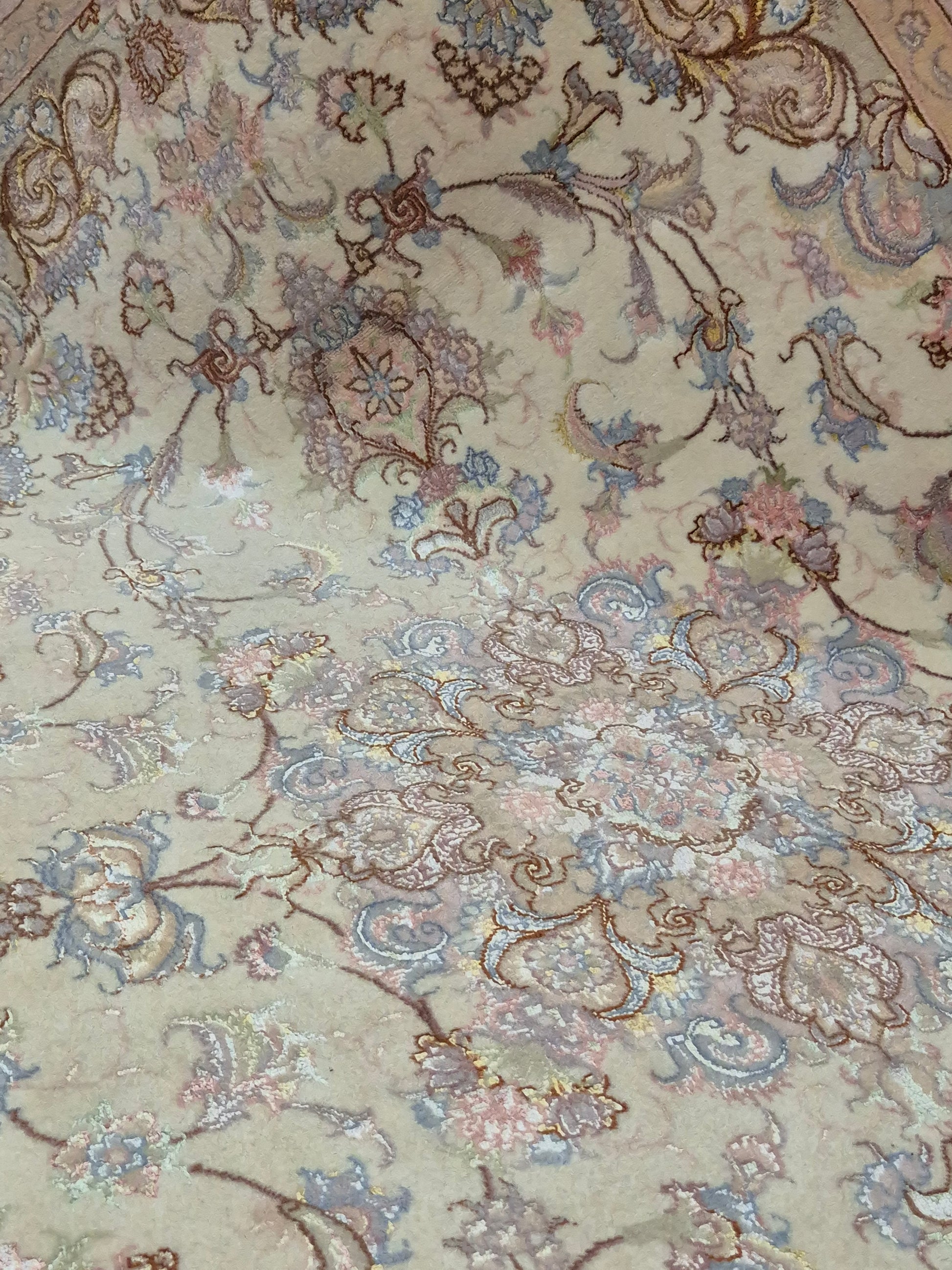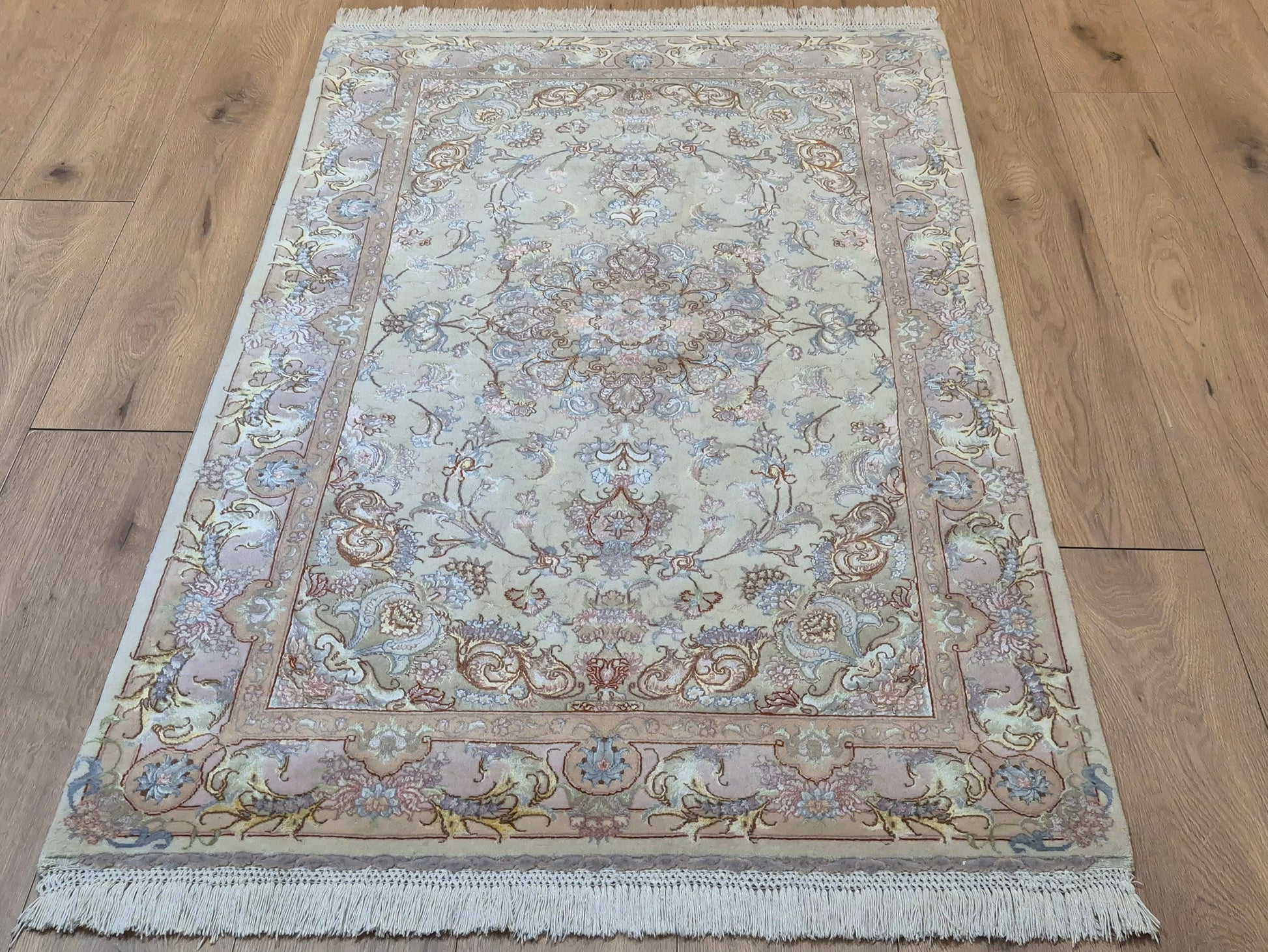 Täbriz Teppich Korkwolle Seide auf Seide feine Pastellfarben