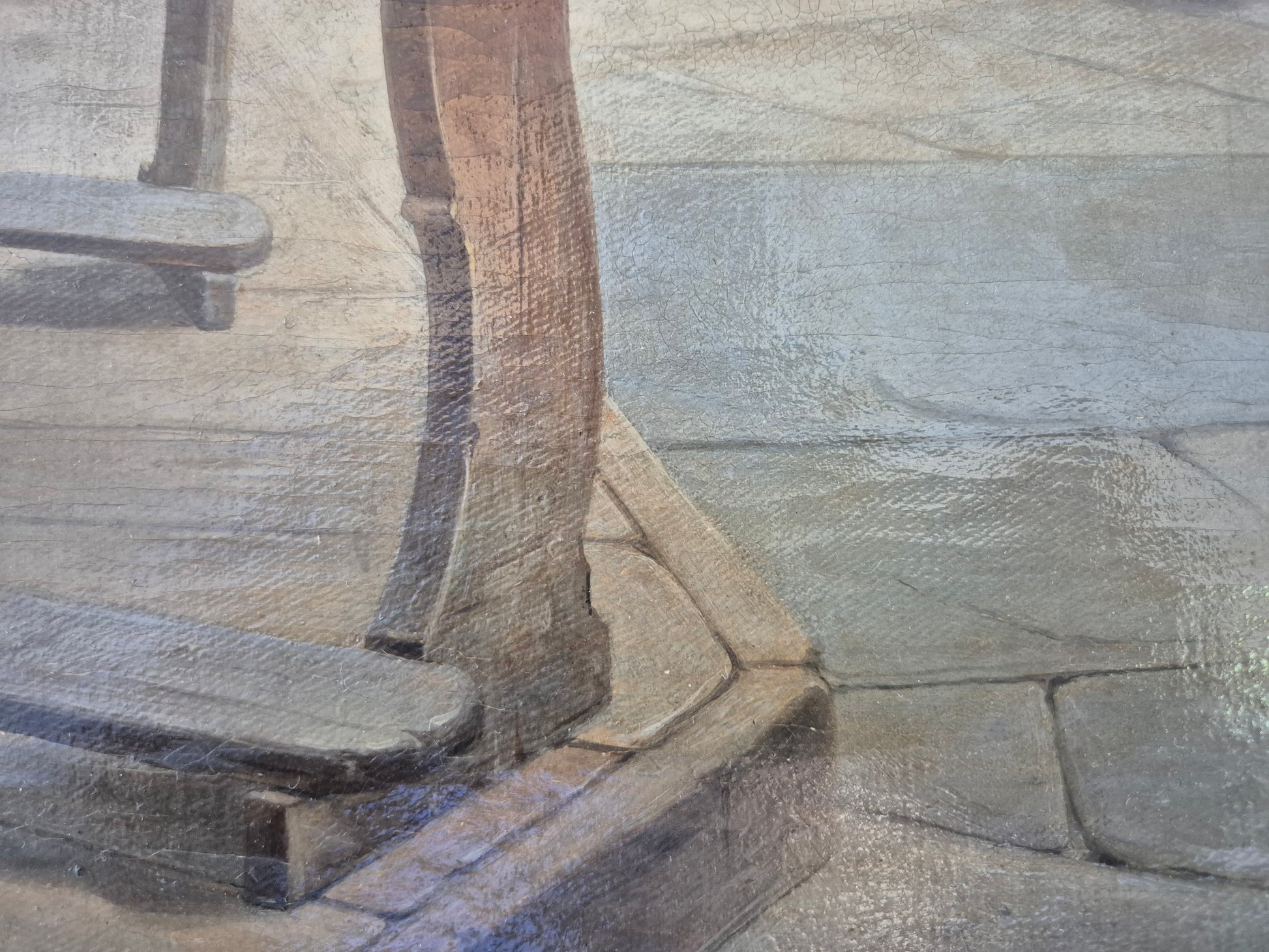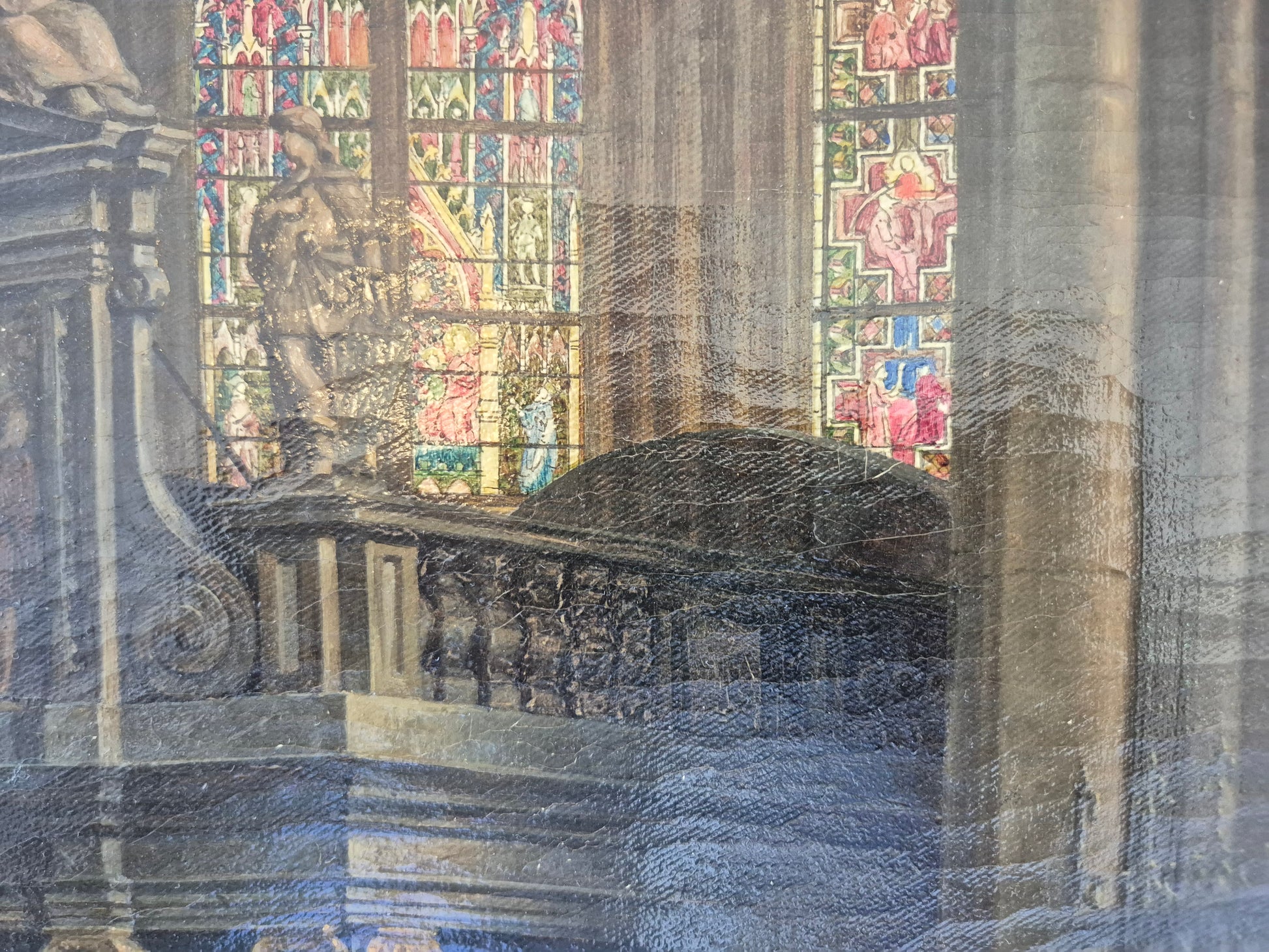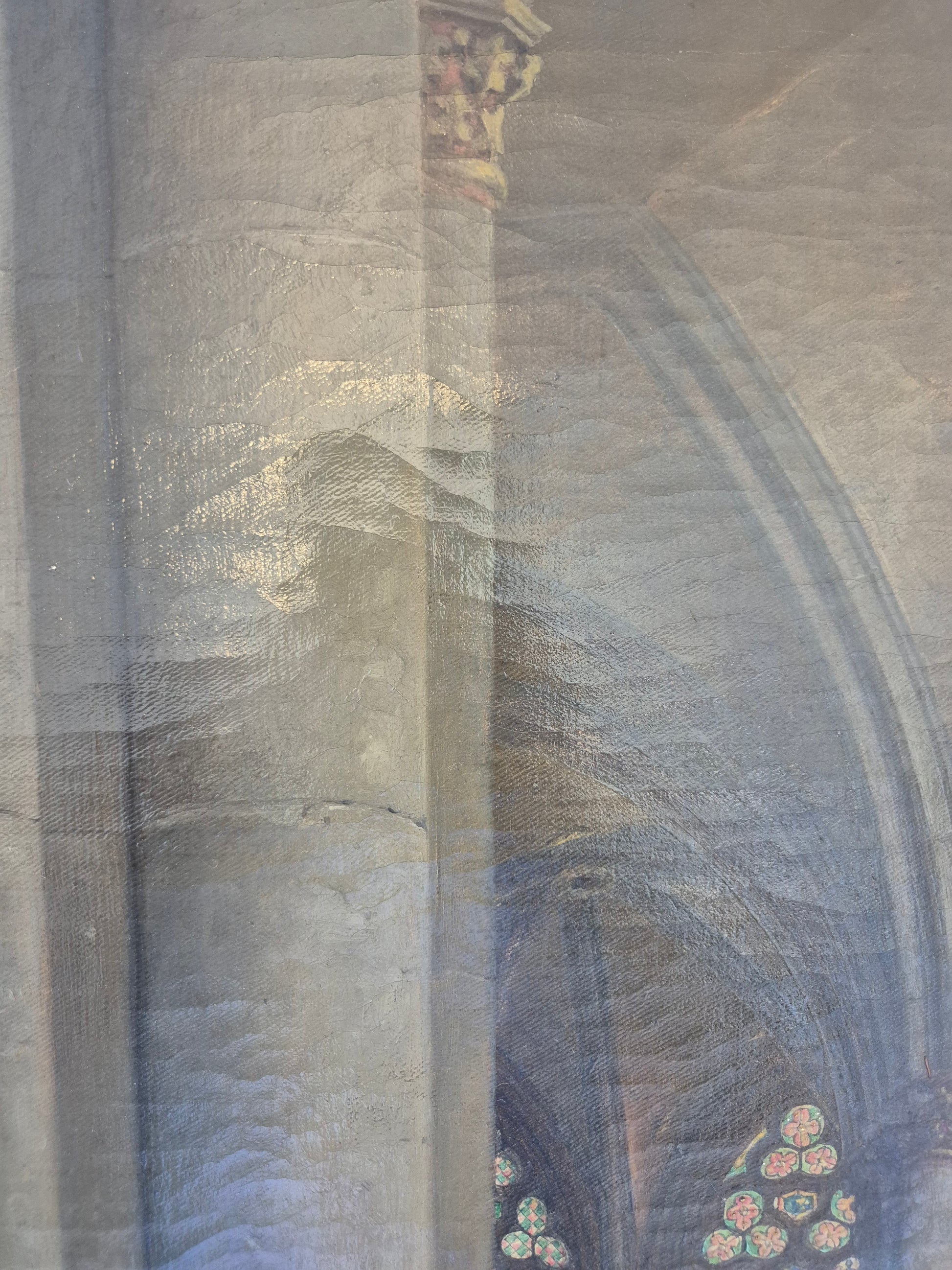 Grolls Gespür für Perspektive, architektonische Genauigkeit und die Wirkung von Licht und Schatten verleihen dem Gemälde eine beeindruckende Präsenz. Ein bedeutendes Werk mit musealem Charakter, das Liebhaber sakraler Architekturmalerei besonders ansprechen dürfte.