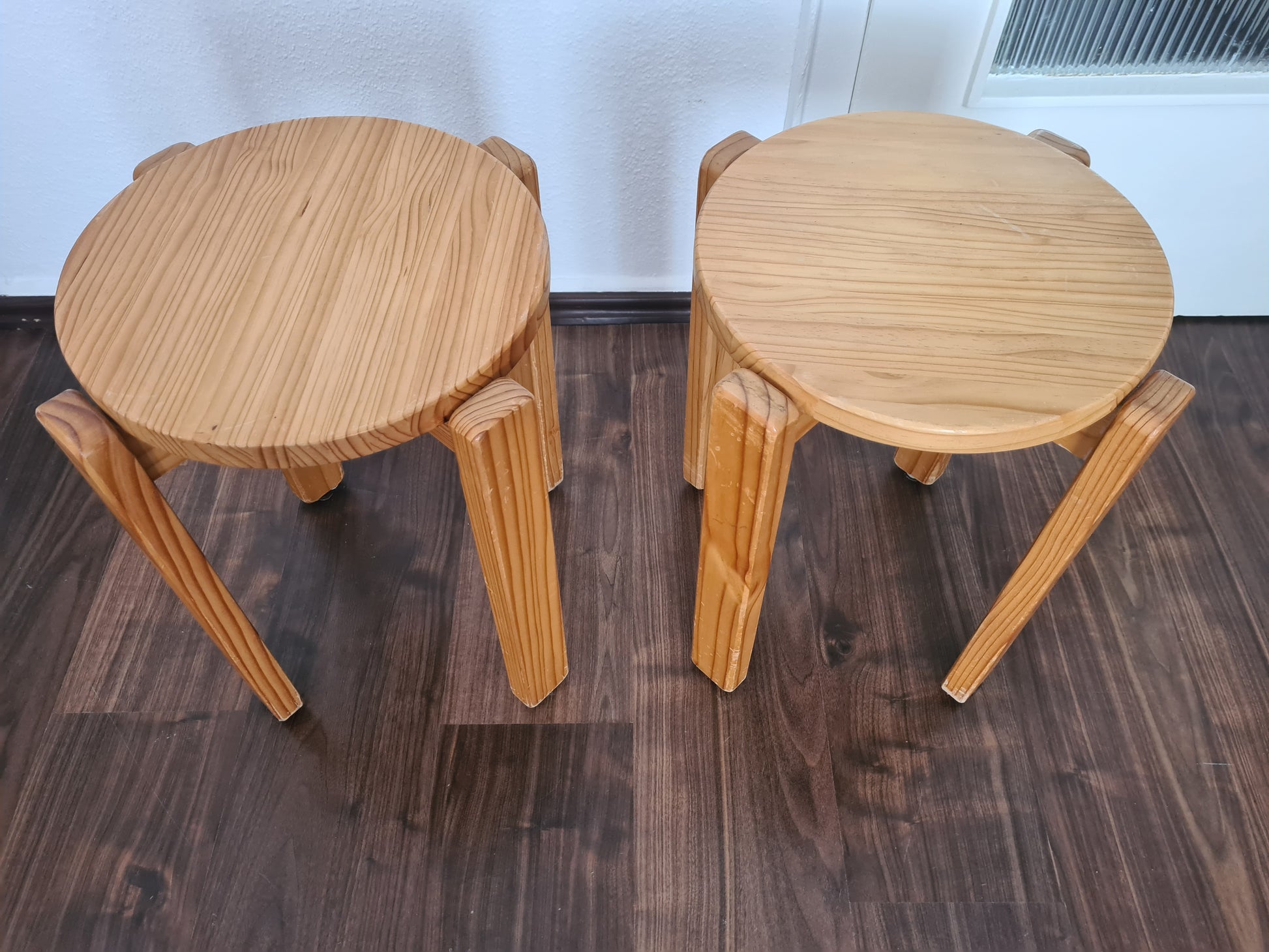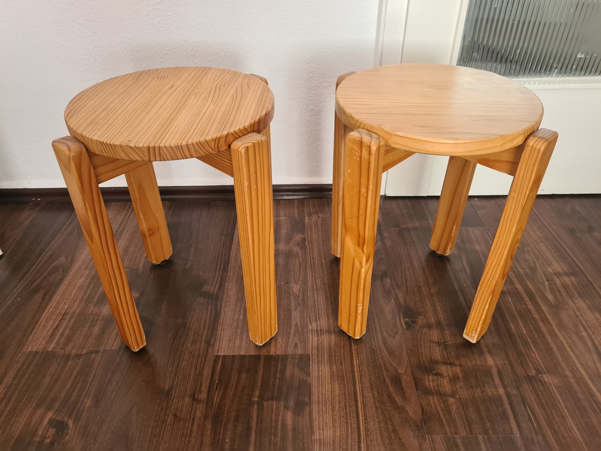 Titel: 2er Set Holz-Hocker – 1970er Jahre