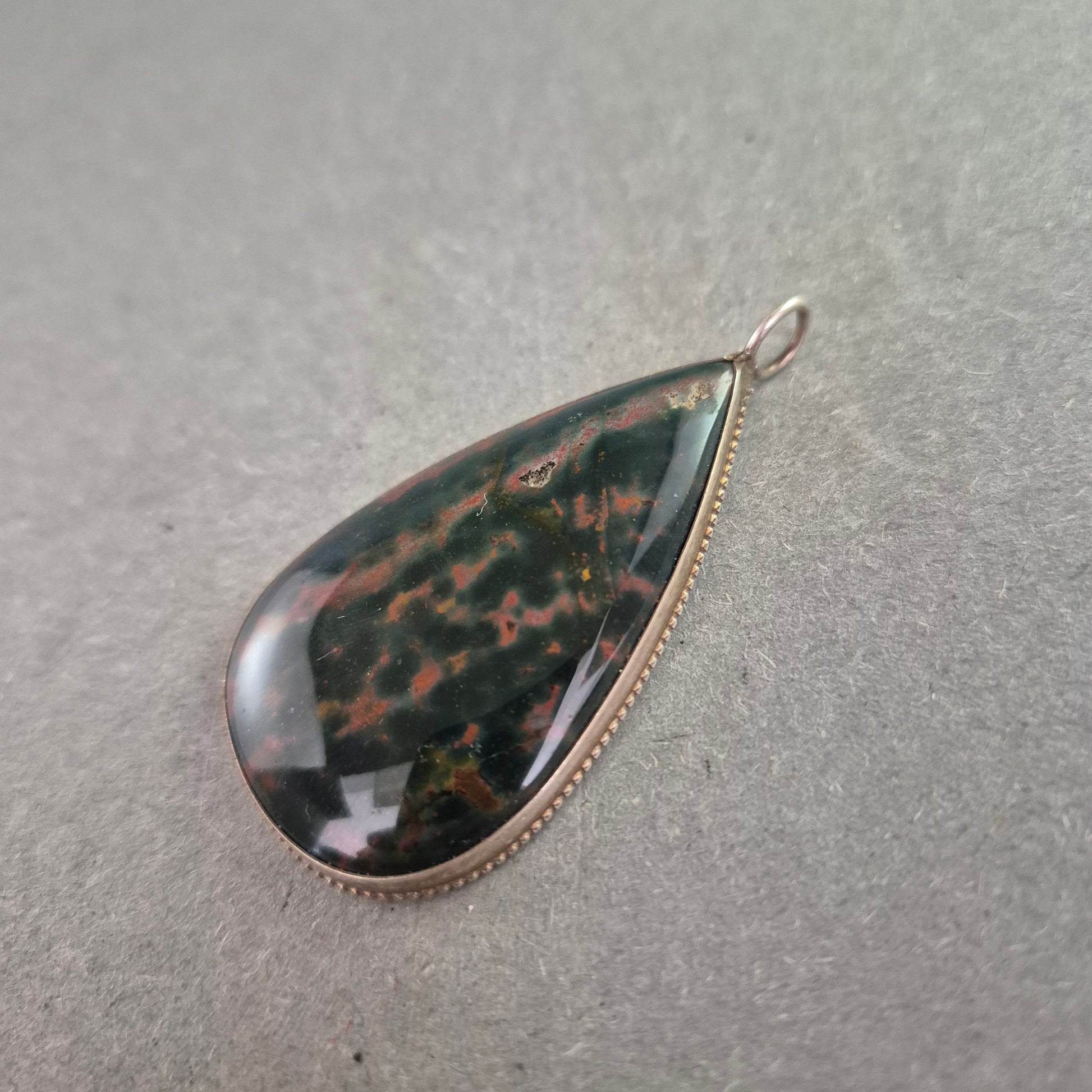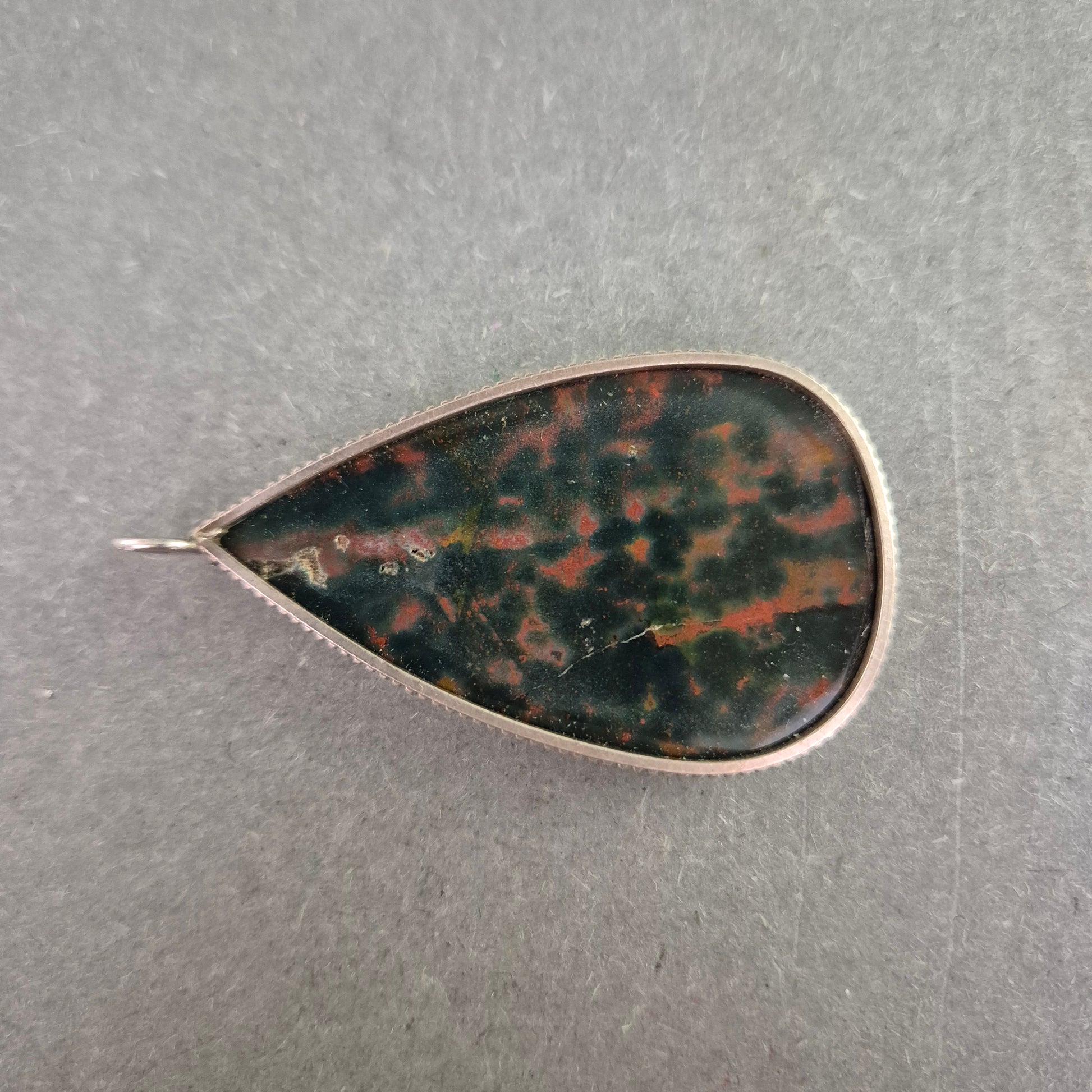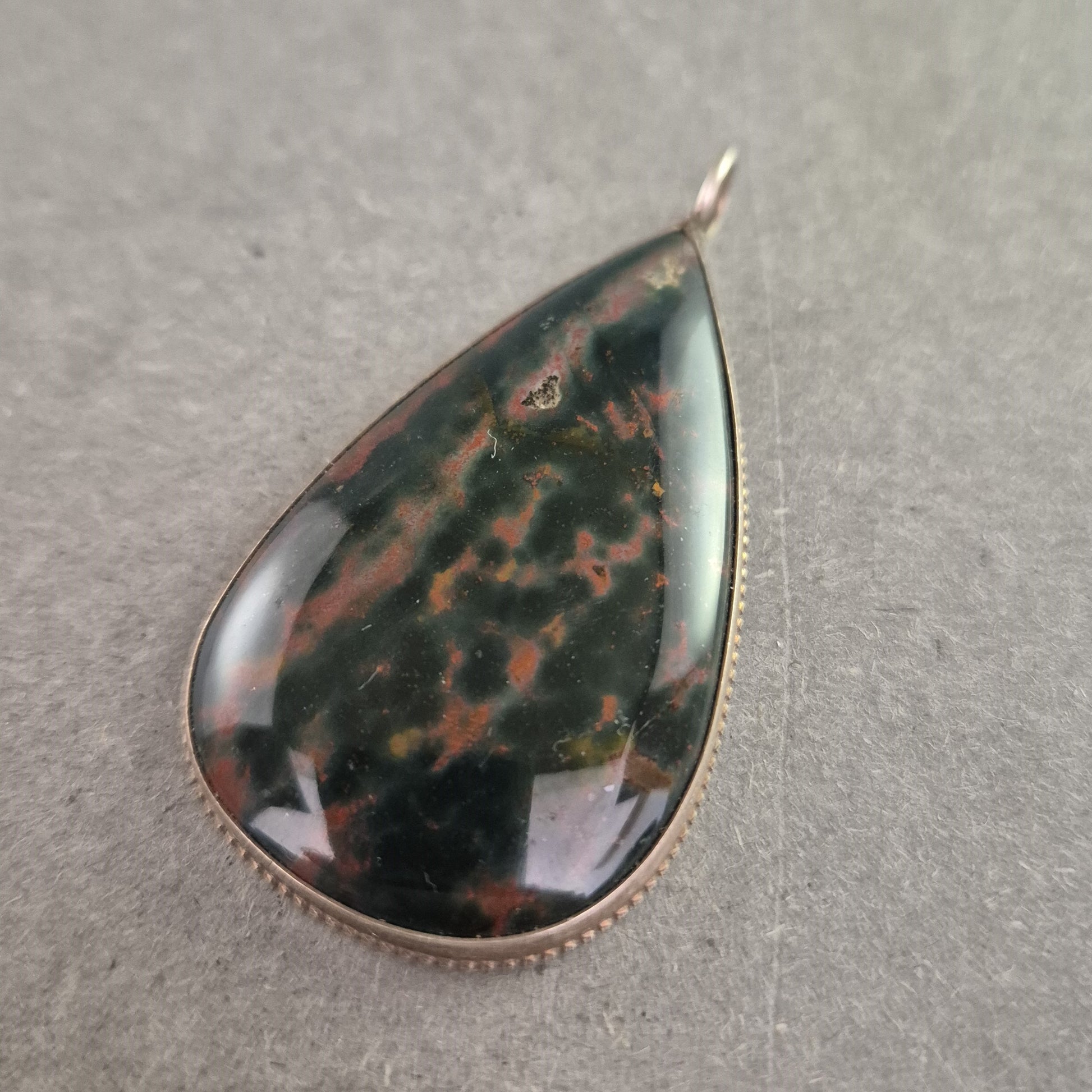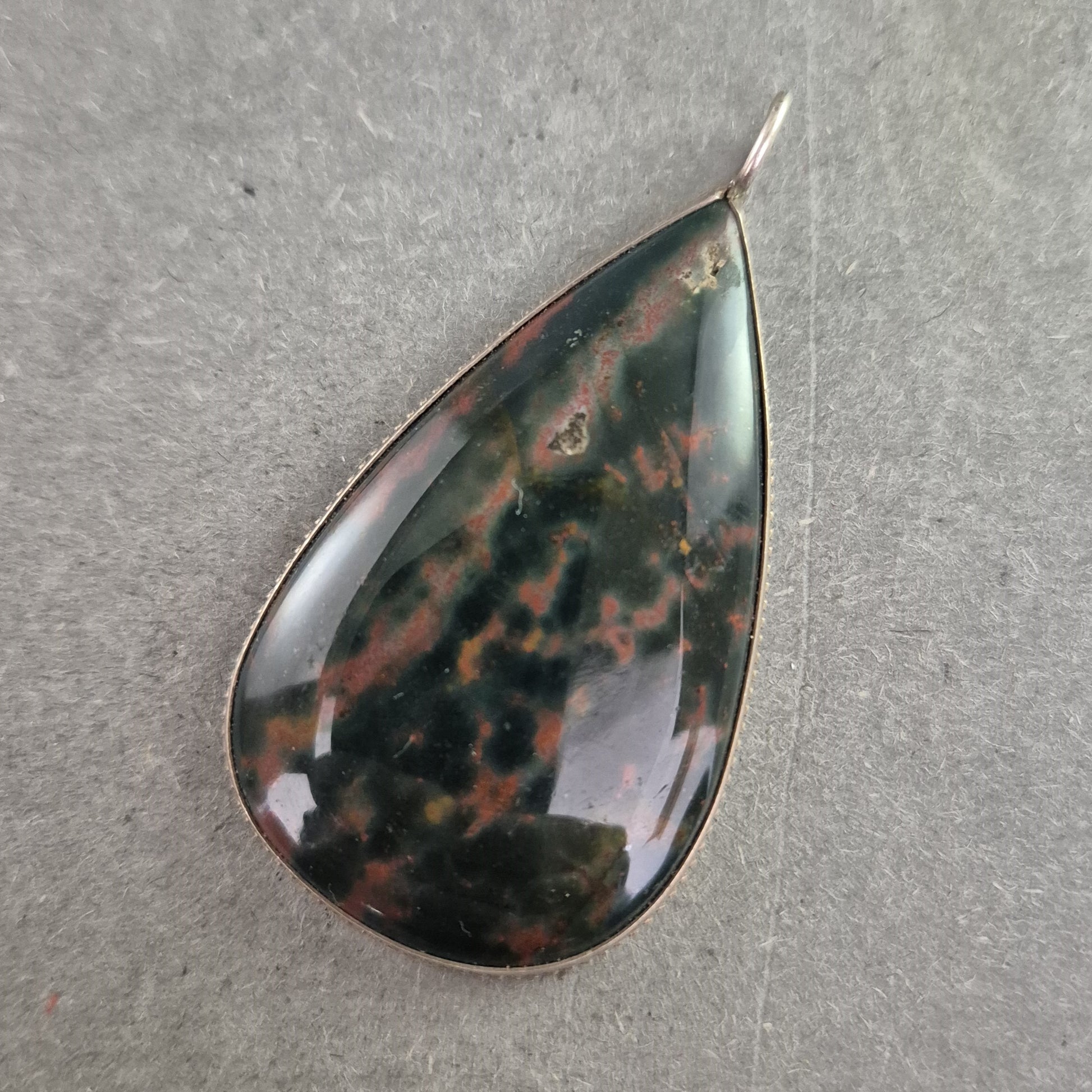 Tropfenförmiger Anhänger mit Blutjaspis – Silberfassung, Naturstein