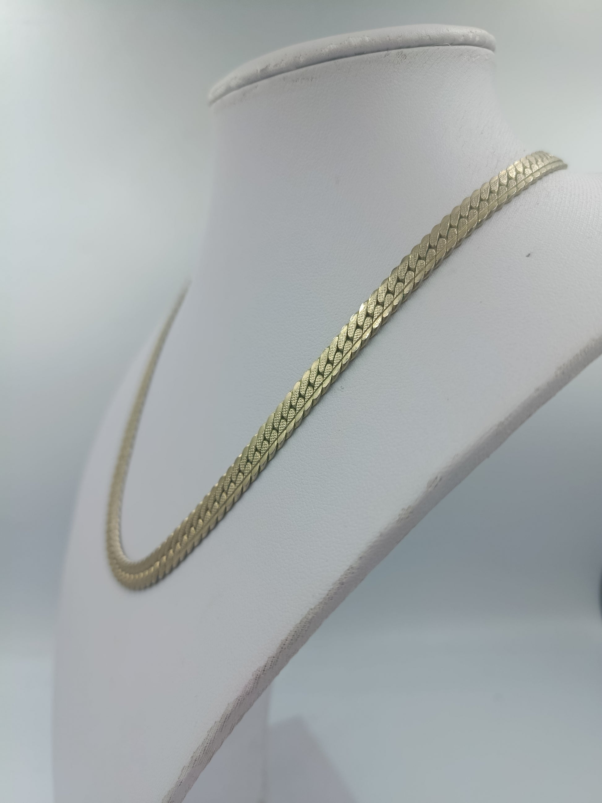Elegante vergoldete Halskette mit feinem Schlangen-Design und leicht strukturiertem Muster. Die Kette liegt geschmeidig am Hals an und eignet sich perfekt für elegante Anlässe oder als stilvolles Accessoire im Alltag.