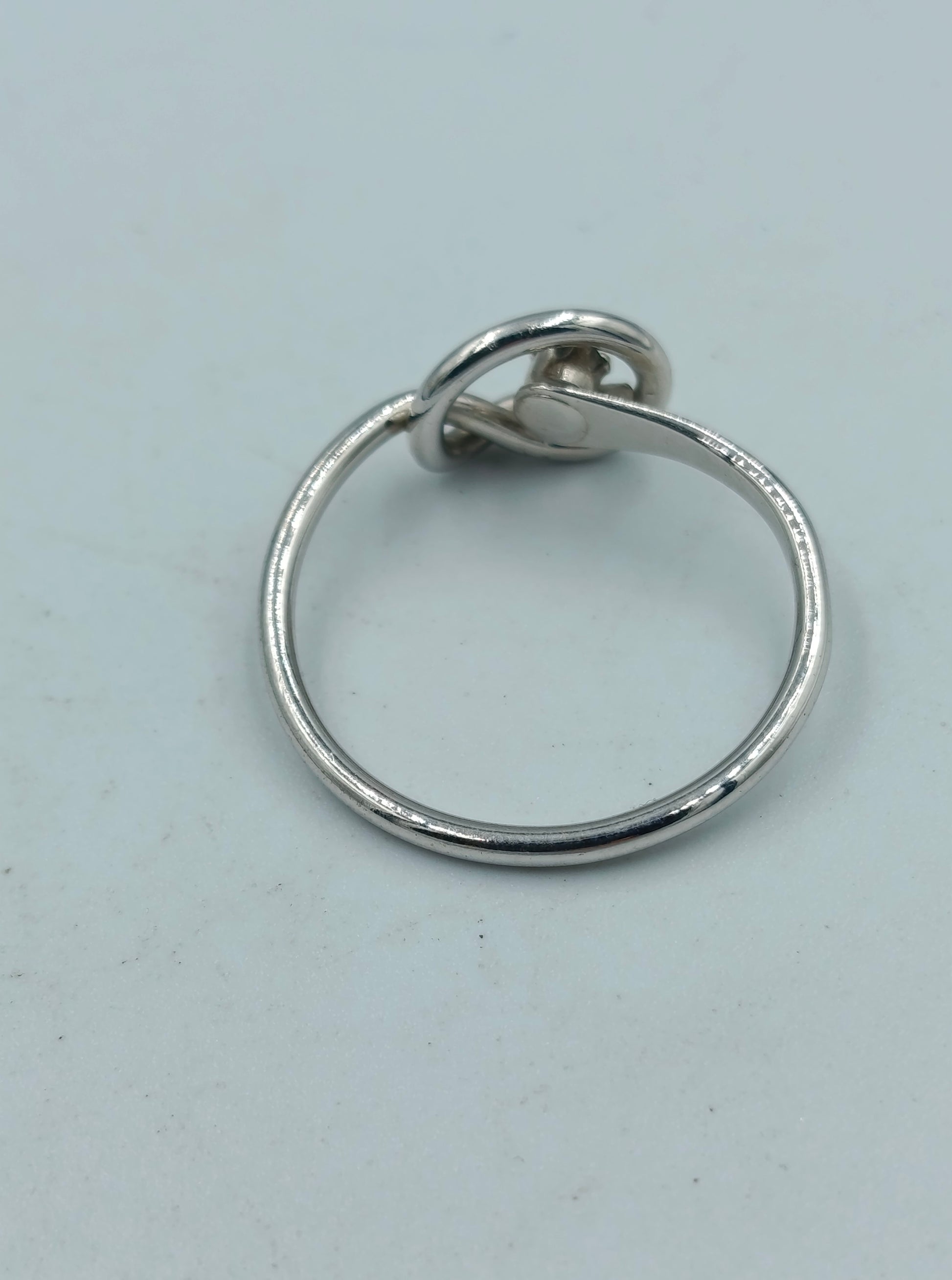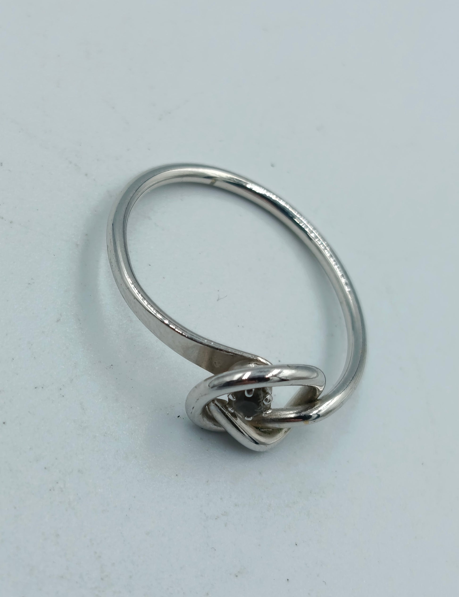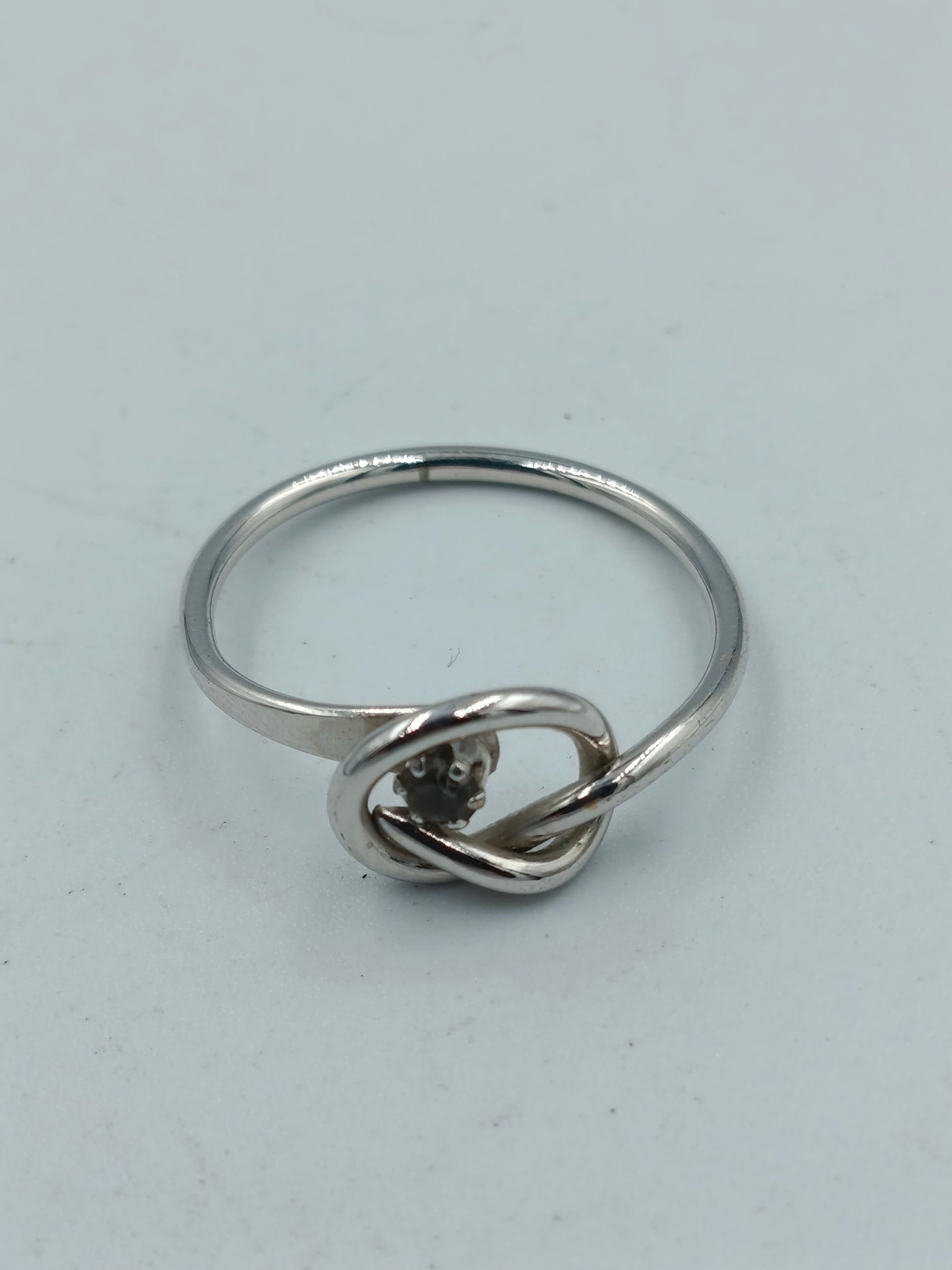 Eleganter versilberter Ring in filigraner Ausführung. Das Knoten-Design symbolisiert Verbundenheit und Ewigkeit und wird durch einen kleinen klaren Stein in der Mitte abgerundet. Ideal als stilvolles Accessoire oder symbolisches Geschenk.
