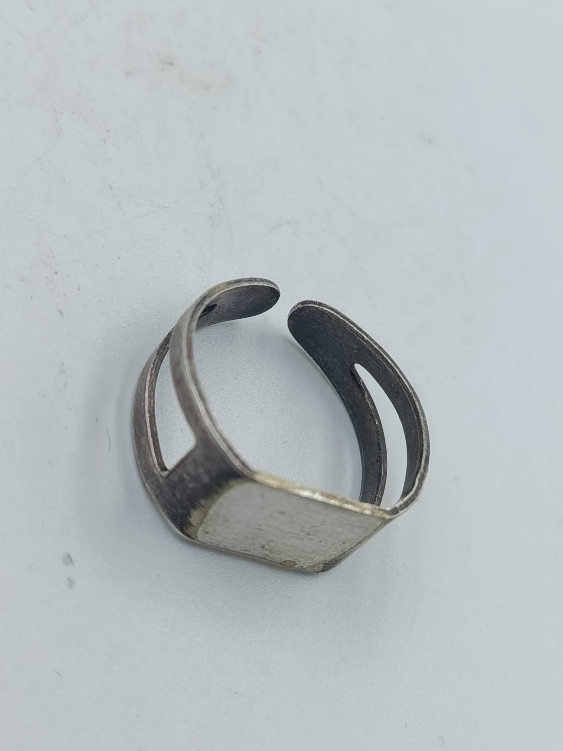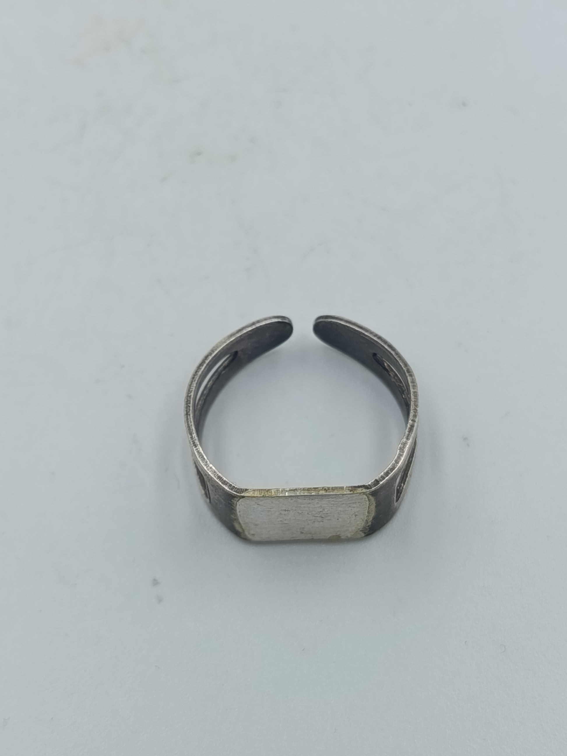 Schlichter, offener Ring aus 925er Silber im Vintage-Look. Durch die verstellbare Größe passt er sich leicht jedem Finger an. Die rechteckige Frontfläche bietet Platz für individuelles Gravieren oder lässt sich schlicht tragen. Perfekt als dezenter Unisex-Ring im Used-Design.