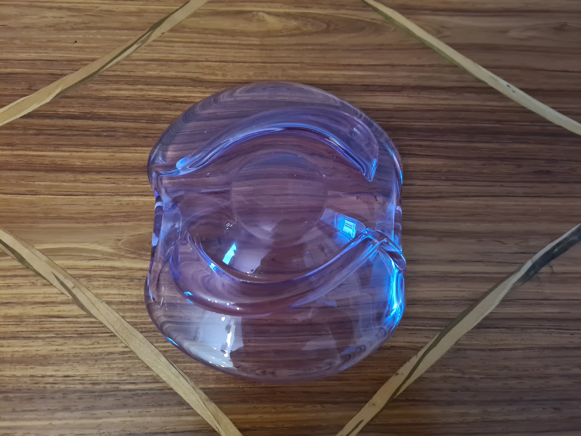 angeboten wird eine dekorative Schale bzw. ein Aschenbecher aus Alexandritglas – einem faszinierenden Glas, das je nach Lichteinfall seine Farbe zwischen zartem Blau und Violett verändert. Das formschöne Objekt stammt aus der Vintage-Zeit und besticht durch seine klare Linienführung und das besondere Farbspiel.