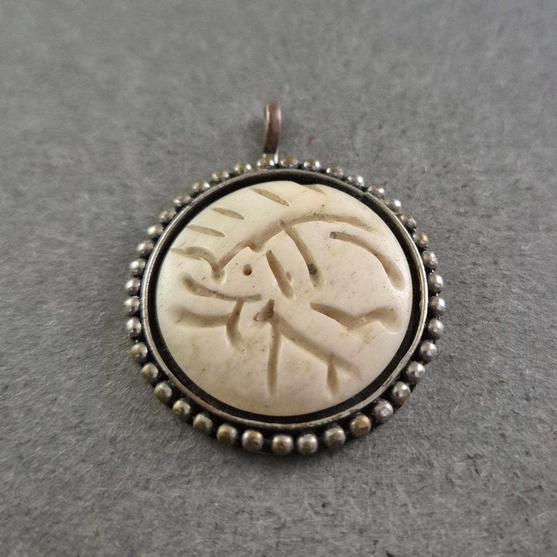 Vintage Anhänger mit Elefantenmotiv – Ethno-Stil mit Perlrand