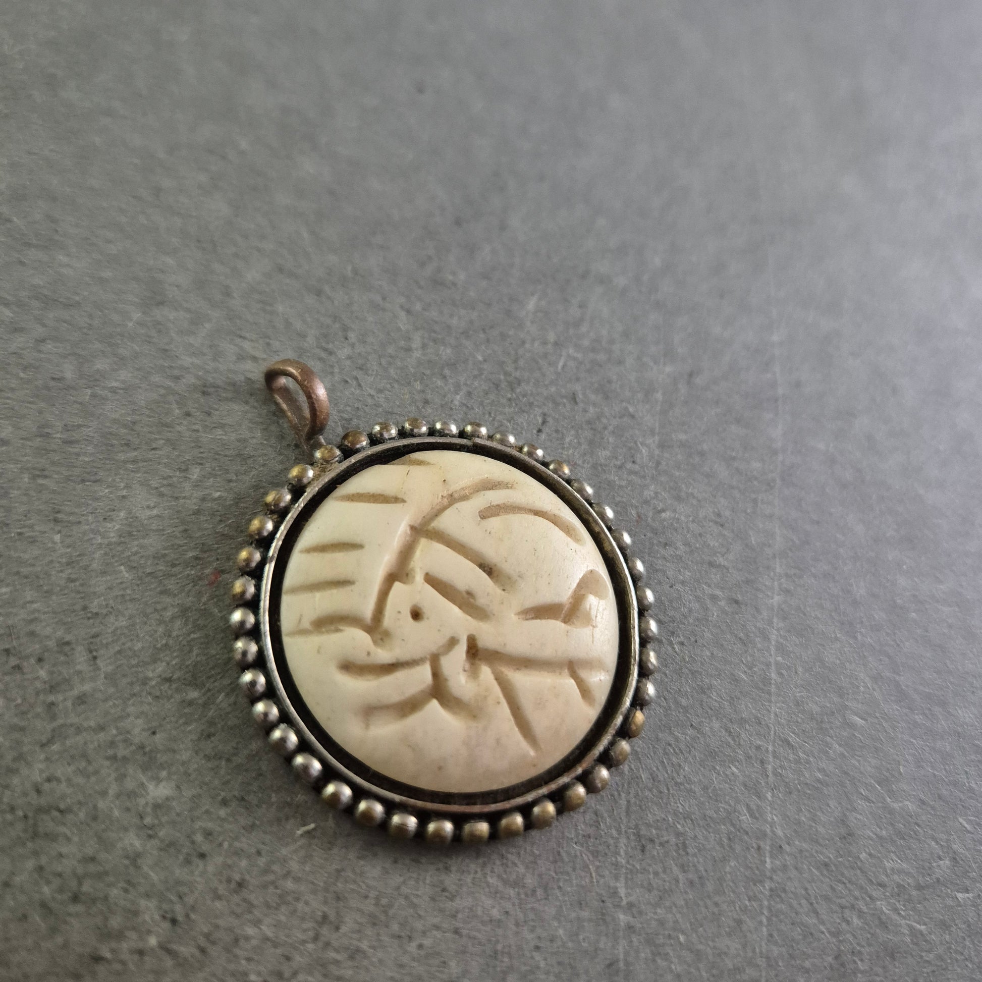 • Material: Naturmaterial (vermutlich Knochen oder Harz) & Metall