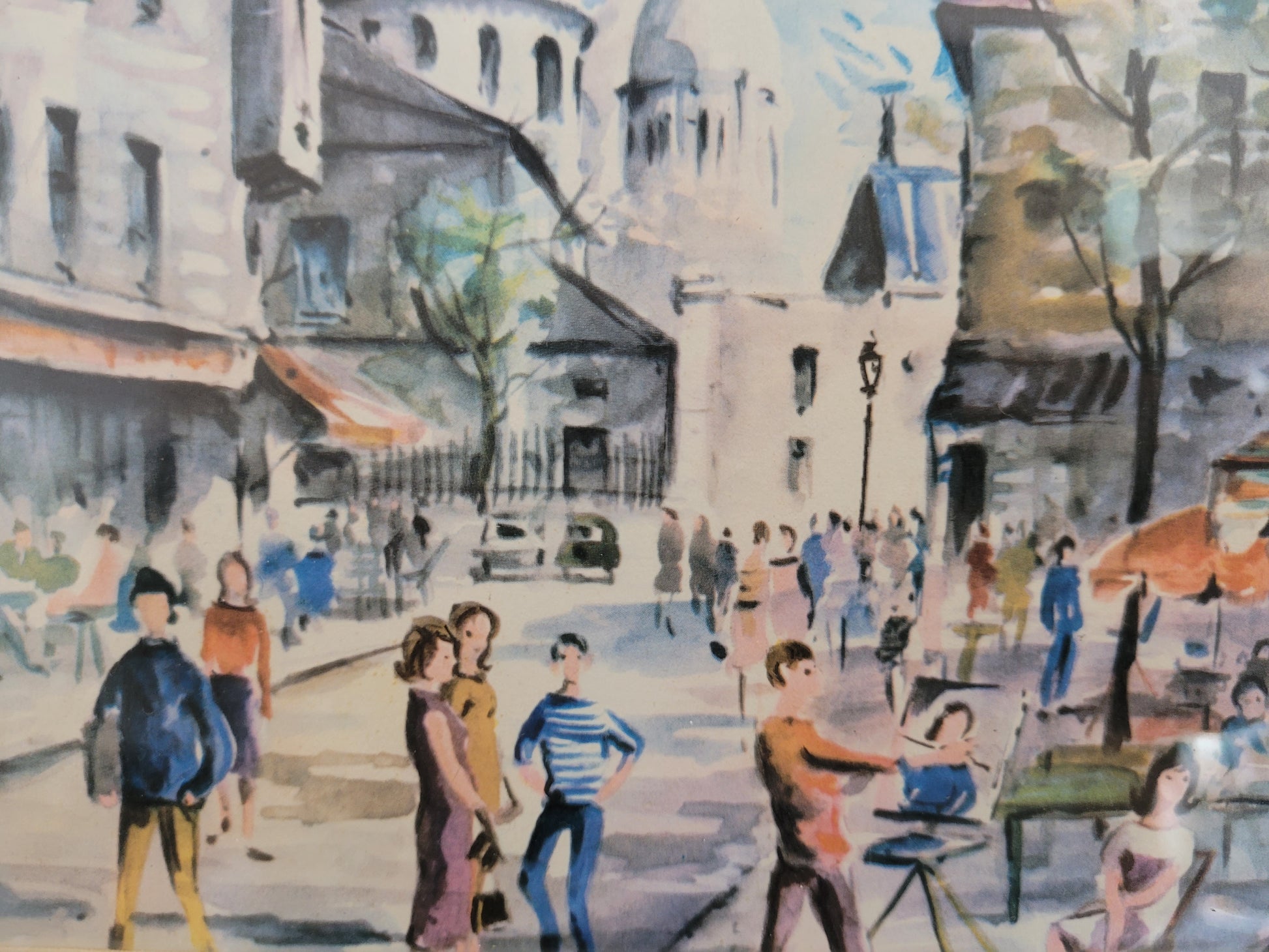 Dieser Vintage-Kunstdruck bietet einen charmanten Blick auf das Stadtleben in Paris der 1960er Jahre. Die lebendigen Farben und der nostalgische Stil fangen perfekt den Charakter und die Atmosphäre dieser faszinierenden Ära ein, als Paris noch ein Zentrum der künstlerischen und kulturellen Bewegung war.