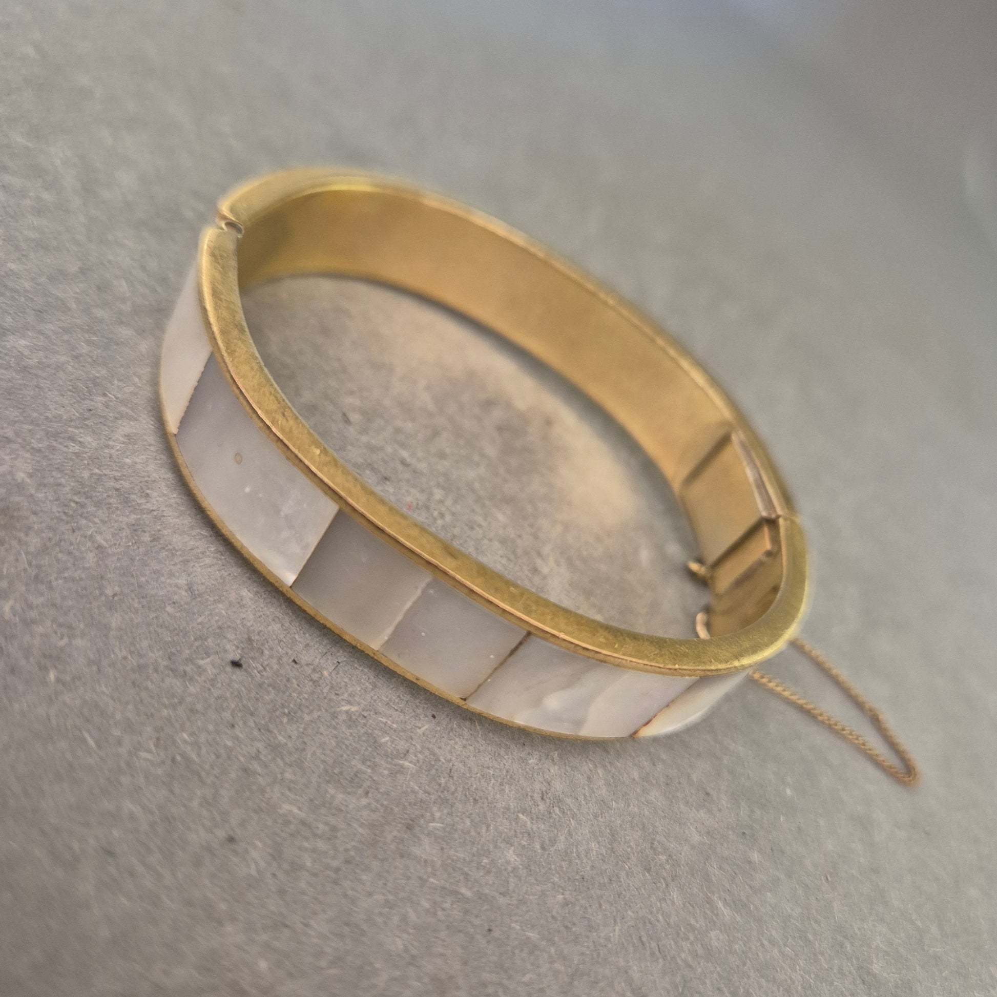 Vintage Armreif mit Perlmutt-Einlagen und Sicherheitskette