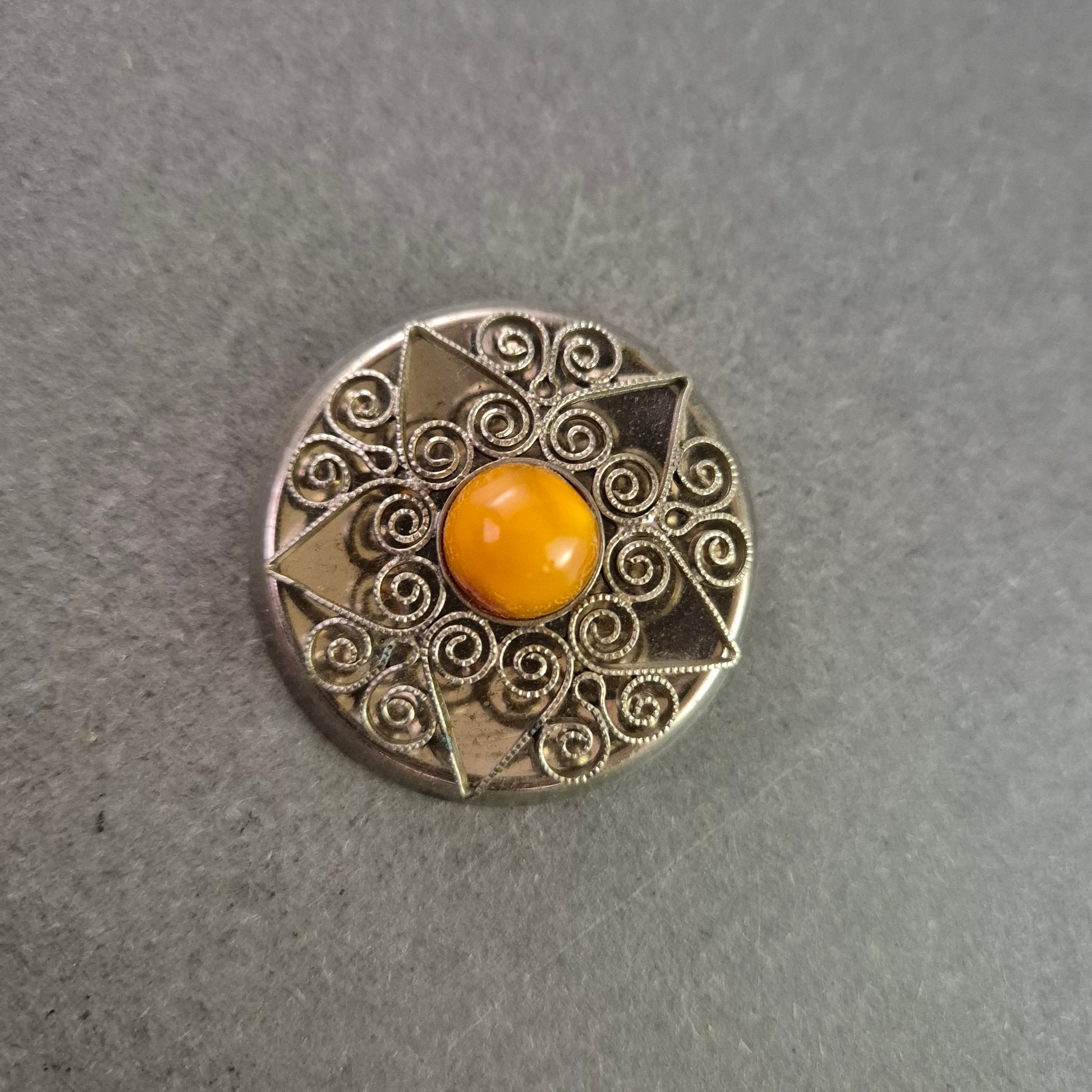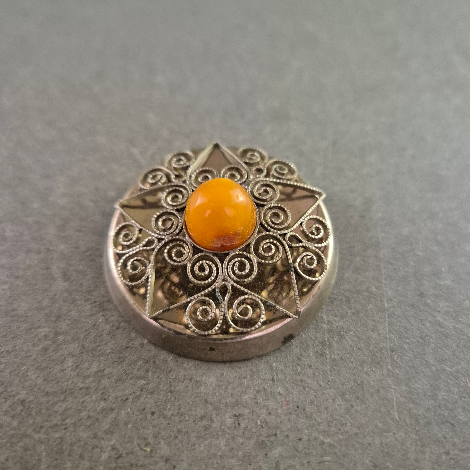 Vintage Brosche mit Bernsteinimitat und filigranem Silberdekor