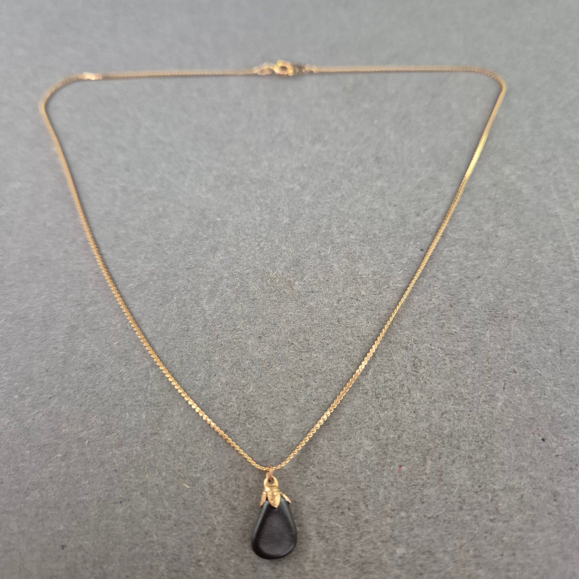 Vintage Kette mit schwarzem Tropfen Anhänger – Zeitlos Elegant