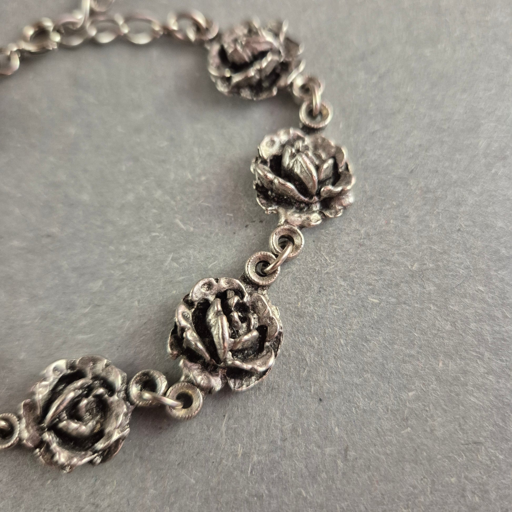 Vintage Silber-Armband mit Rosen – Romantisches Design im Antik-Look
