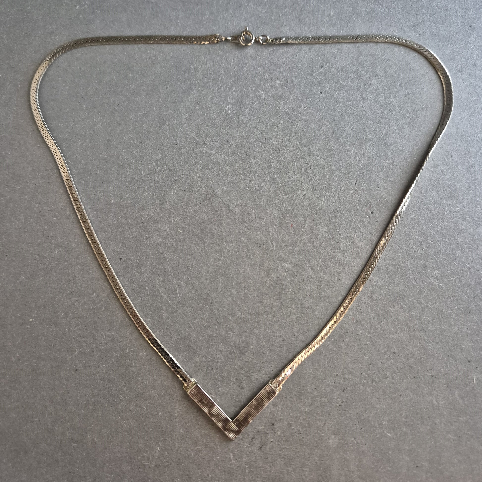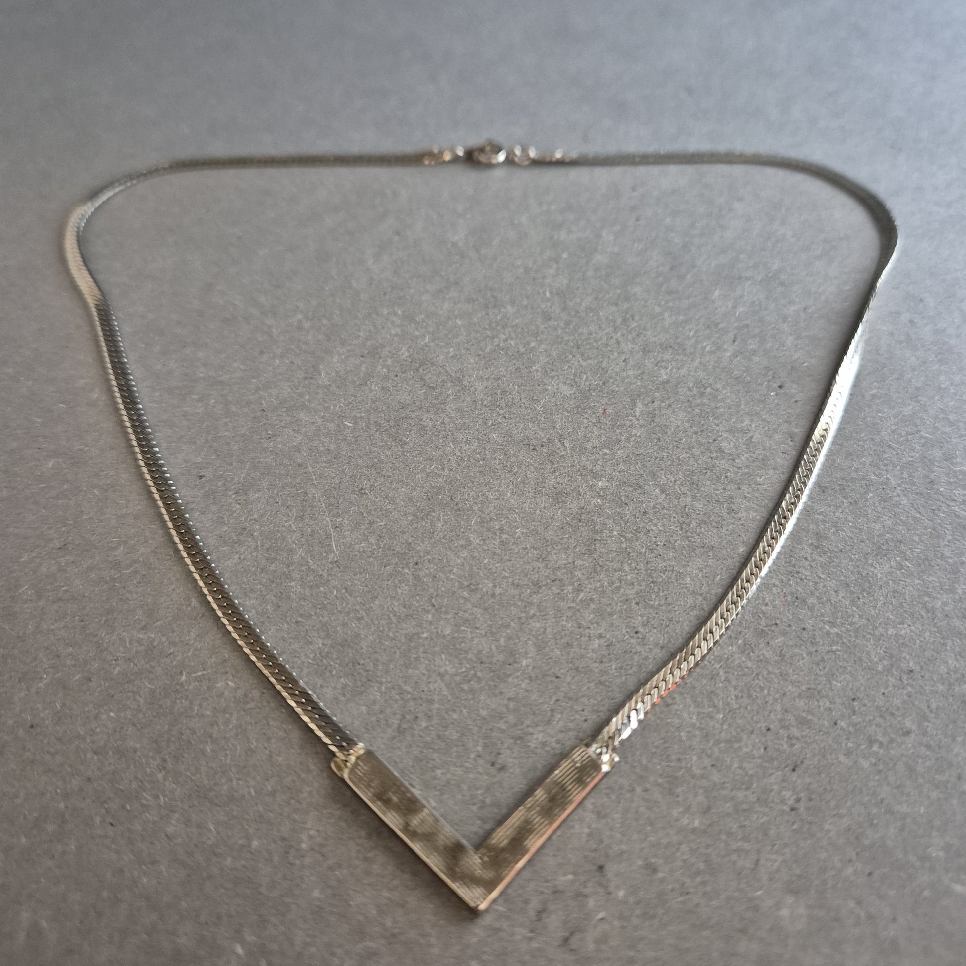 Vintage Silberkette mit V-förmigem Anhänger – Elegant und Geometrisch