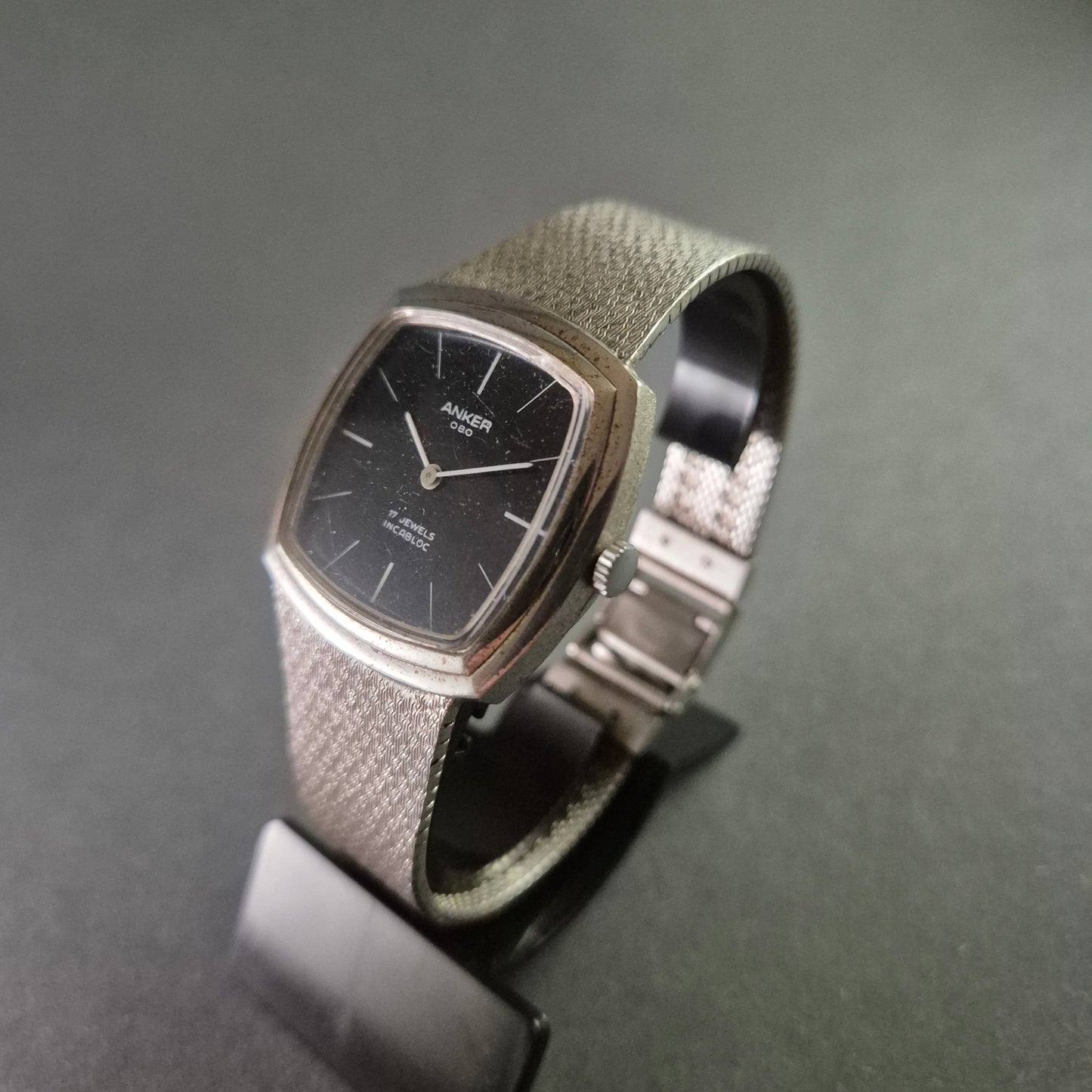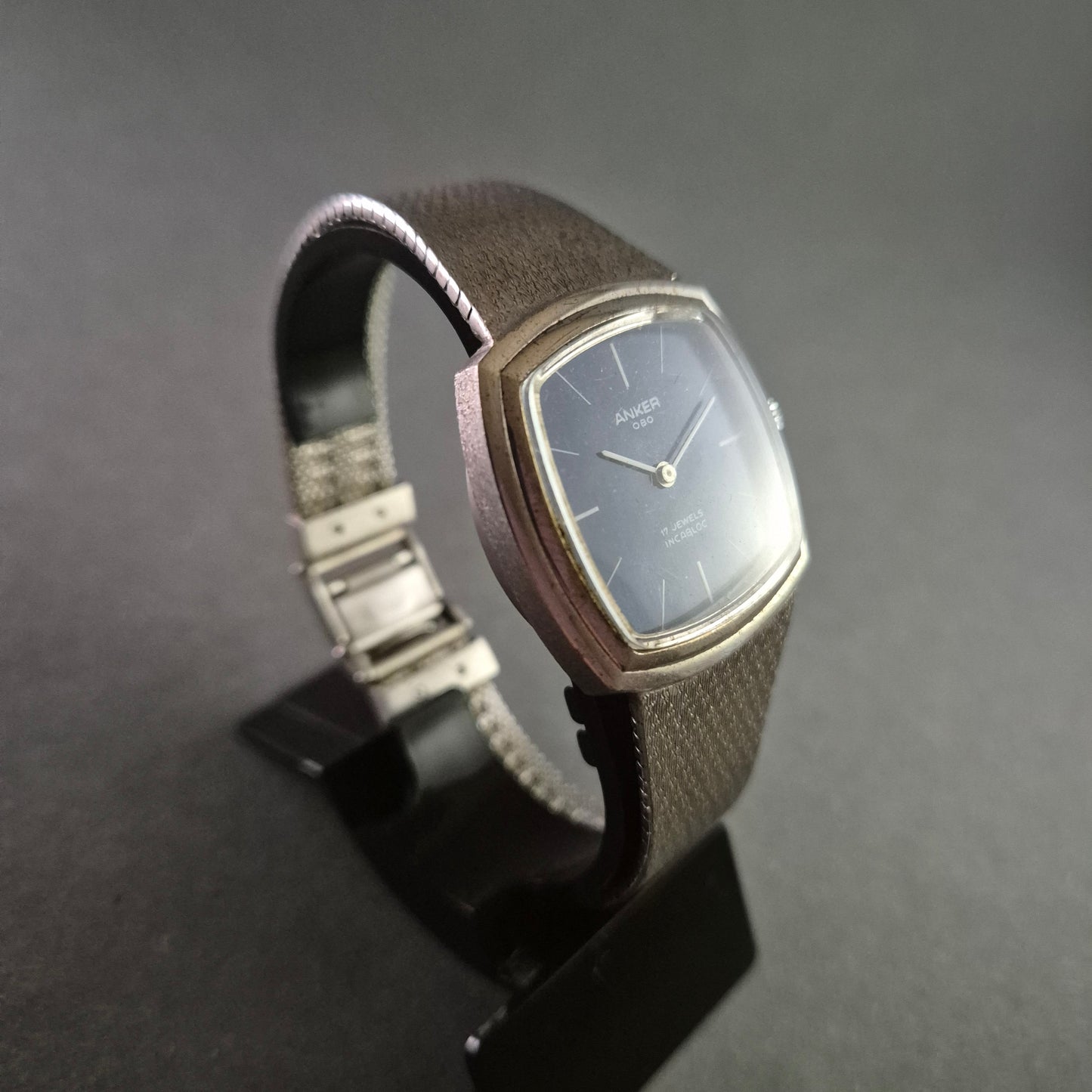 Diese Anker Damenarmbanduhr besticht durch ihr schlichtes und elegantes Design. Das rechteckige Gehäuse und das hochwertige, fein gearbeitete Edelstahlarmband verleihen der Uhr einen zeitlosen Stil. Das tiefblaue Zifferblatt mit minimalistischen Indizes und die mechanische Präzision des 17-Jewels-Incabloc-Werks machen diese Uhr zu einem besonderen Accessoire für jeden Anlass.