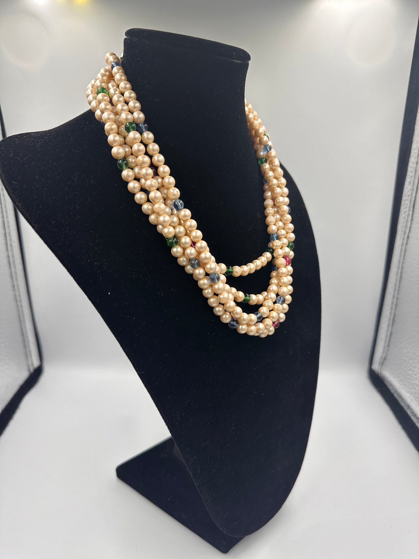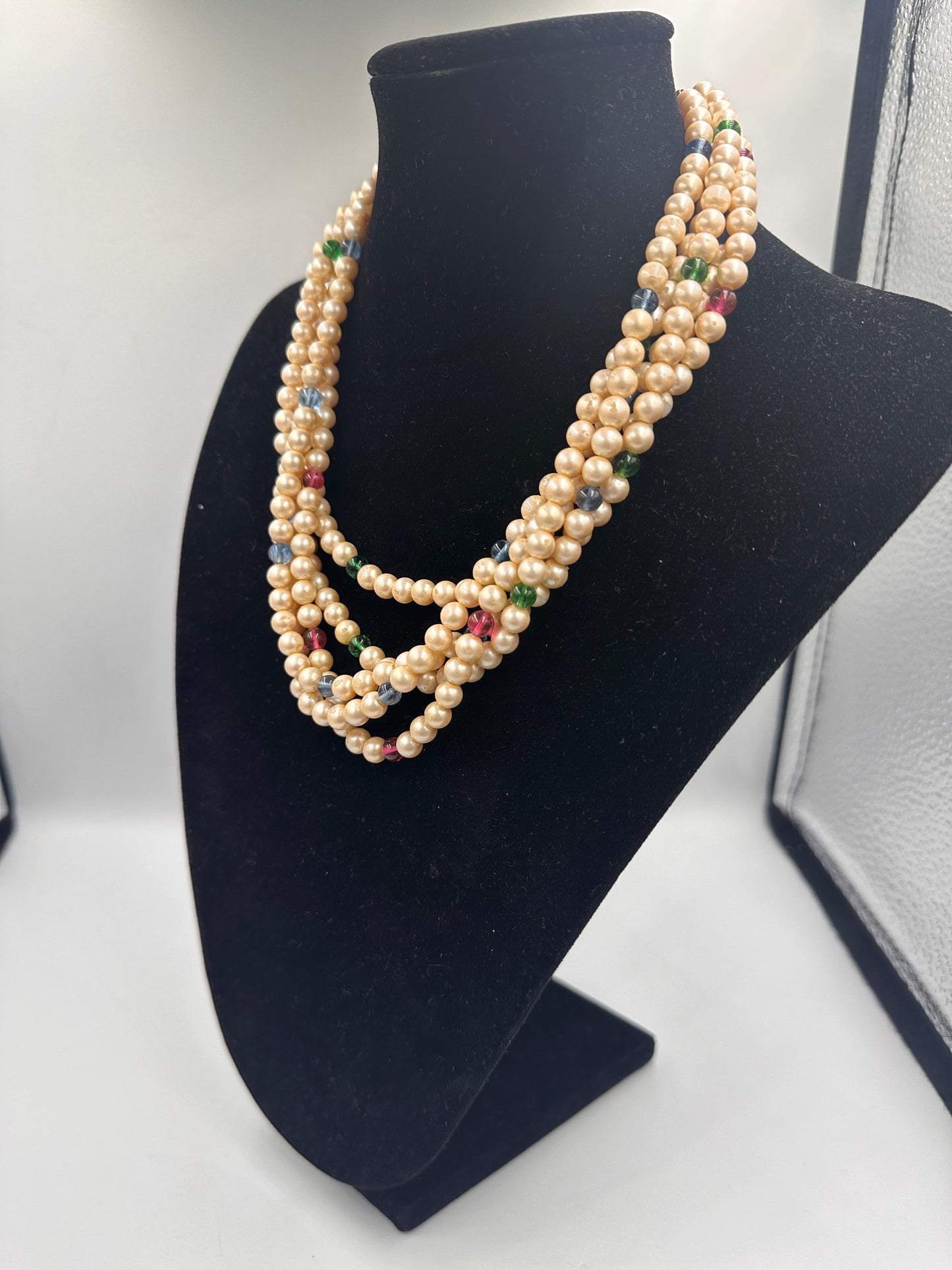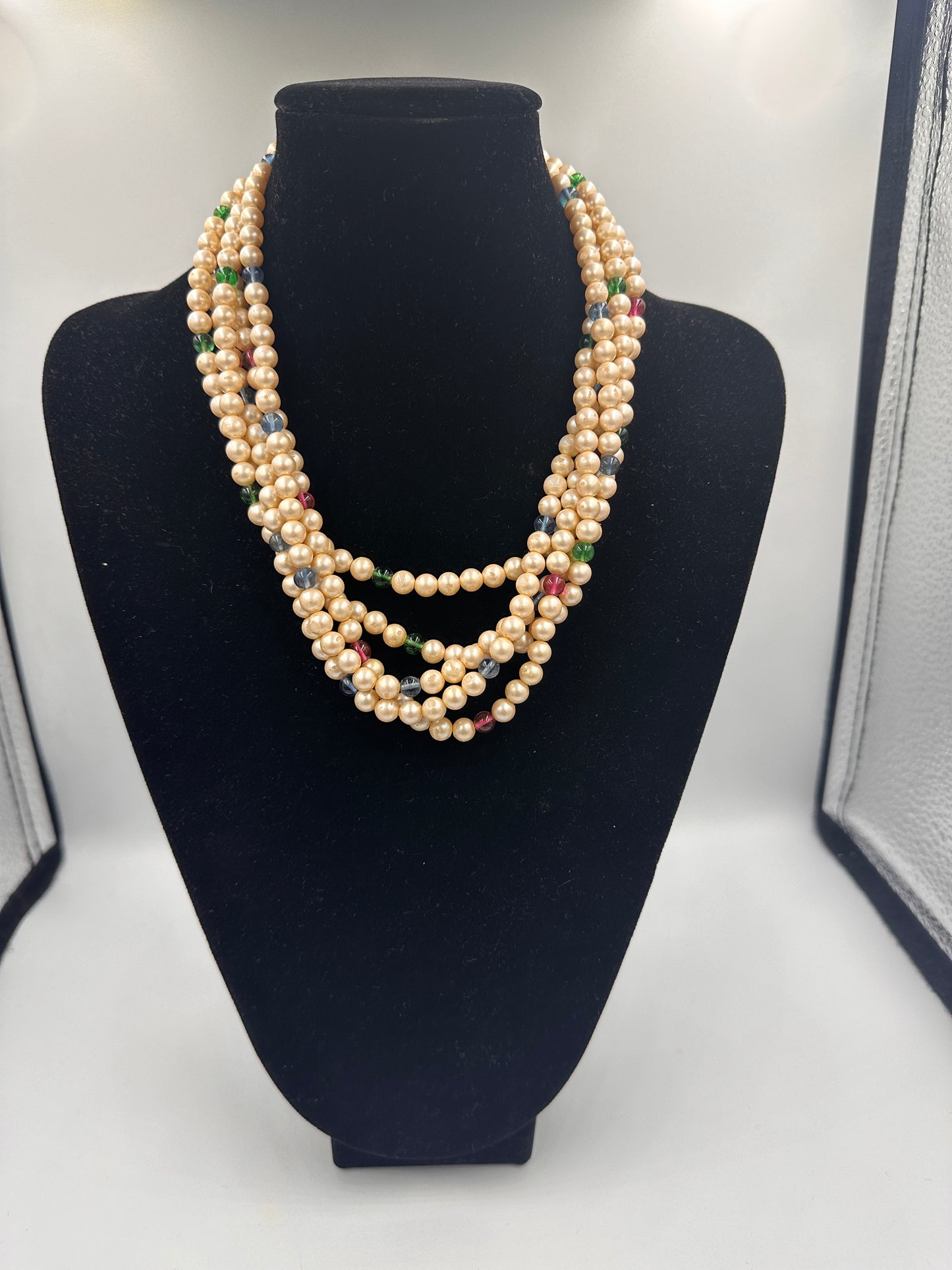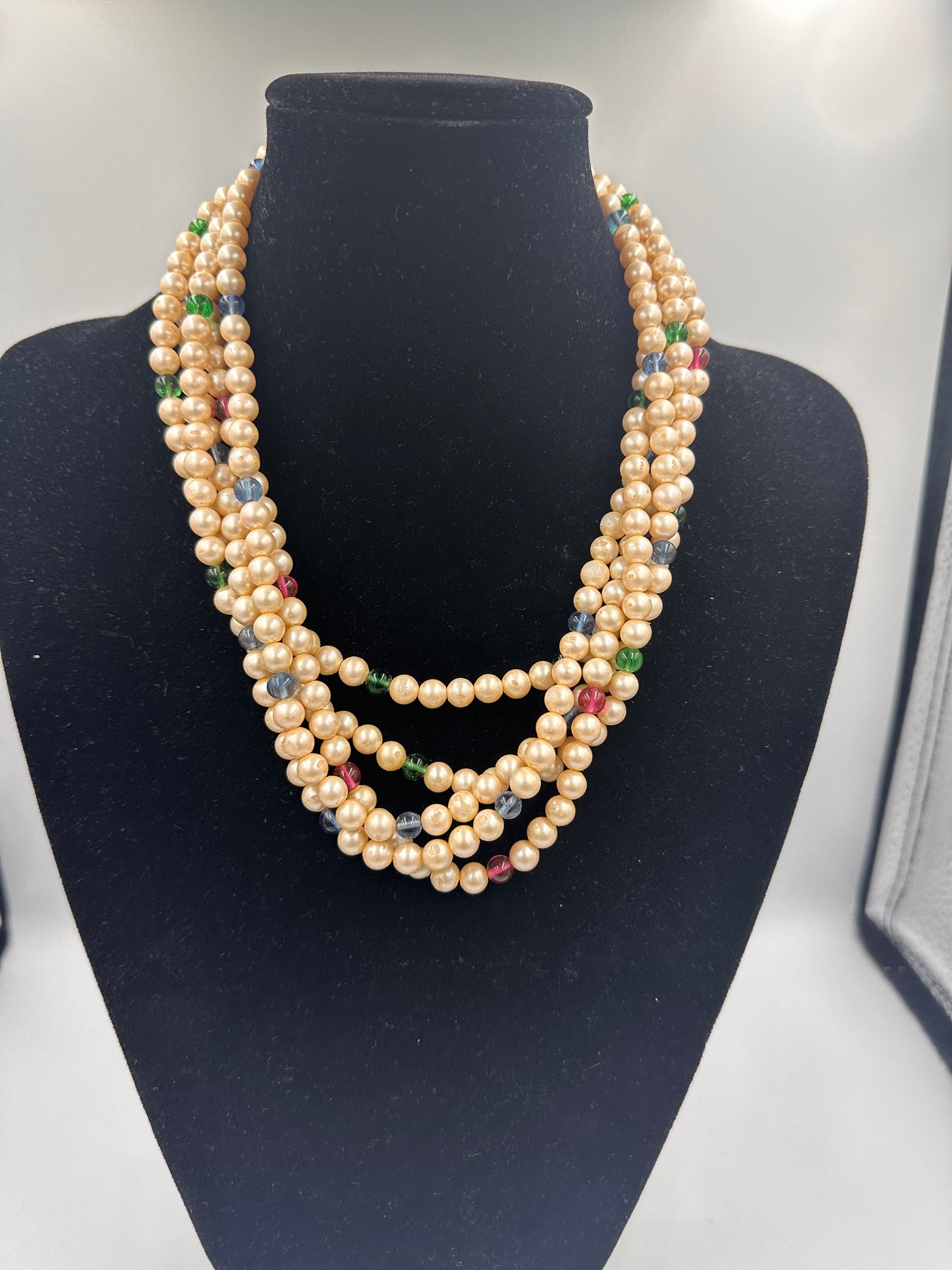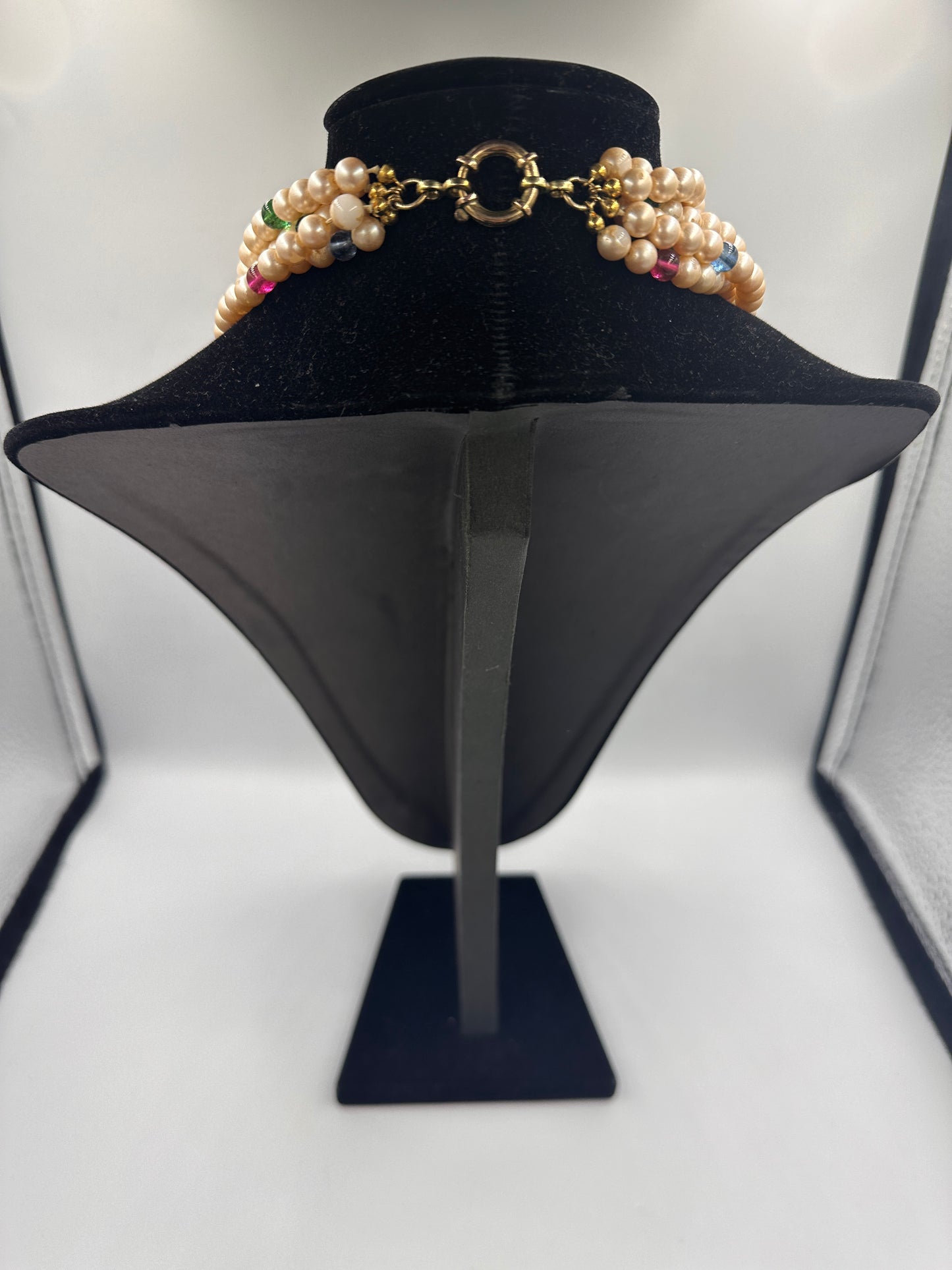 5-Strang Perlenkette mit mehreren Farbtönen und goldfarbenem Verschluss