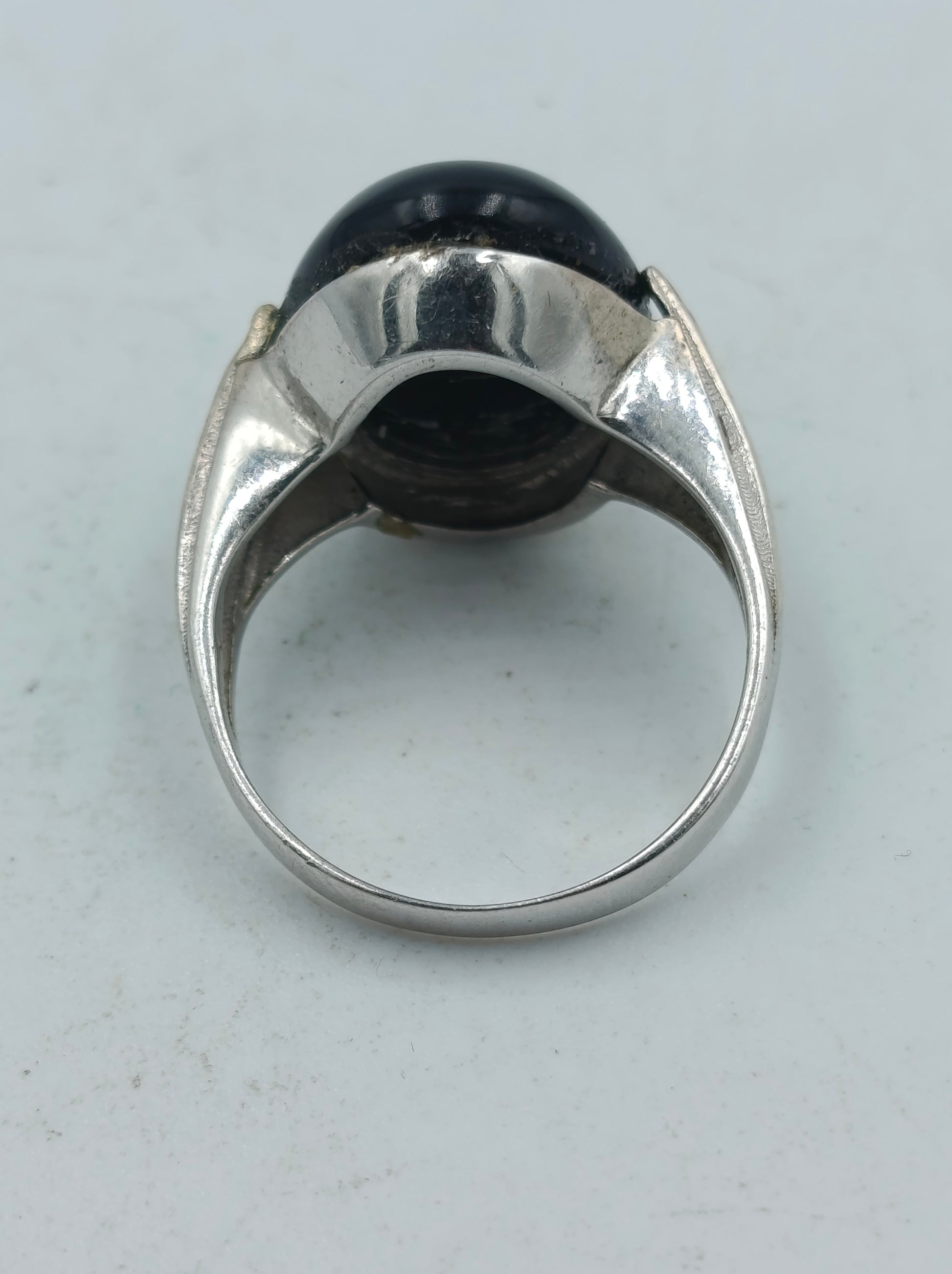 925 Silber Damenring mit Schwarzem Onyx Oval Gr54 Klassisch Elegant