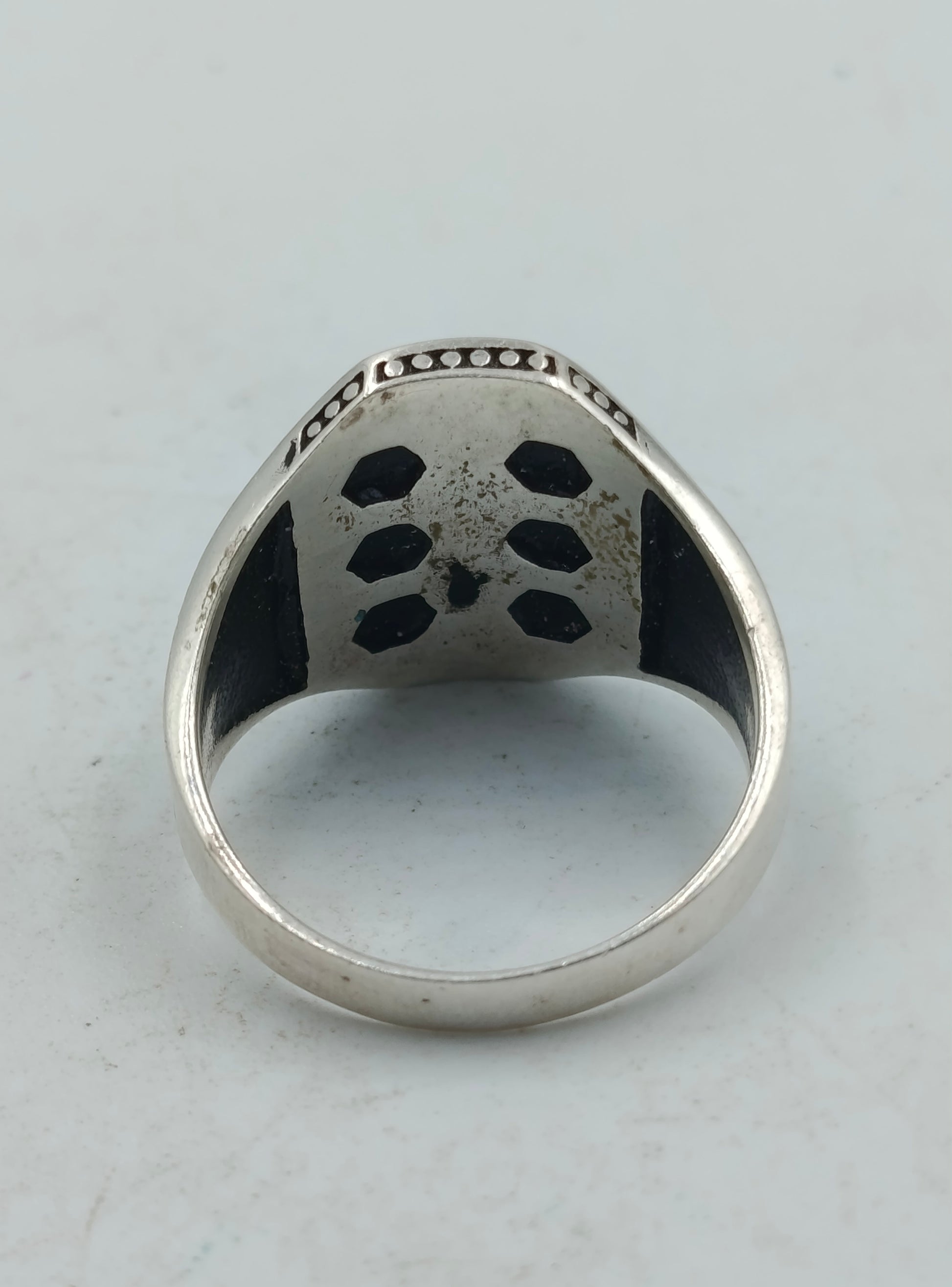 925 Silber Herrenring mit Tughra Gravur Schwarzes Design Gr66