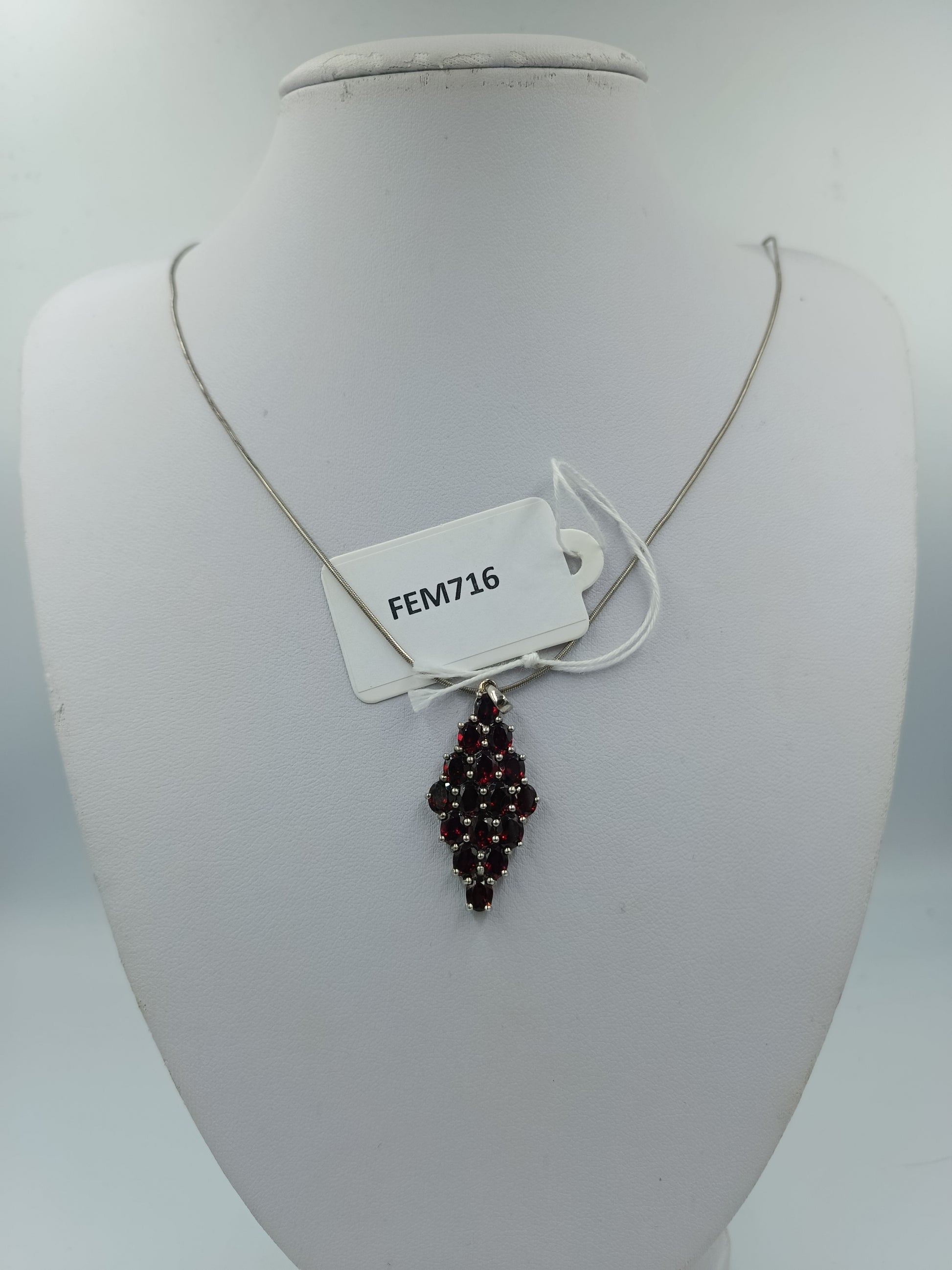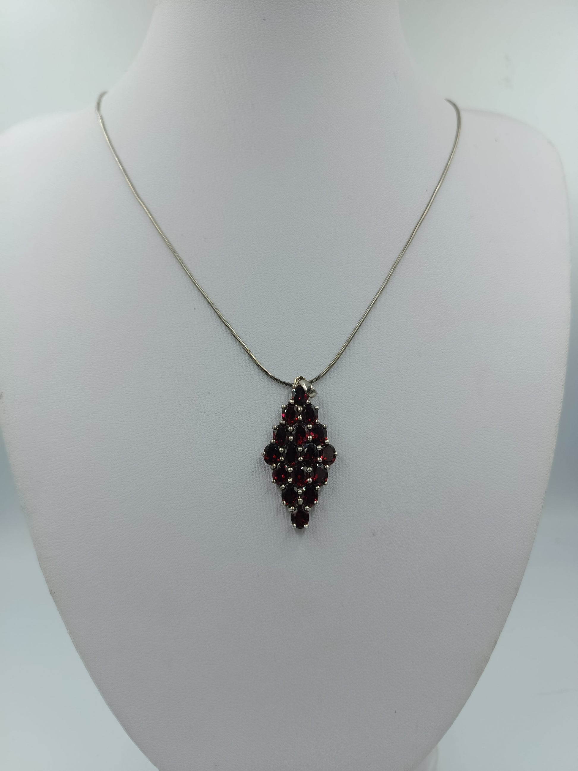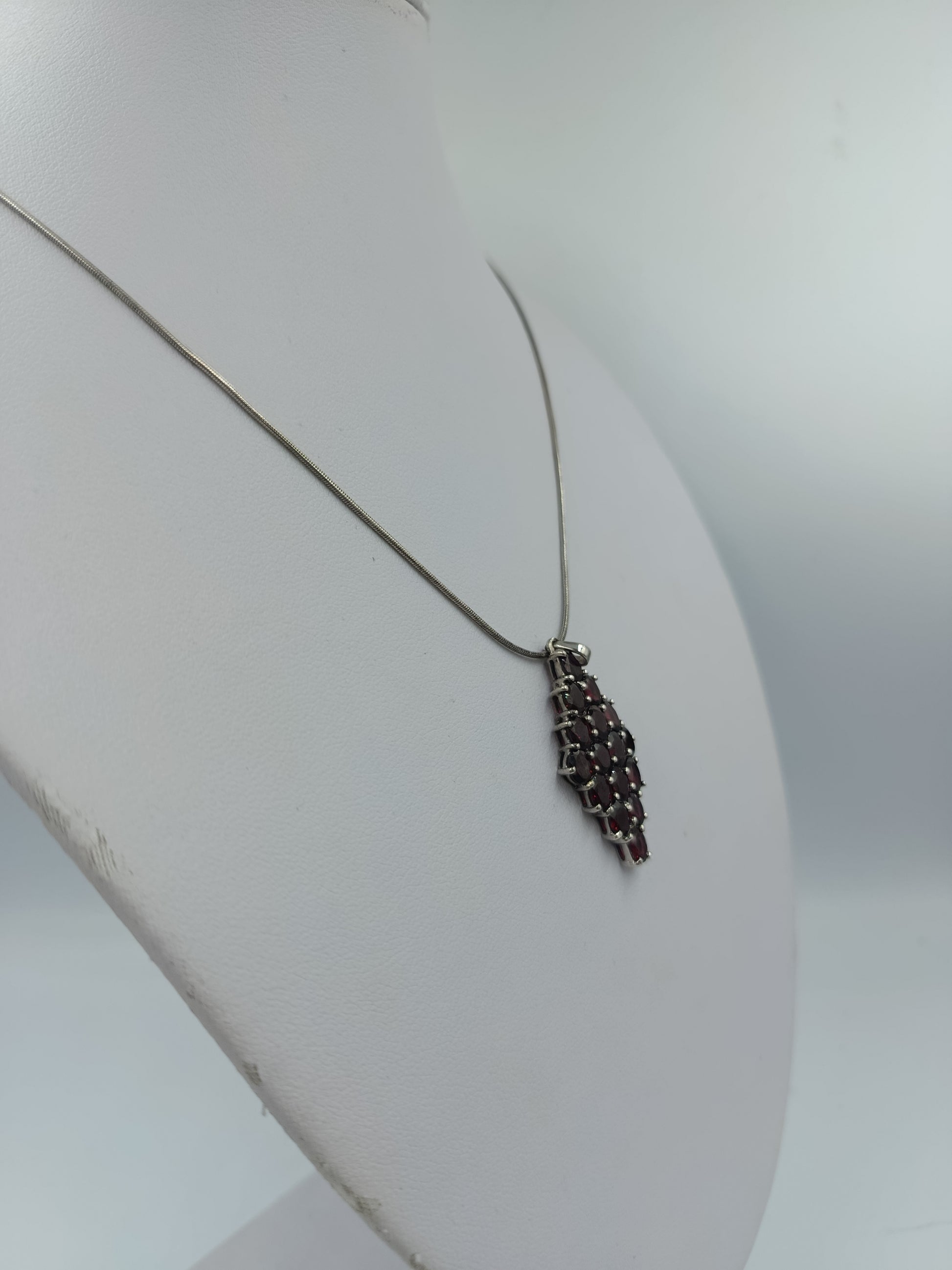 Elegante 925 Silber Halskette mit auffälligem Anhänger aus roten Steinen in einem klassischen, leicht floralen Design. Die Kette ist aus feinem Silber gefertigt und trägt einen Anhänger, der durch seine tiefrote Farbgebung besonders edel wirkt. Ideal für festliche Anlässe oder als stilvolles Alltagsaccessoire.