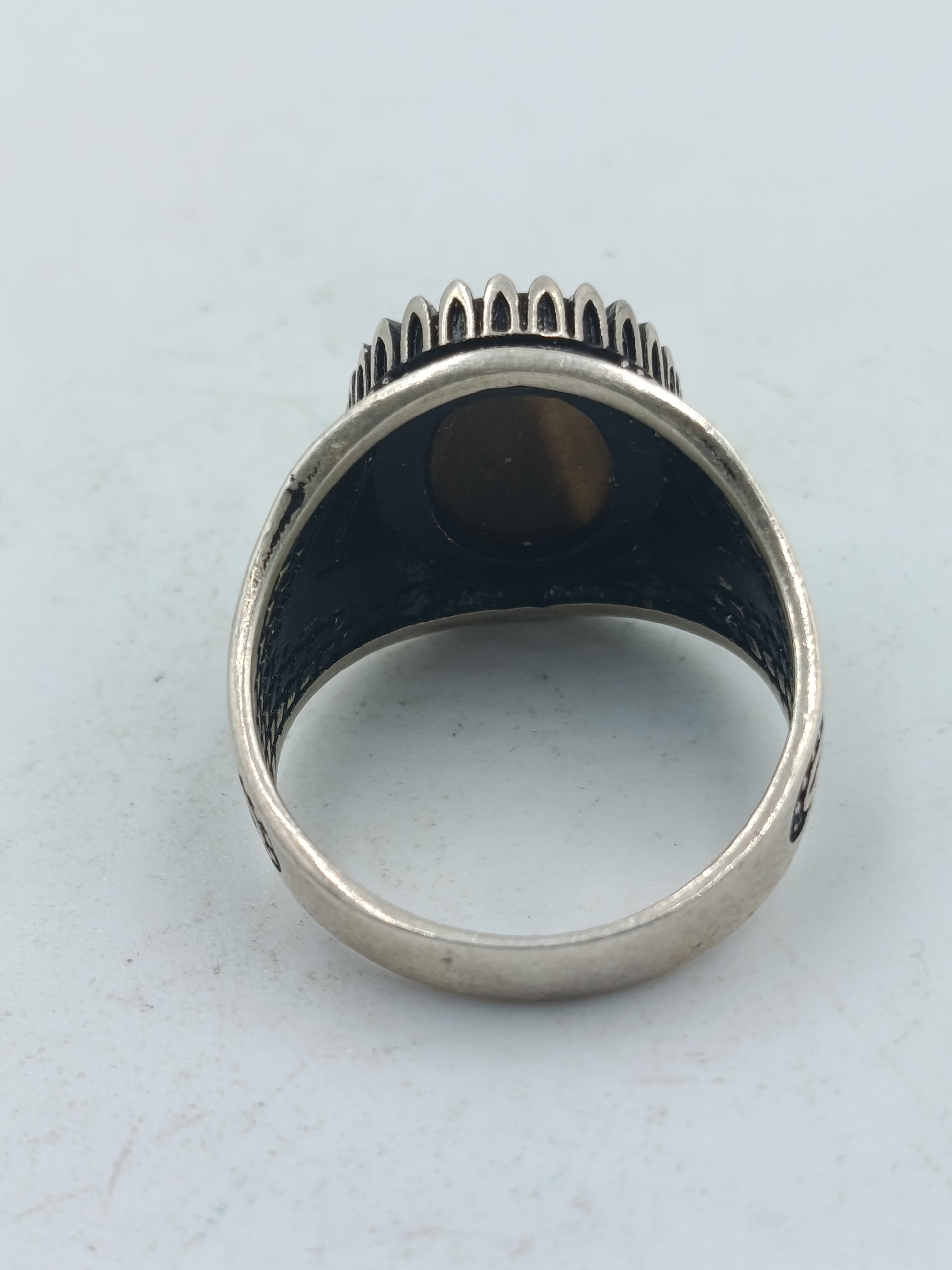 925 Silber Ring Tigerauge Orientalisch Vintage Verziert Gr 65