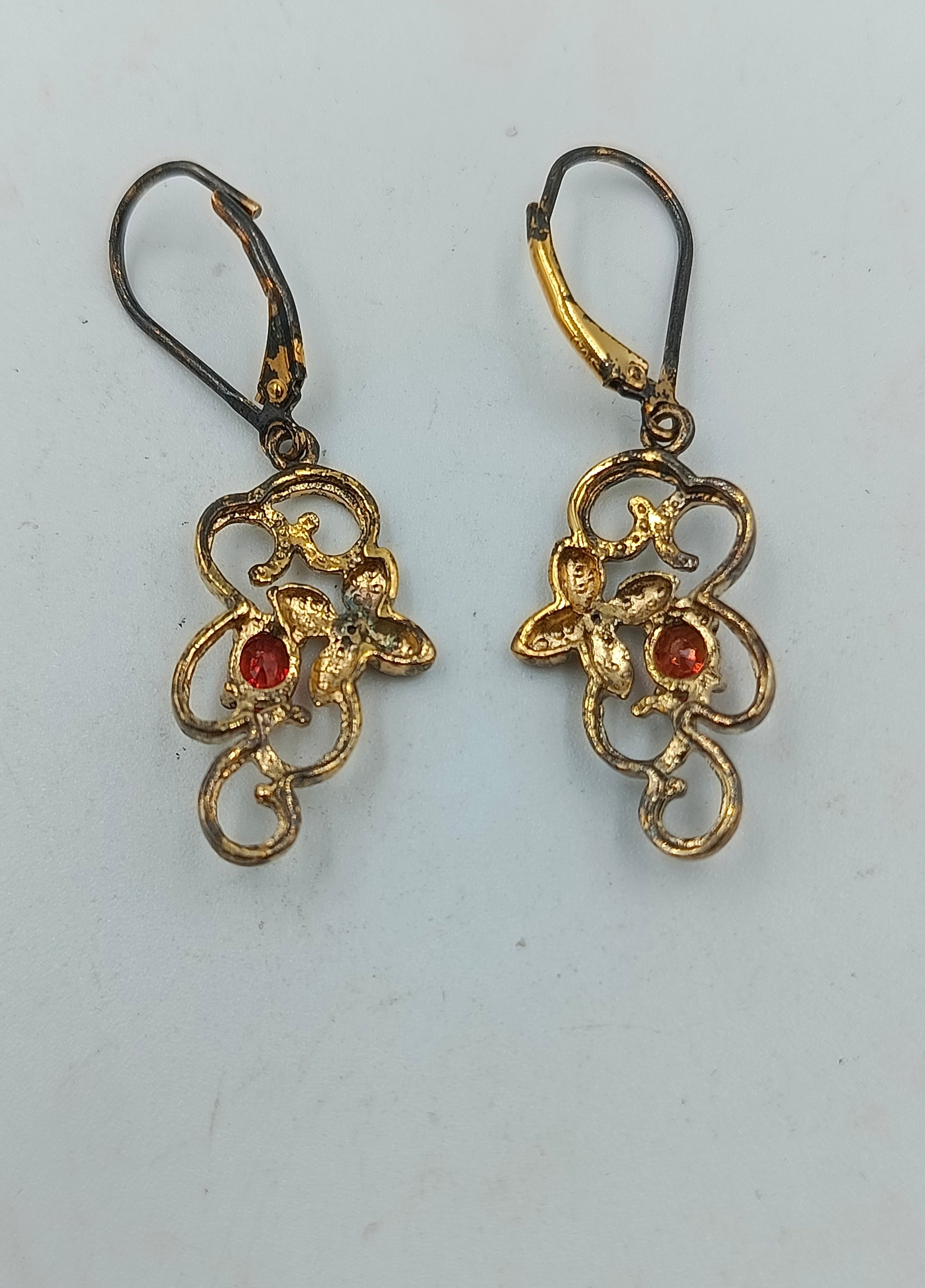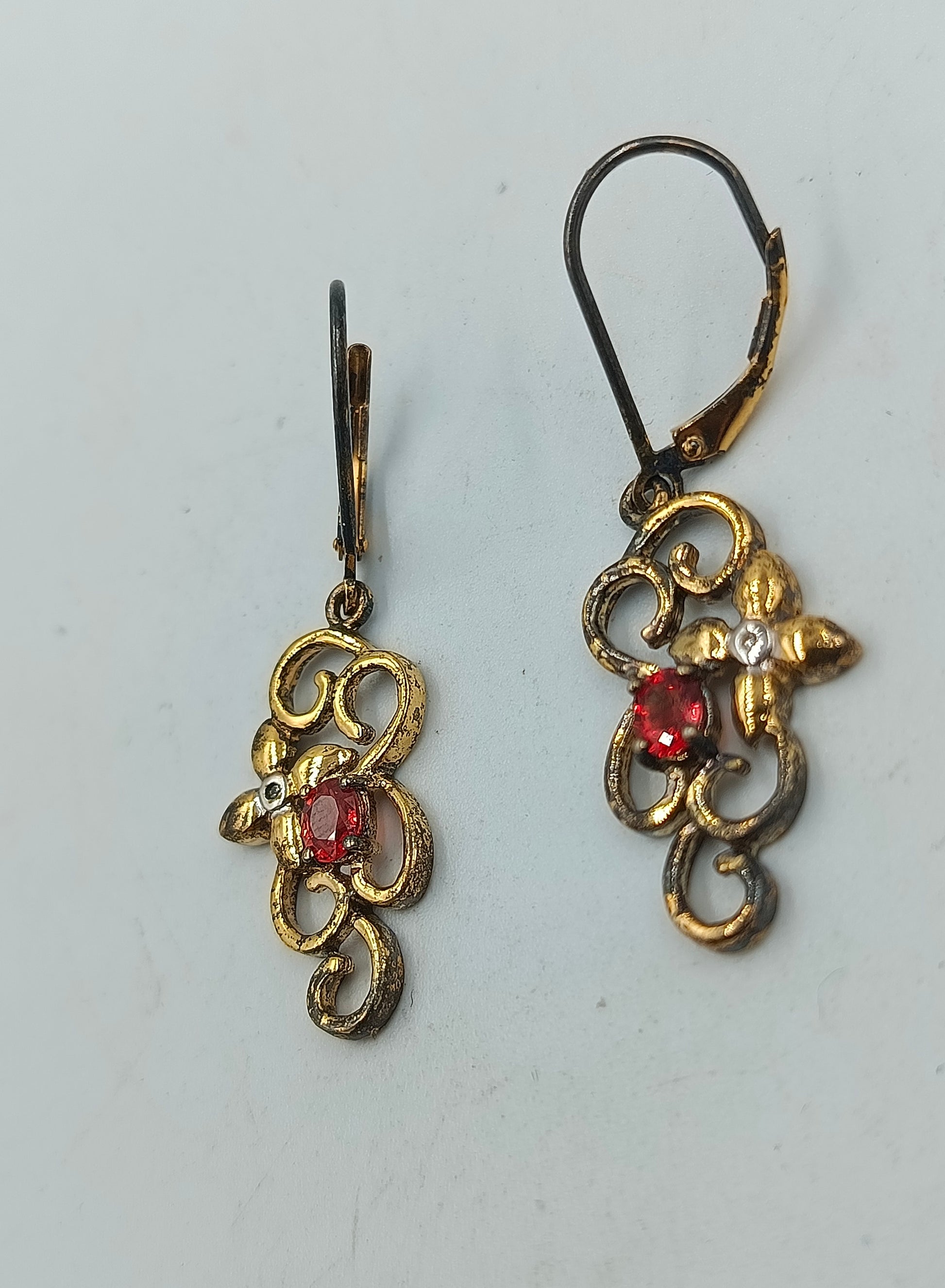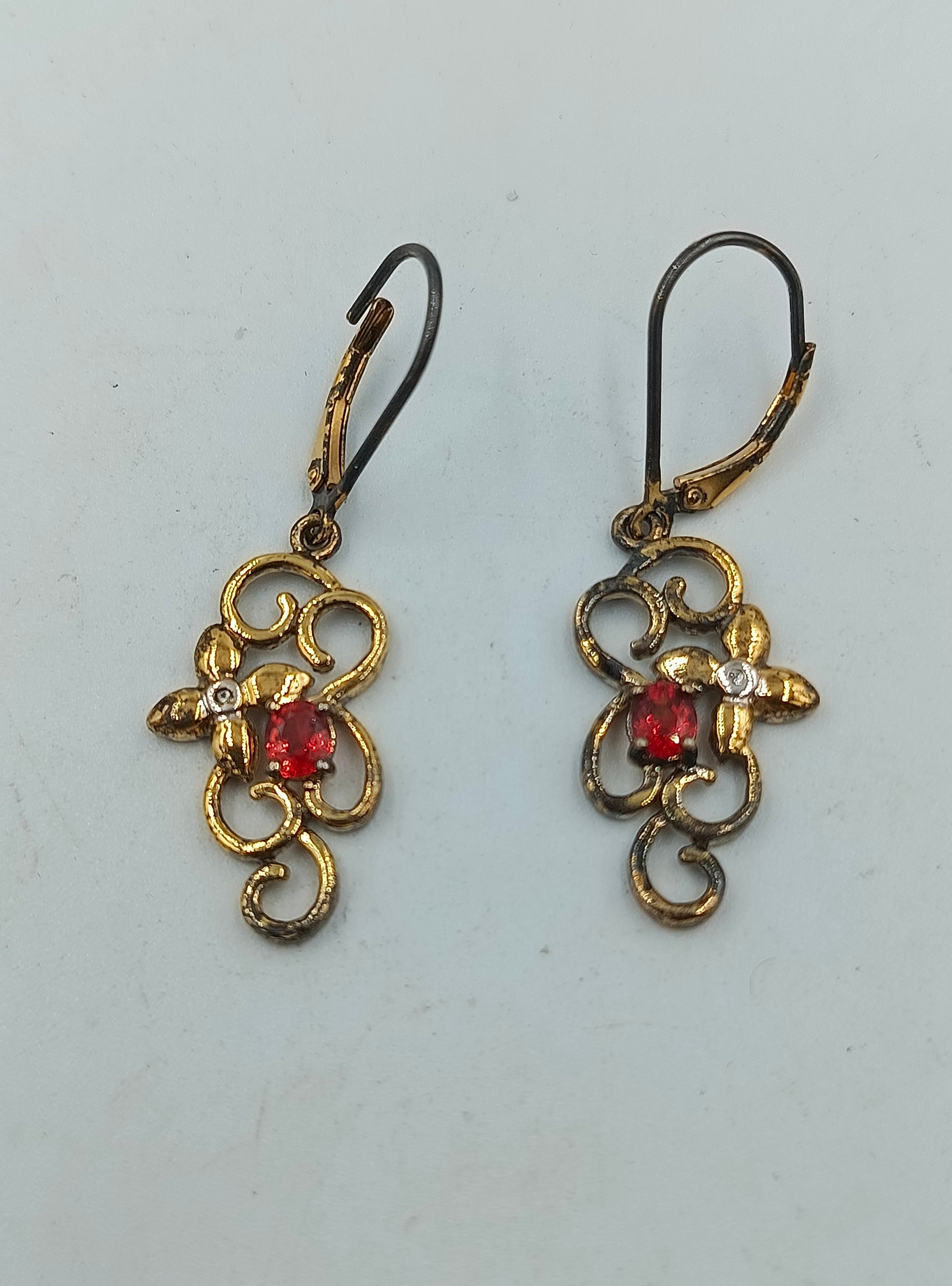 925 Silber vergoldete Ohrringe mit rotem Stein Vintage Stil