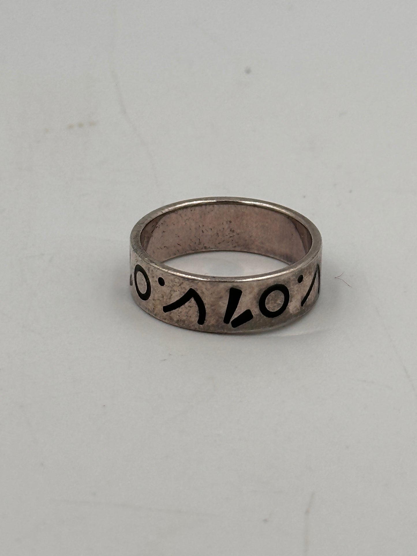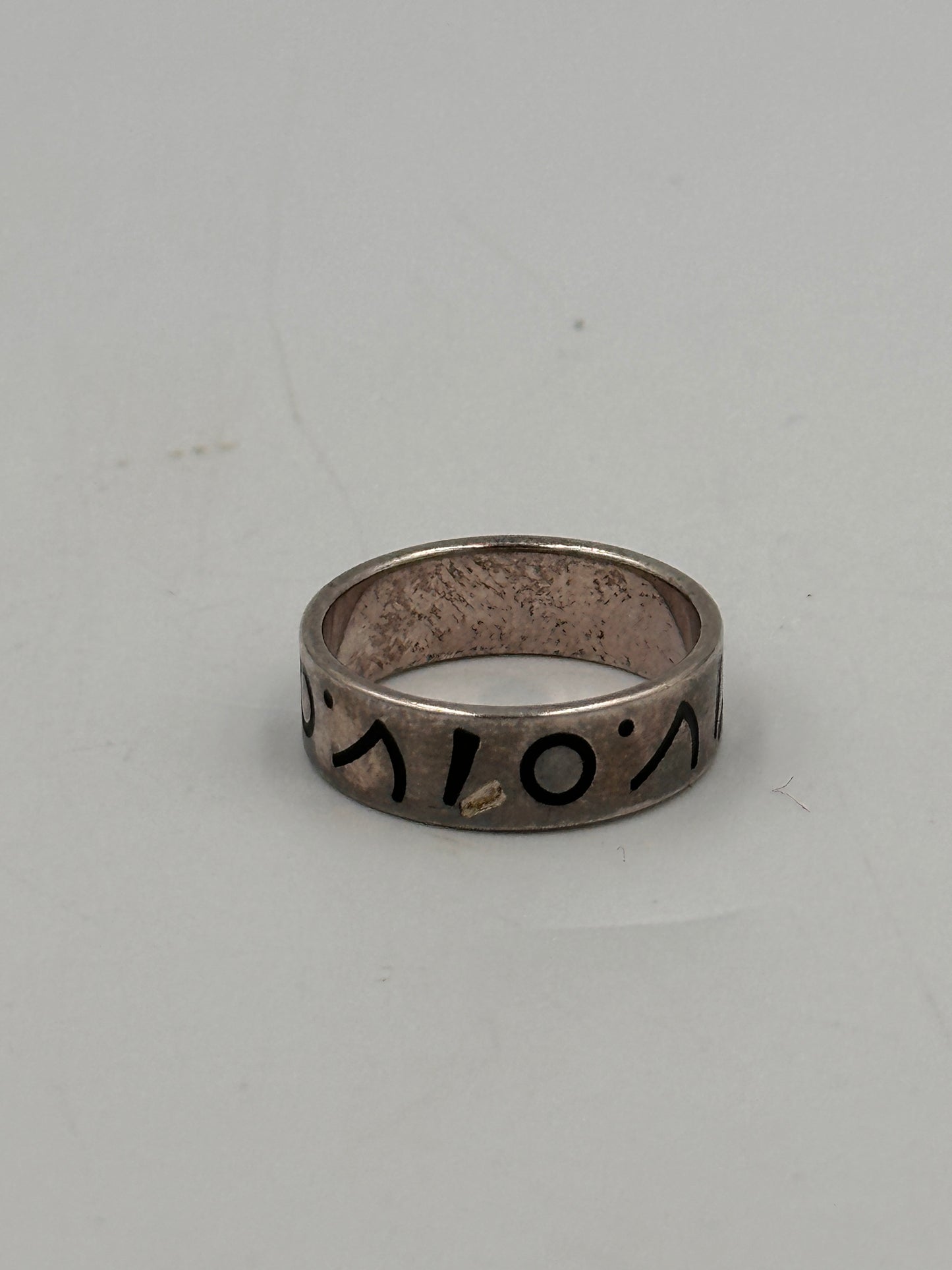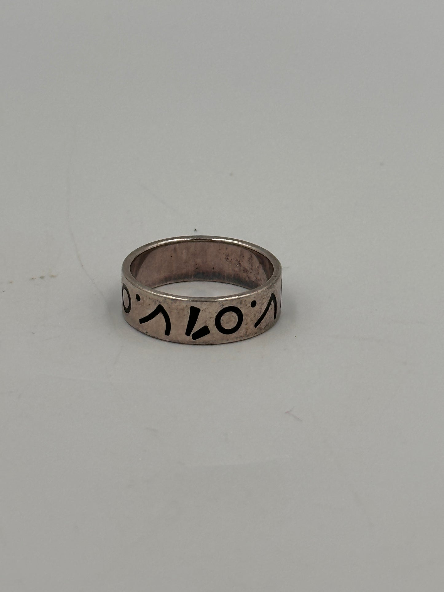 Entdecken Sie den einzigartigen Charme dieses Vintage Rings aus 925 Silber, der durch seine abstrakten Symbole besticht. Mit einem Durchmesser von 12 mm und einem Gewicht von nur 4 Gramm liegt der Ring angenehm am Finger und eignet sich hervorragend für Sammler und Liebhaber außergewöhnlicher Schmuckstücke. Der Ring ist in Größe 52 erhältlich und befindet sich in gebrauchtem Zustand, was ihm zusätzlichen Charakter verleiht.