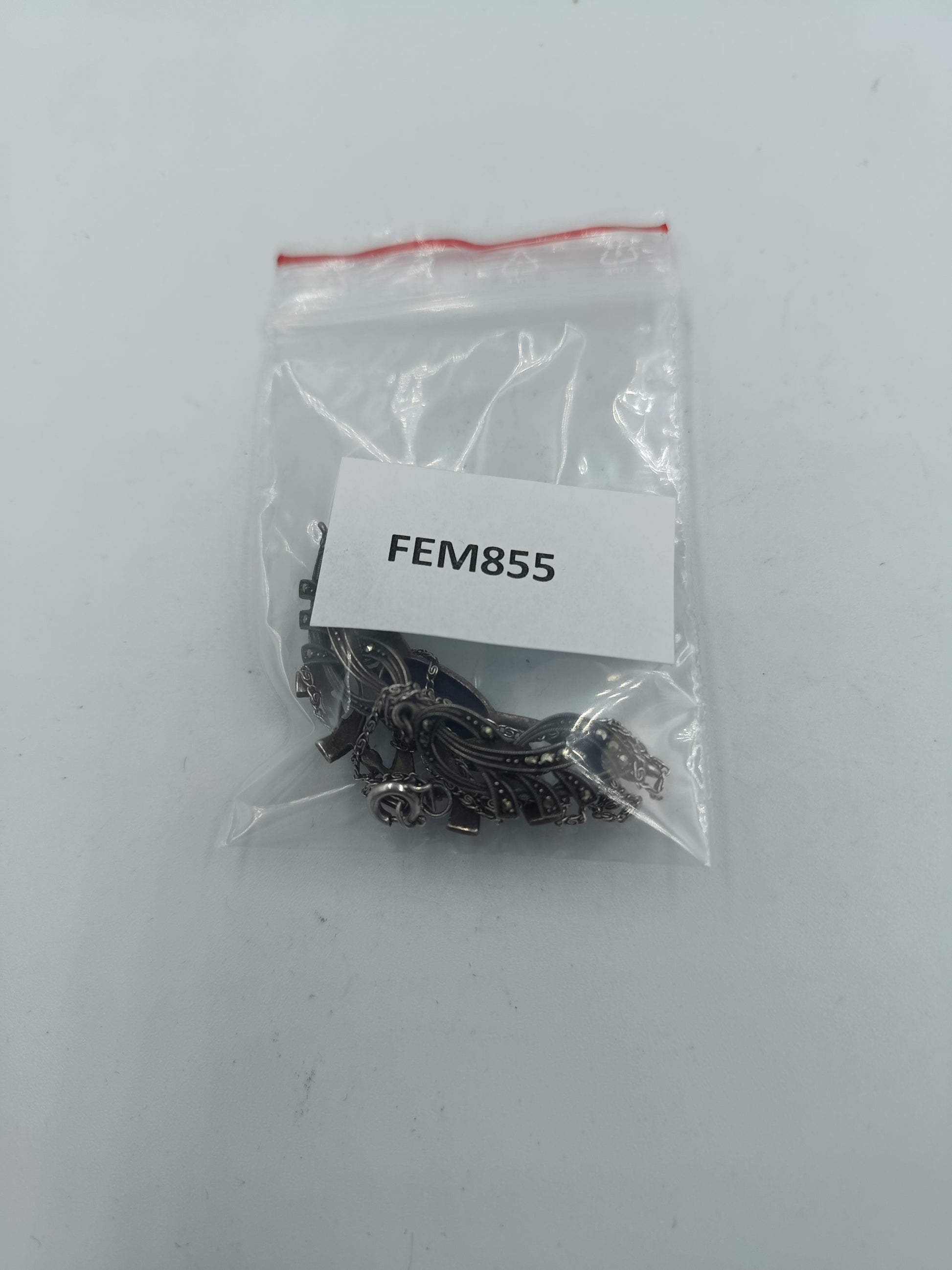 Feine Silberkette (925 Sterling) mit kunstvoll verziertem Mittelteil und einem ovalen schwarzen Stein als Blickfang. Die filigrane Gestaltung mit kleinen Akzentverzierungen verleiht der Kette eine zeitlos elegante und leicht vintageartige Ausstrahlung – perfekt für Abendgarderobe oder festliche Anlässe.