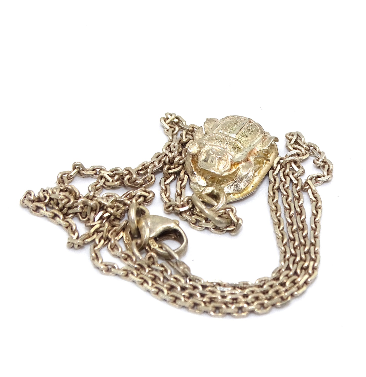 Diese elegante Kette aus hochwertigem 925er Silber besticht durch ihren einzigartigen Skarabäus-Anhänger. Der Anhänger verleiht dem Schmuckstück eine besondere Note und macht es zu einem echten Hingucker.