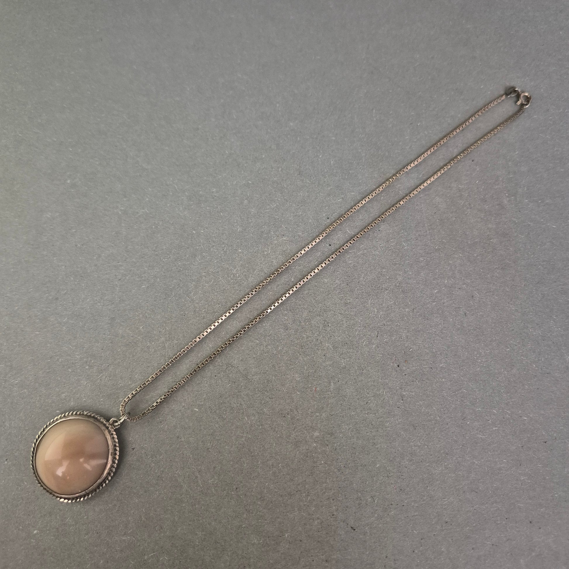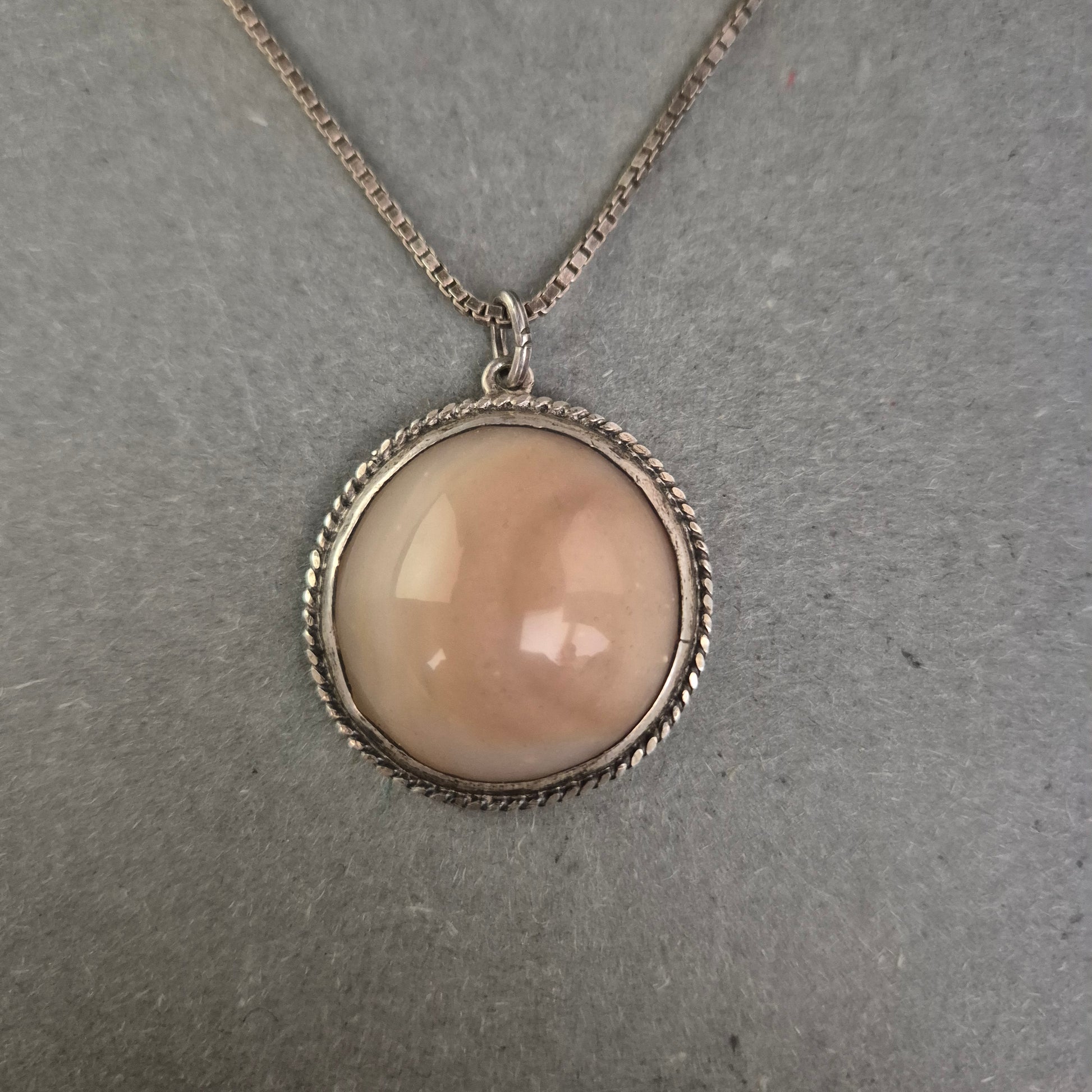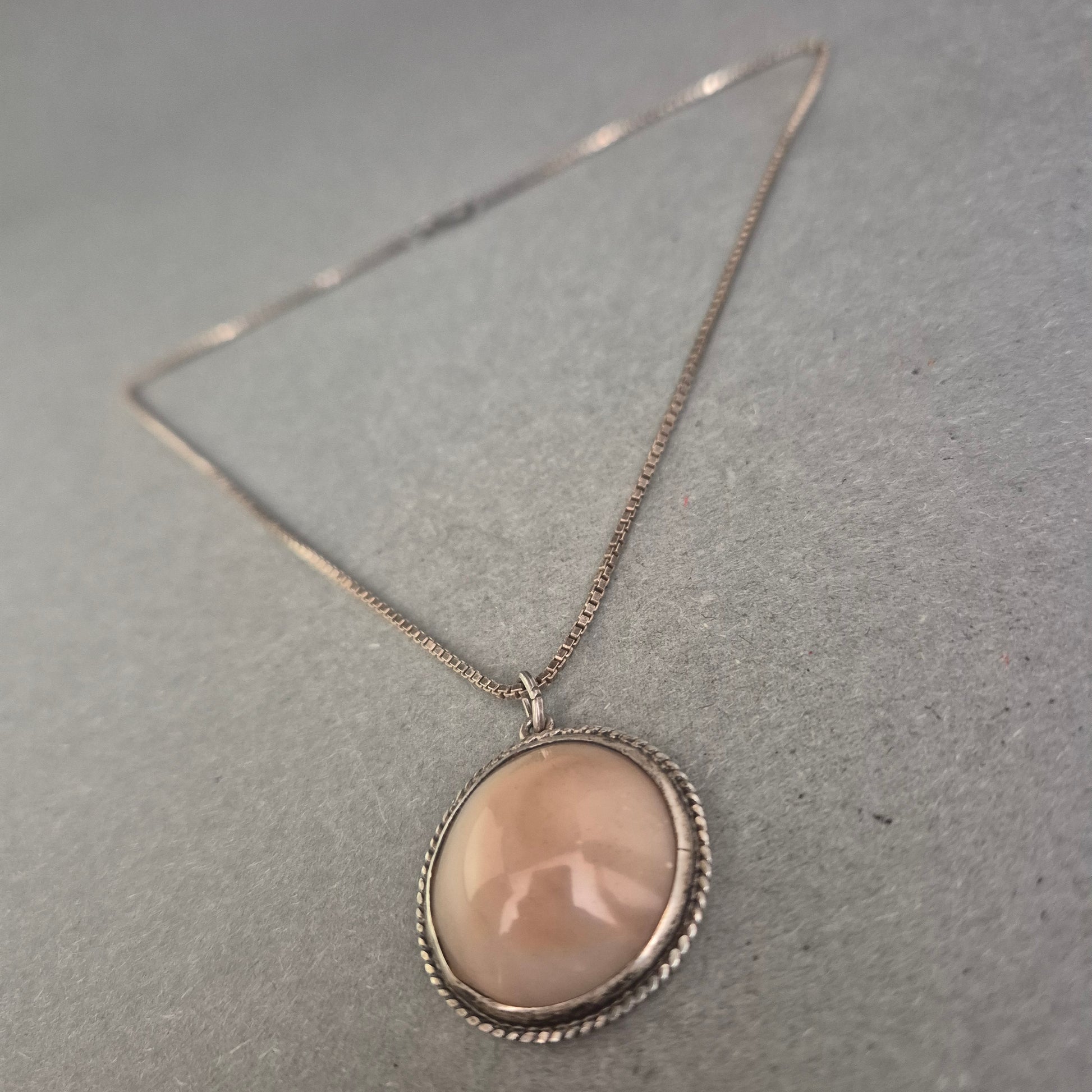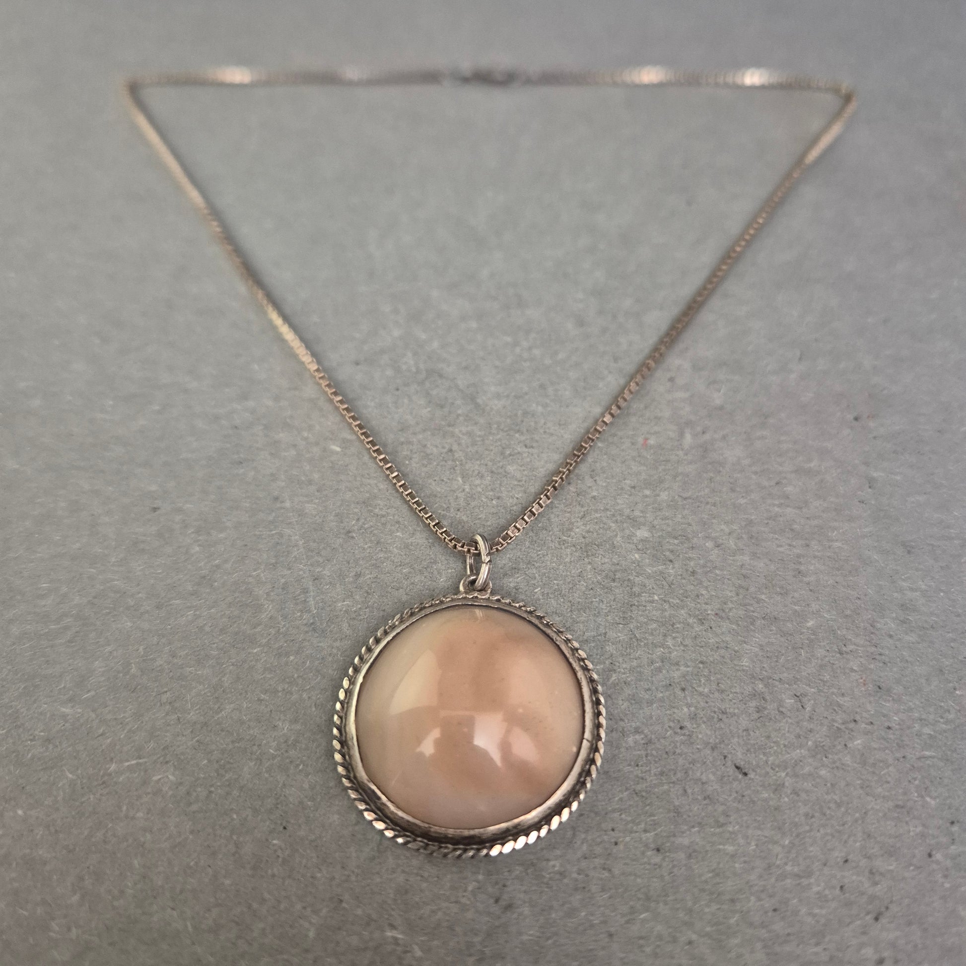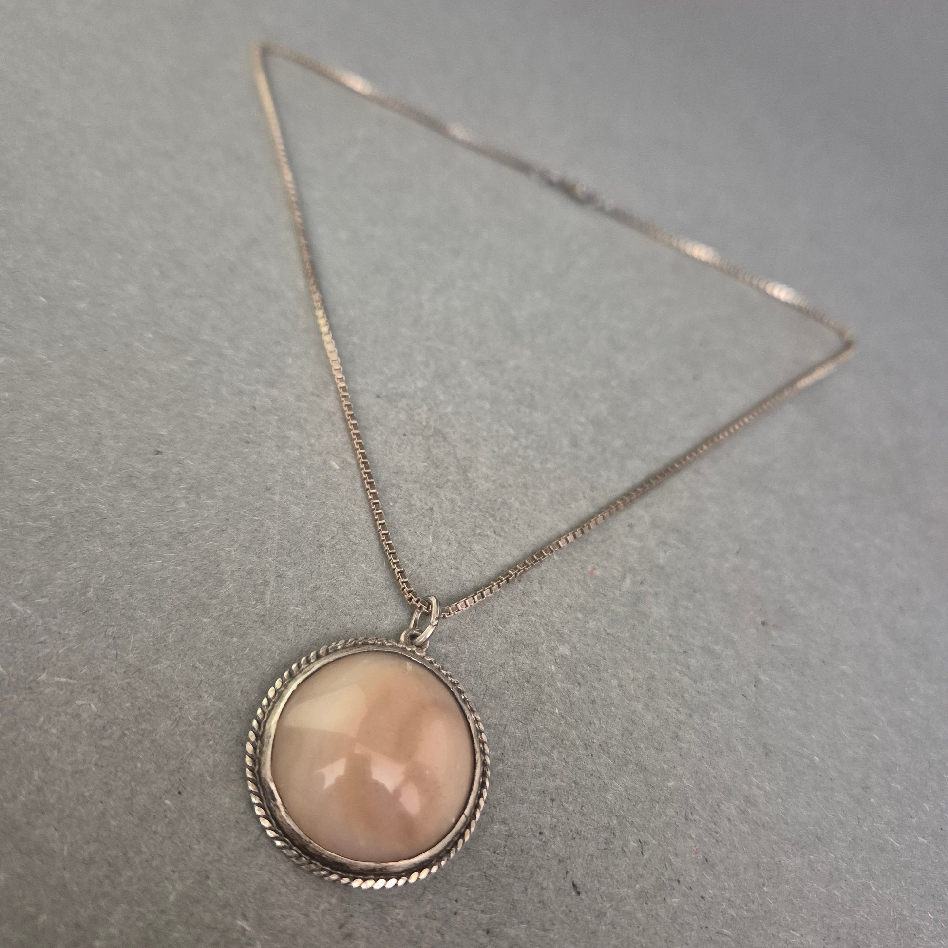 925er Silberkette mit großem runden Rosenquarz-Anhänger – Vintage Look