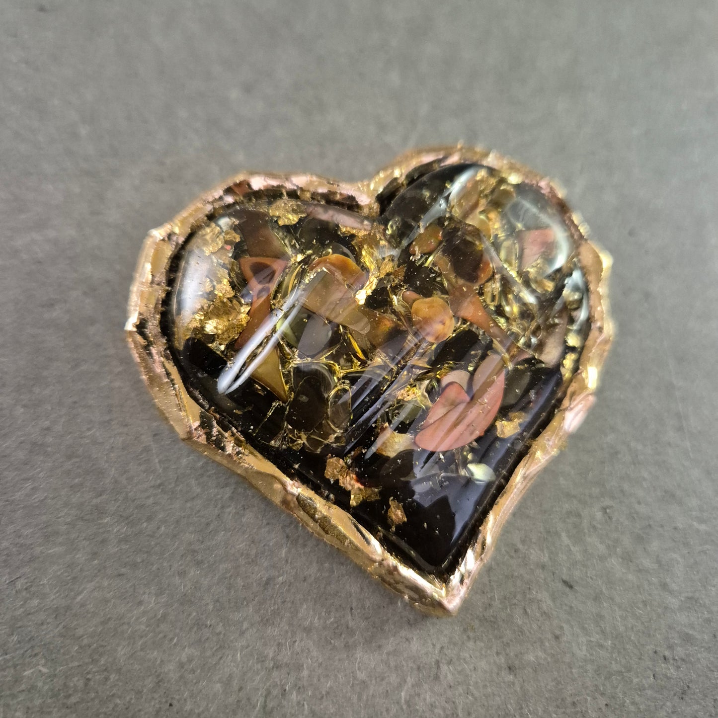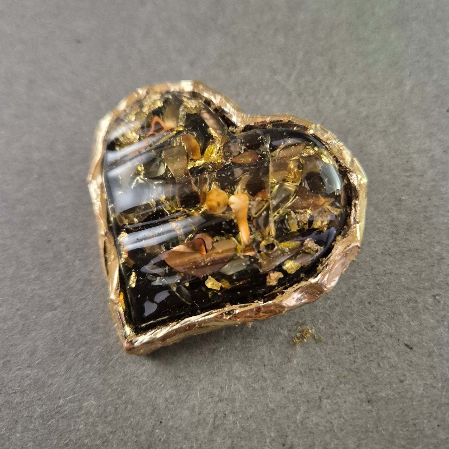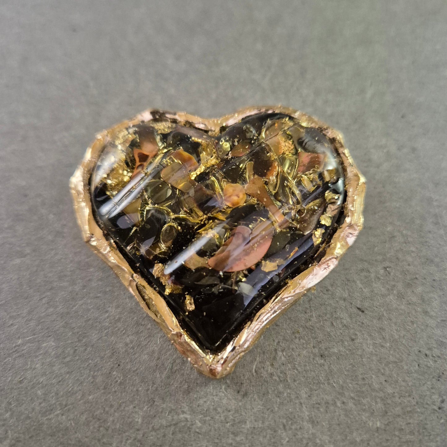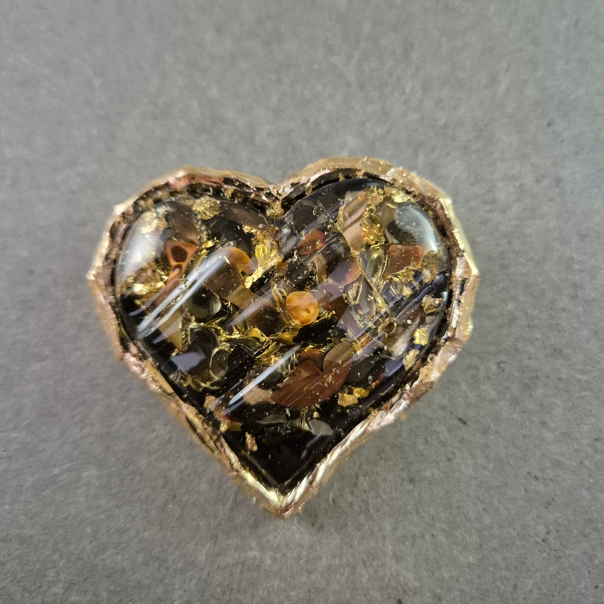 Abstrakte Herz-Brosche – Kunstharz & Goldeinschlüsse für einzigartigen Stil