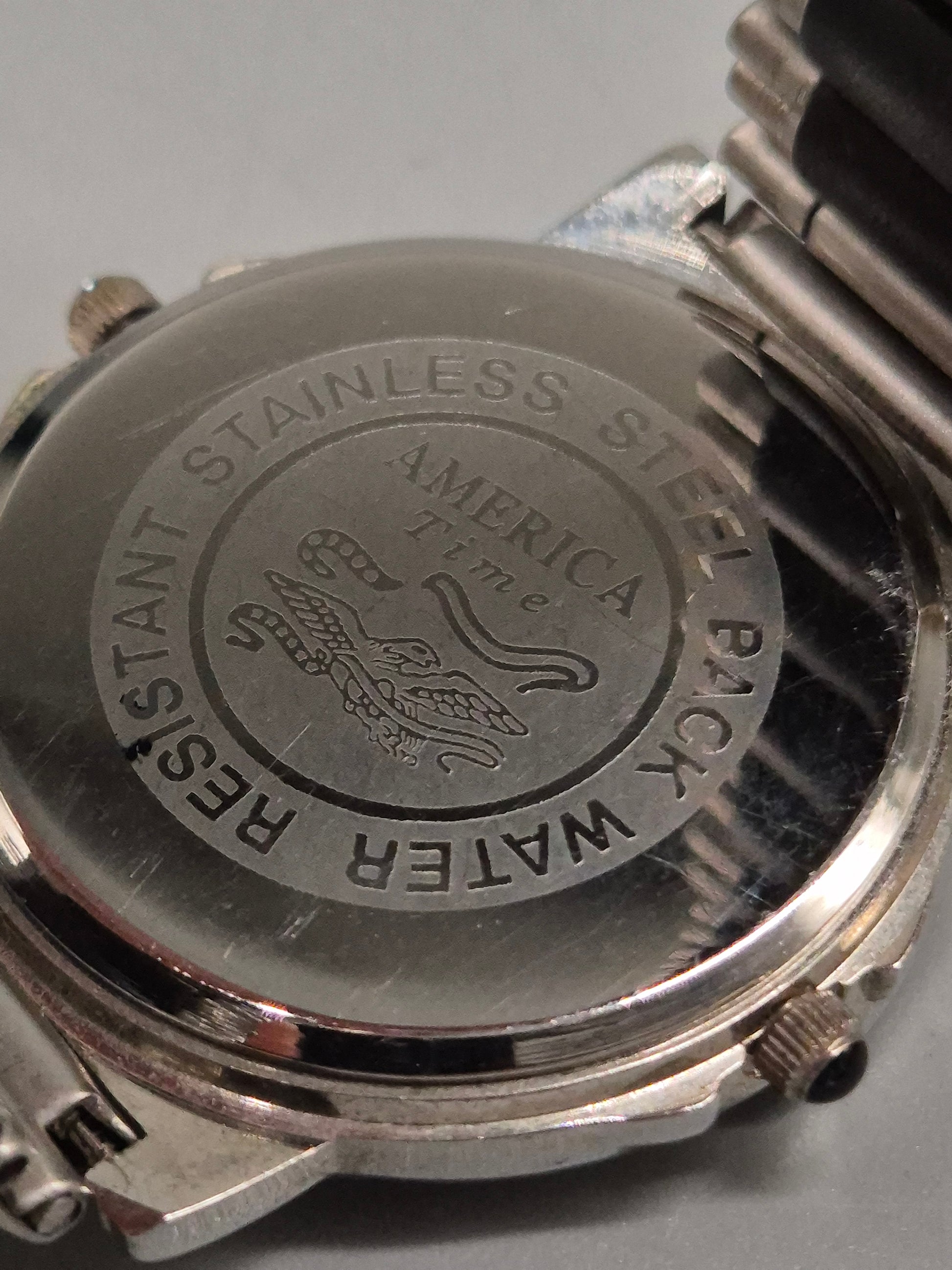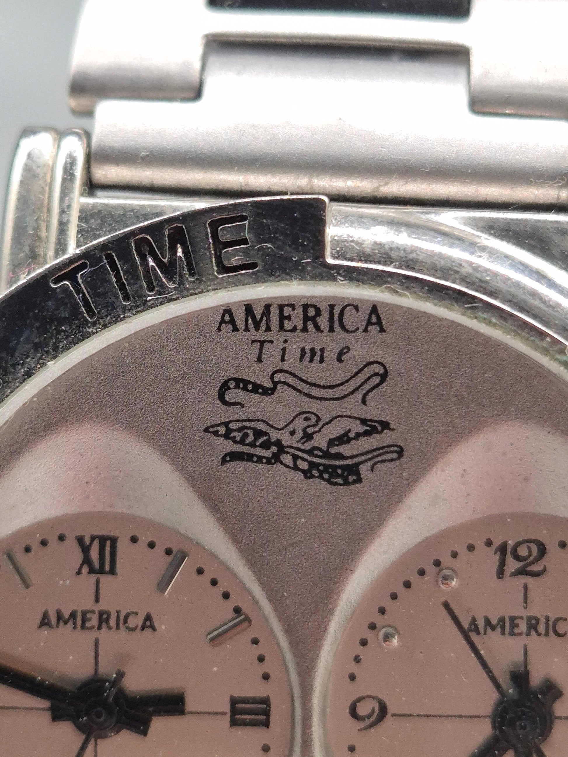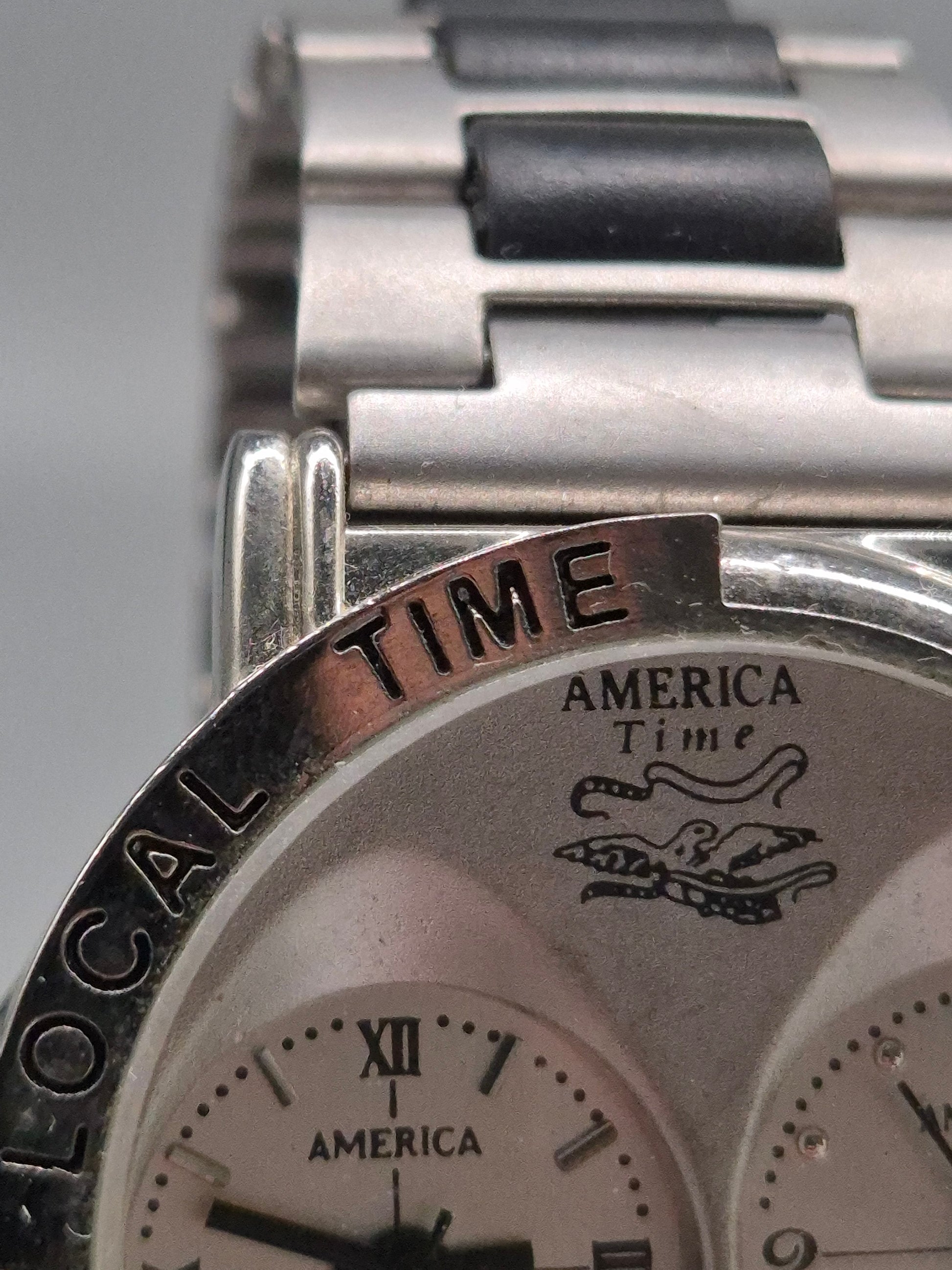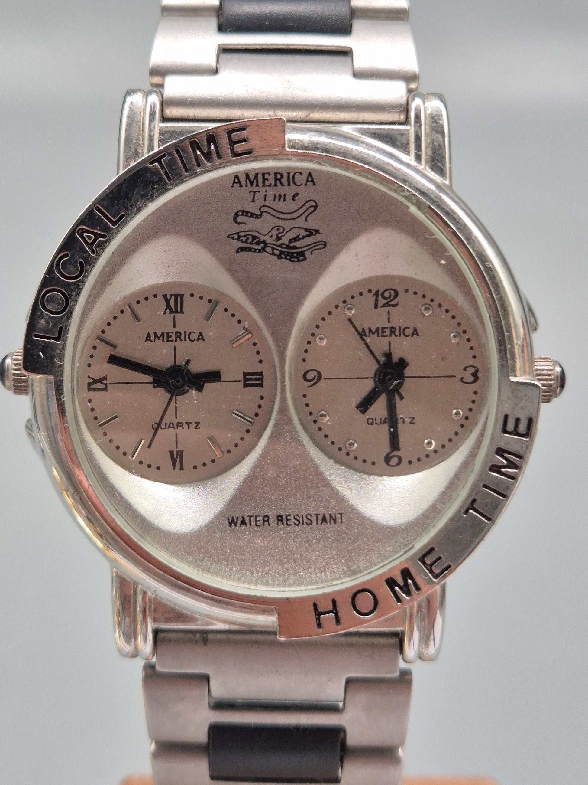 America Time Herren Uhr – Dualzeit mit Edelstahlband